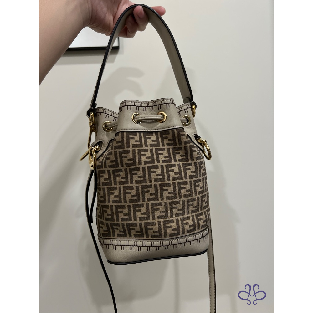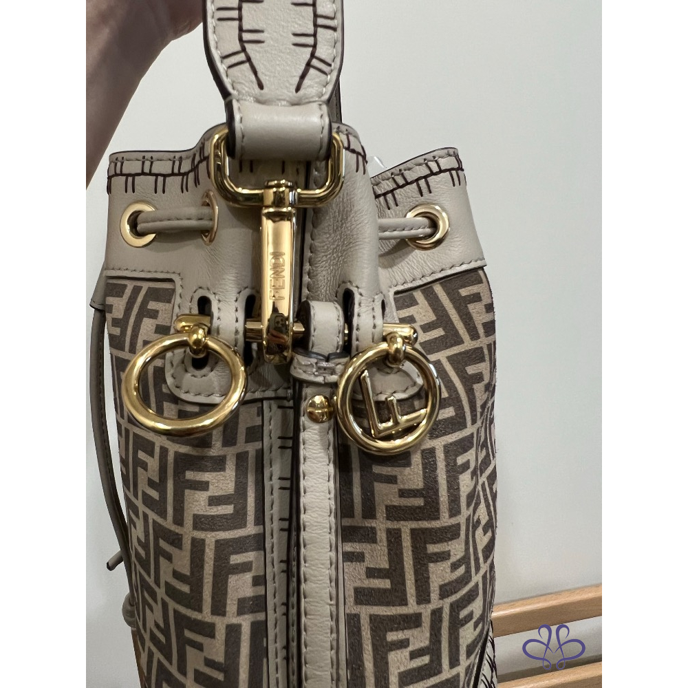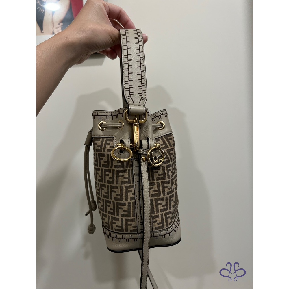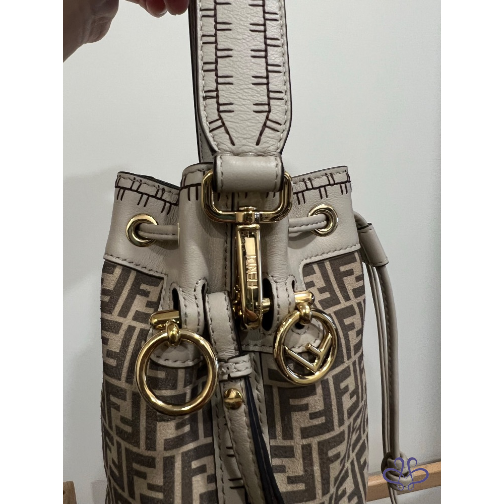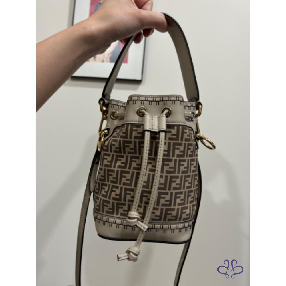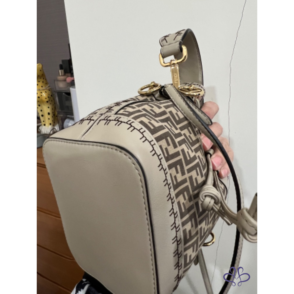 Fendi 麂皮水桶包 外縫米色