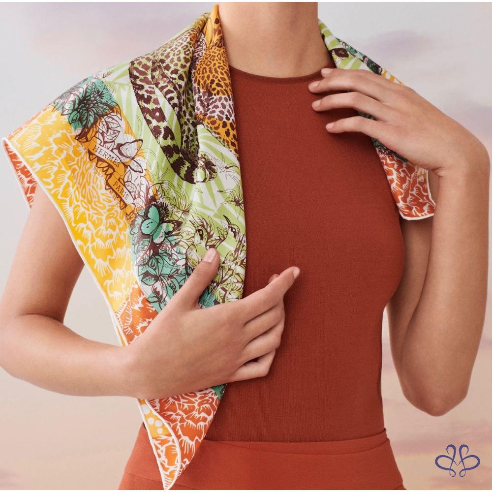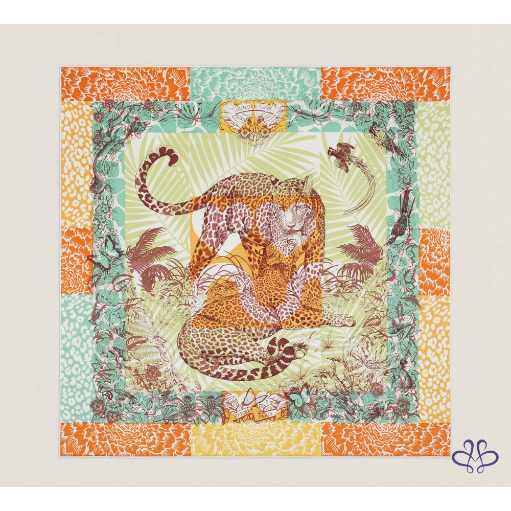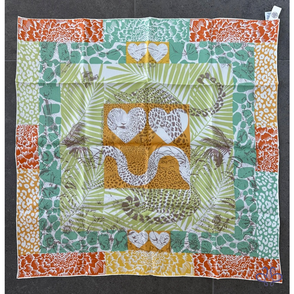 Hermes 愛馬仕 2023 印章版叢林之愛Jungle Love au Tampon 花豹 綠色 / 橙色 / 棕色 70cm方巾 全新✨
