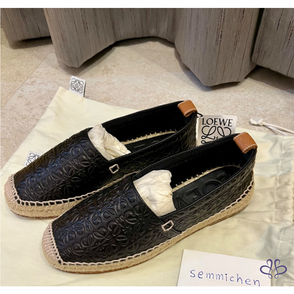 ????全新 LOEWE 經典滿版皮革壓紋平底鞋