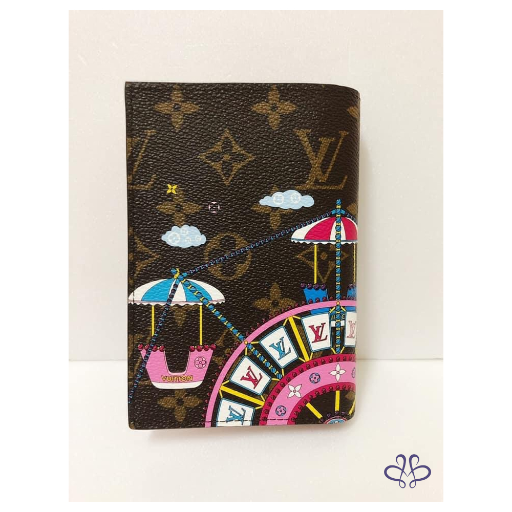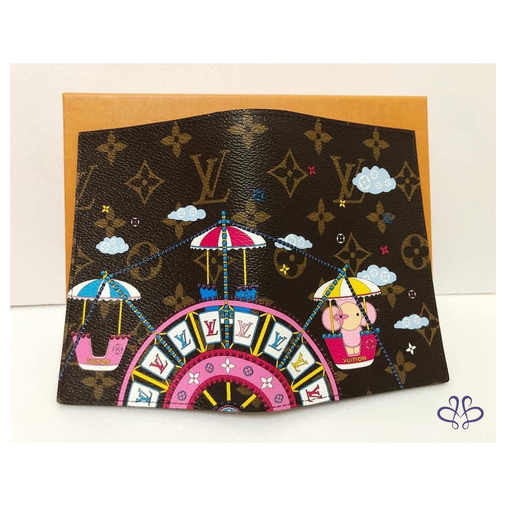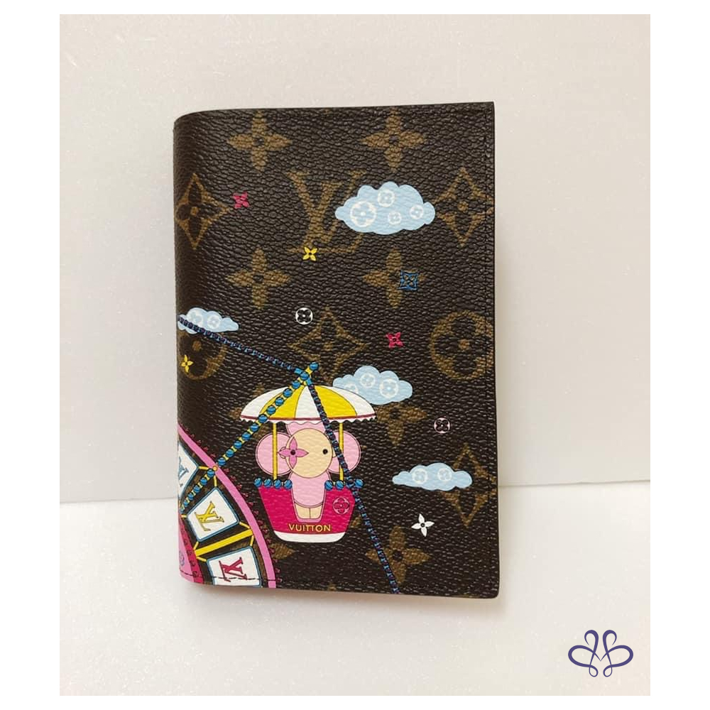 聖誕節限量版護照封套採用Monogram帆布製作,綴以路易威登吉祥物Vivienne玩偶,在遊樂園乘坐摩天輪的可愛圖案。設計巧妙融合了節慶主題與品牌標誌,包括LV Initials標誌和Monogram花卉圖案,令這款色彩繽紛的配飾成為最佳禮品。