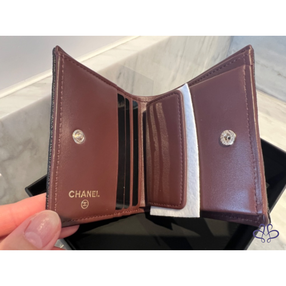 產品信息 A006077 全新CHANEL最難買的款式對折裡面有零錢袋,比較薄 售38800含運 不議價 配件:購證影本(去個資)禮盒、緞帶、防塵袋、山茶花、保養小冊、紙袋 台北市可面交 亂議價大刀不會回、已讀不回者勿來。 高標勿入 售出不退。 使用官網交易安全又便利