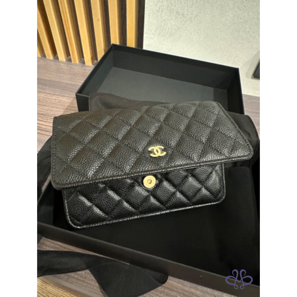 Chanel 經典WOC 黑金荔枝皮
