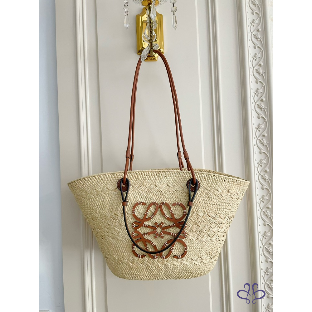 首頁 精品包包 2022 LOWEW小牛皮Anagram棕櫚 草編織籃