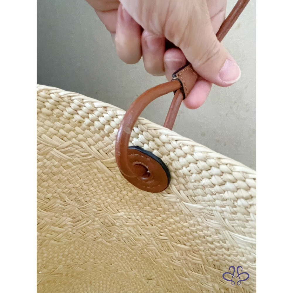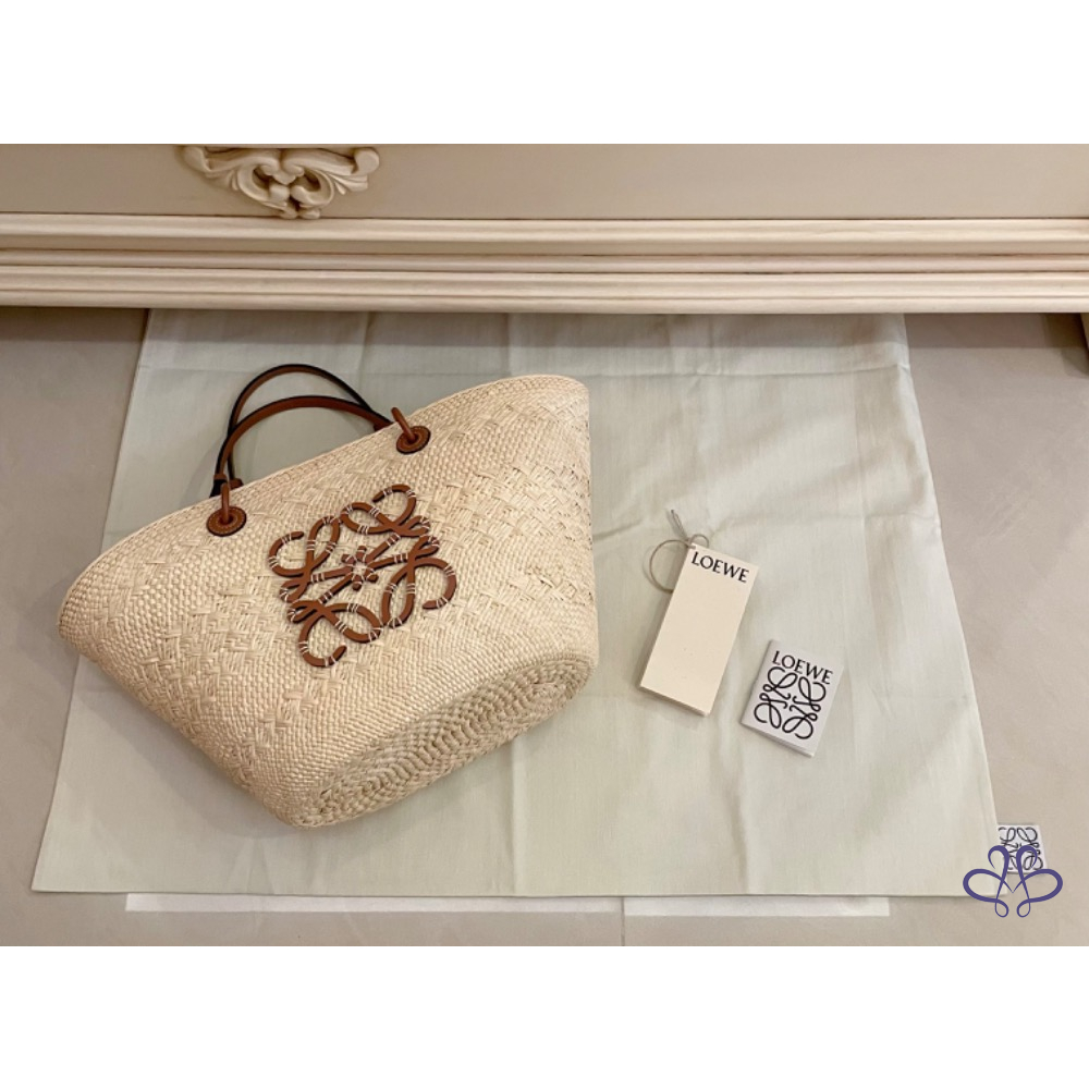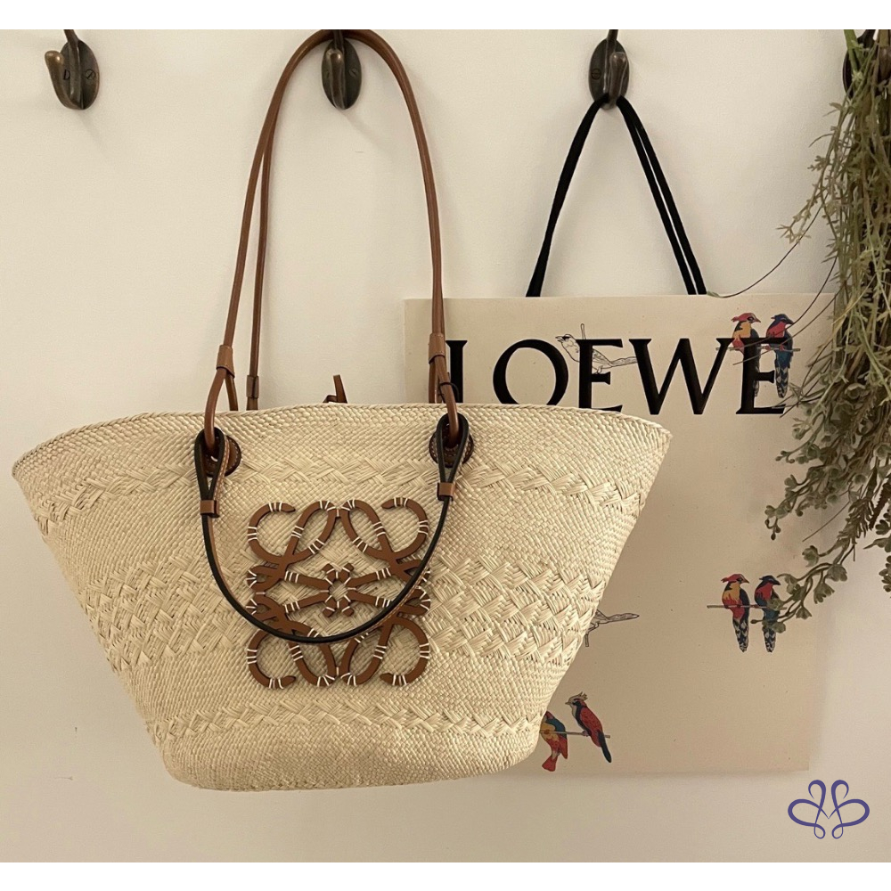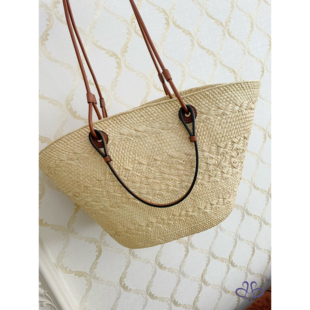 2022 LOWEW小牛皮Anagram棕櫚 草編織籃