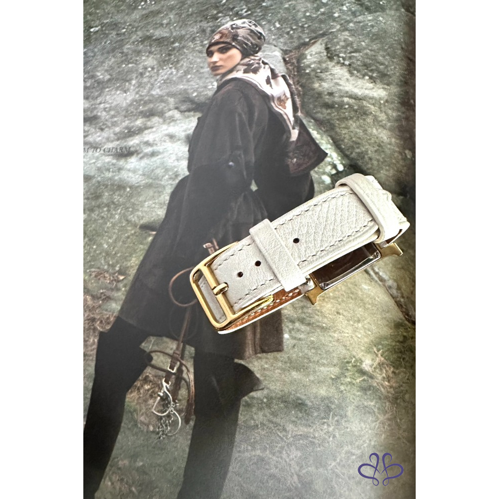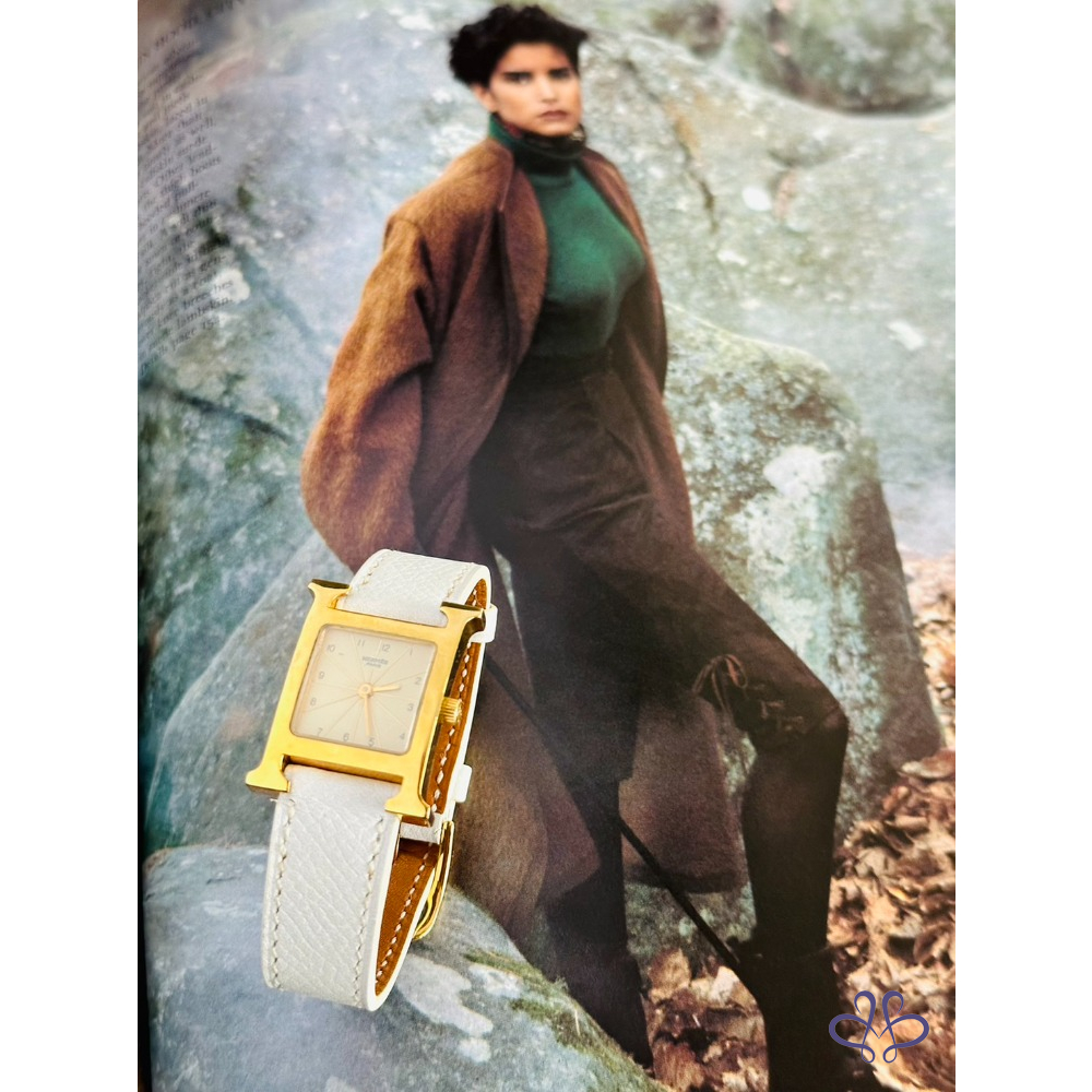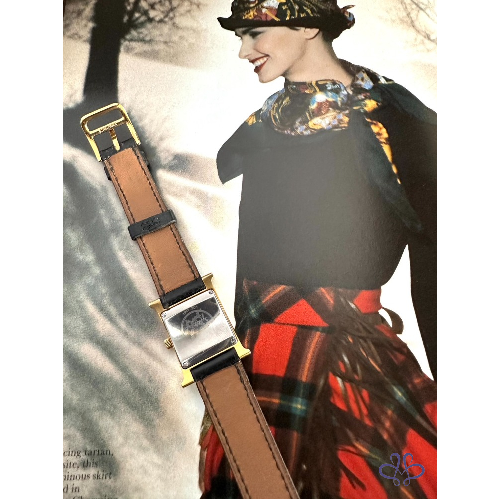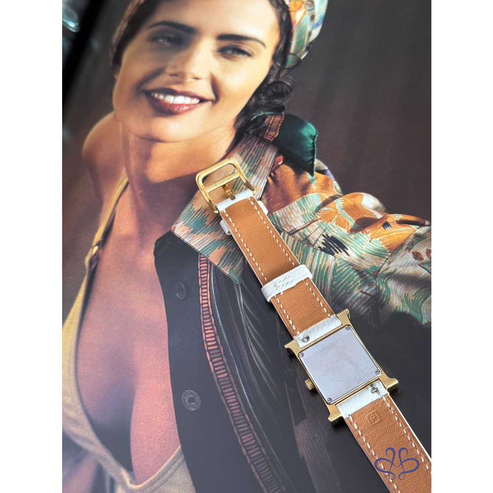 ~HERMES 附原廠盒+二條原廠錶帶 H金框黑色+白色(未使用)錶帶 手錶