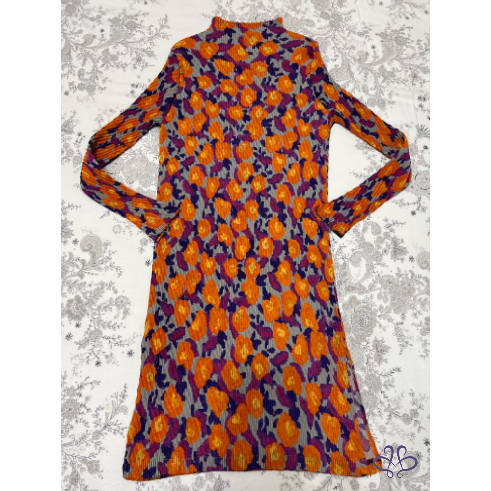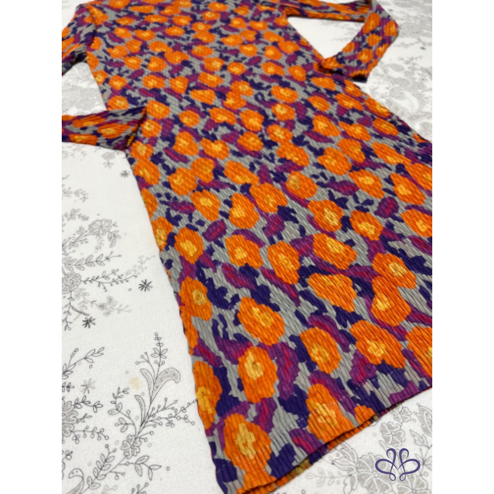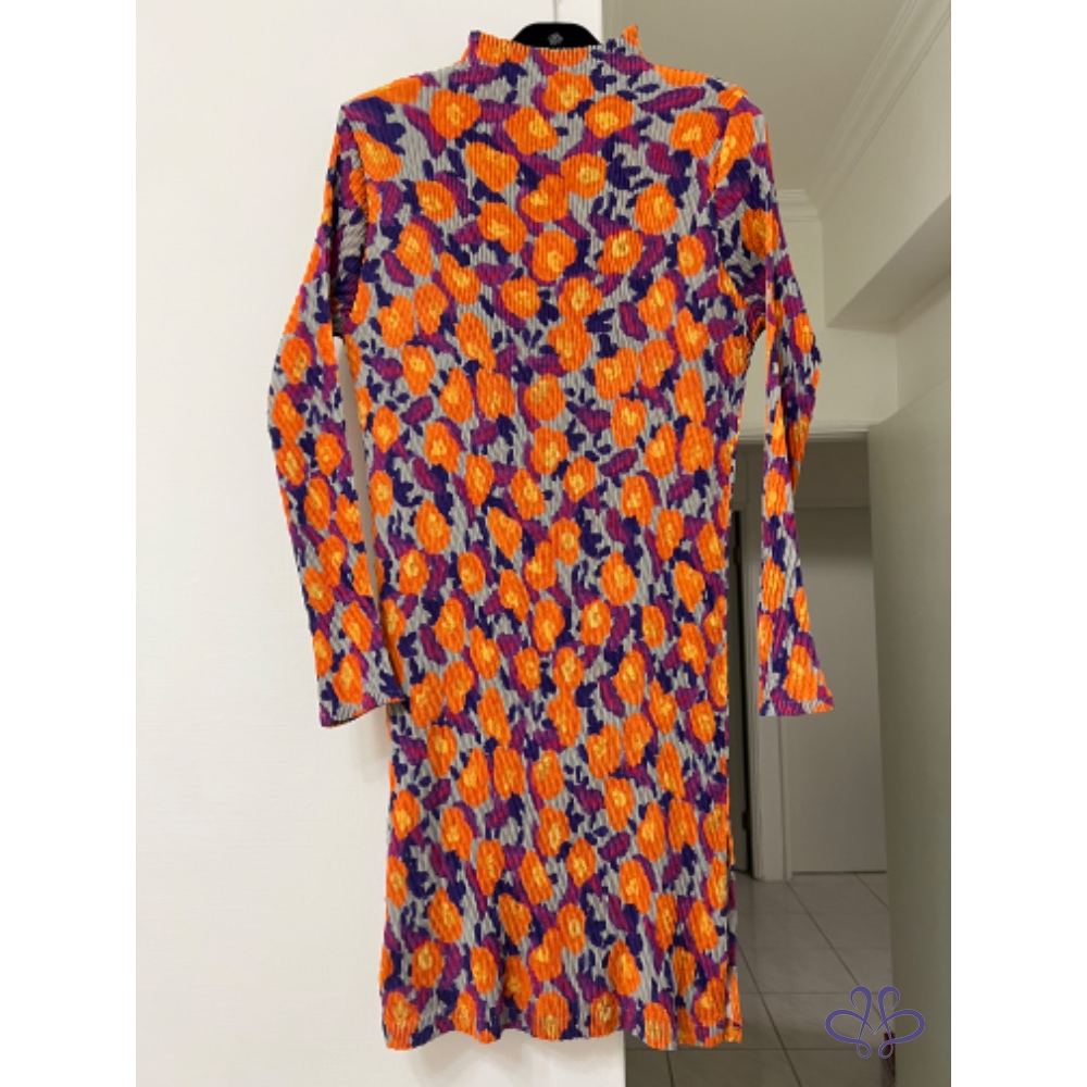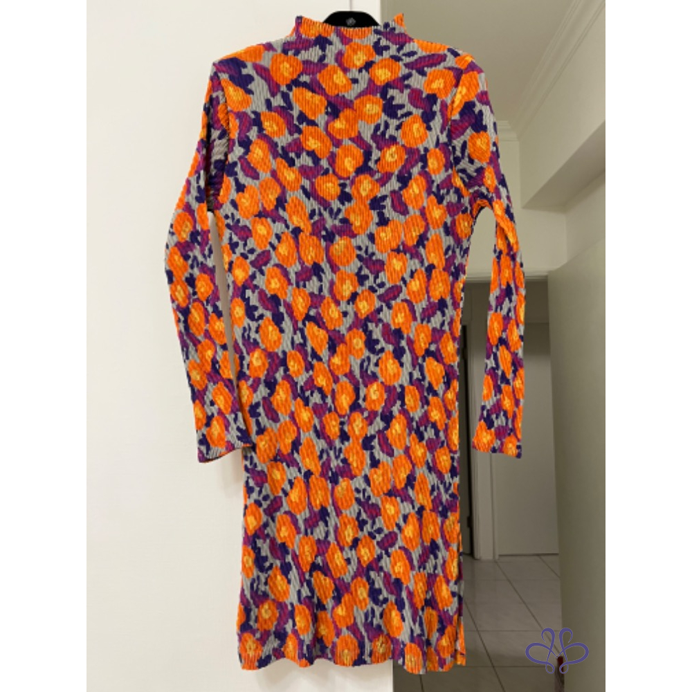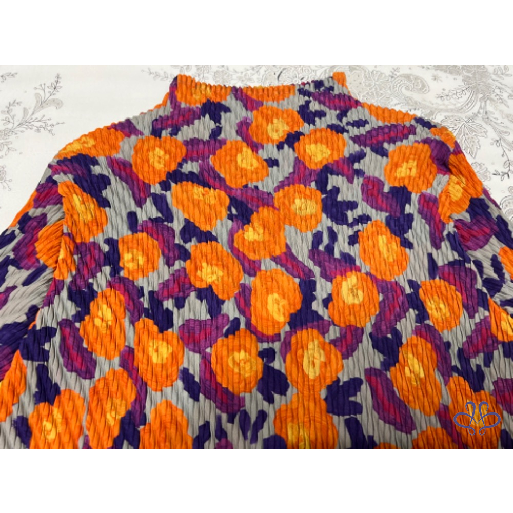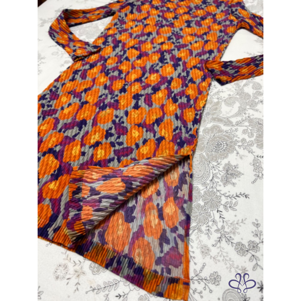 售三宅一生ISSEY MEYAKE 主線橙花魚鱗皺摺長版上衣/短洋裝,材質很輕柔更舒適,當然價格也較貴,上身非常有氣質;