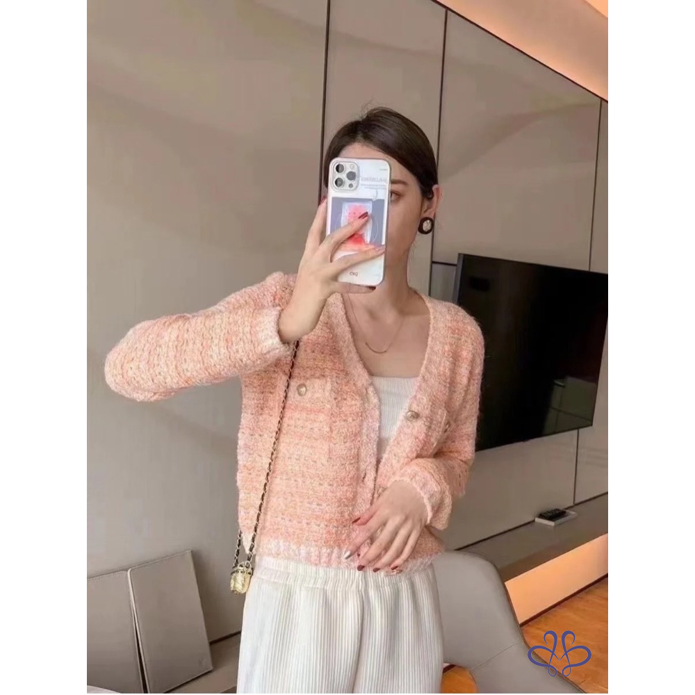 首頁 精品服飾 全新MAJE PARIS粉橘色金屬釦小香風針織外套