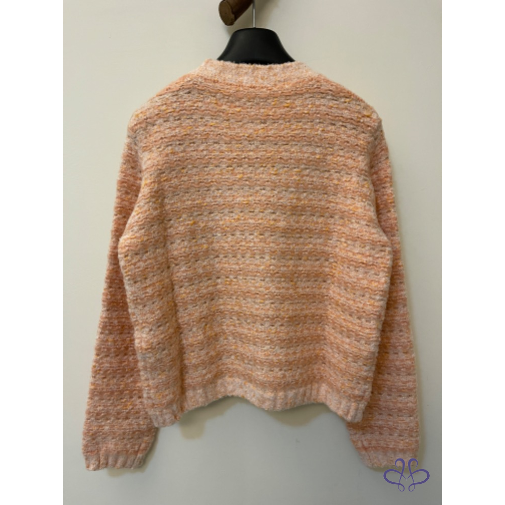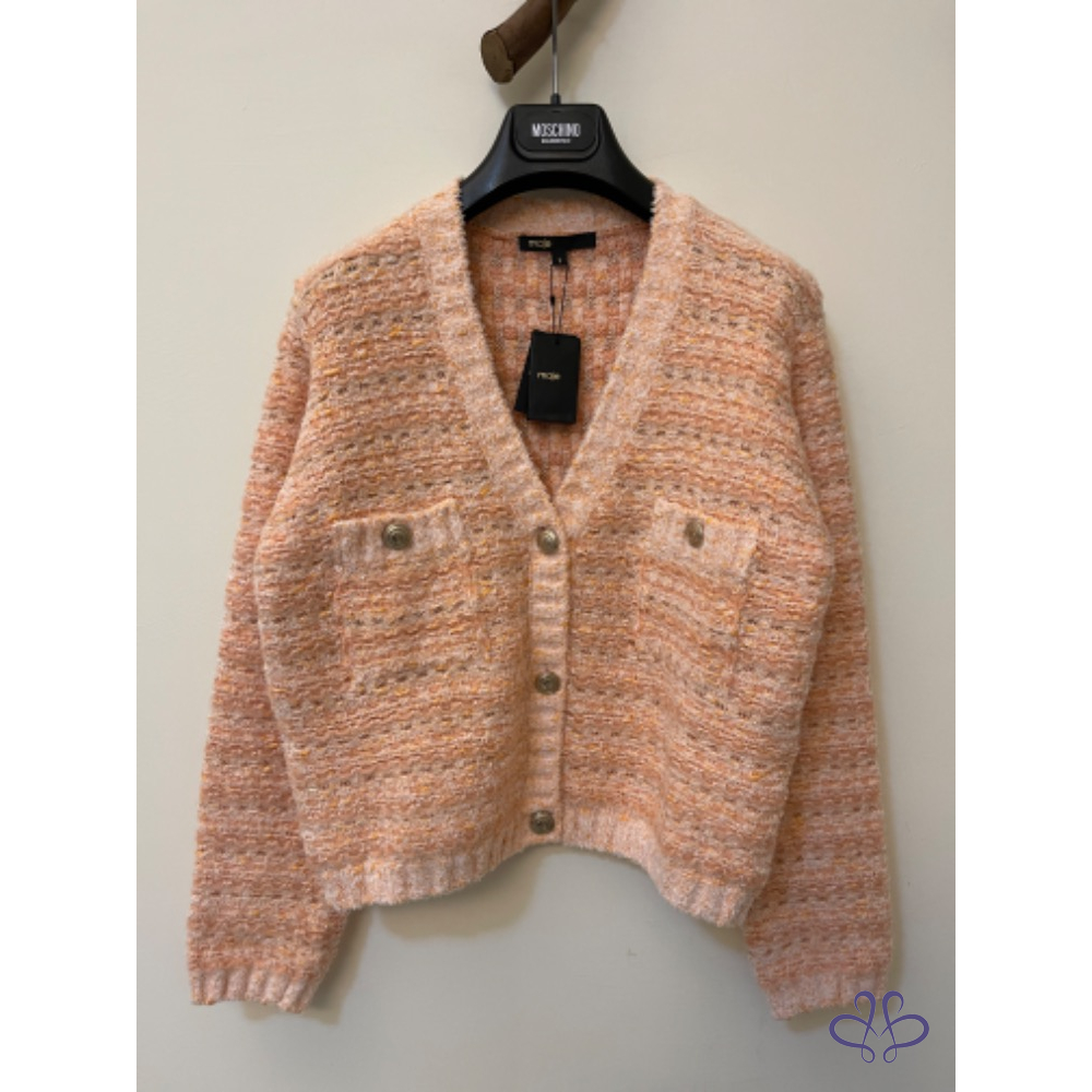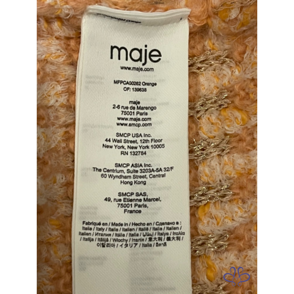 全新MAJE PARIS粉橘色金屬釦小香風針織外套