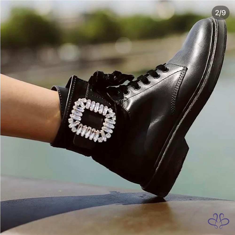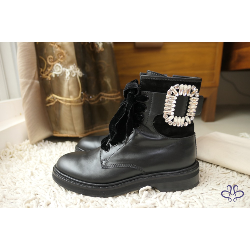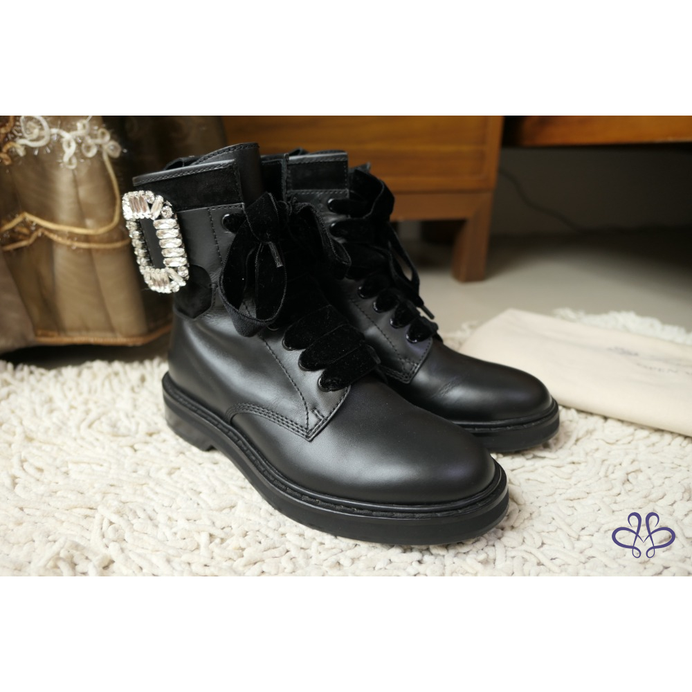 Roger Vivier RV viv rangers 黑色水鑽軍靴
