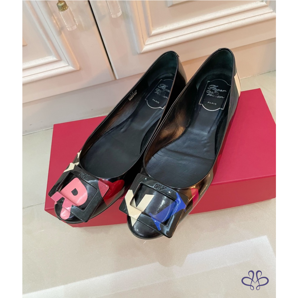 首頁 精品女鞋 Roger Vivier黑色 彩色字母塗鴉款平底鞋