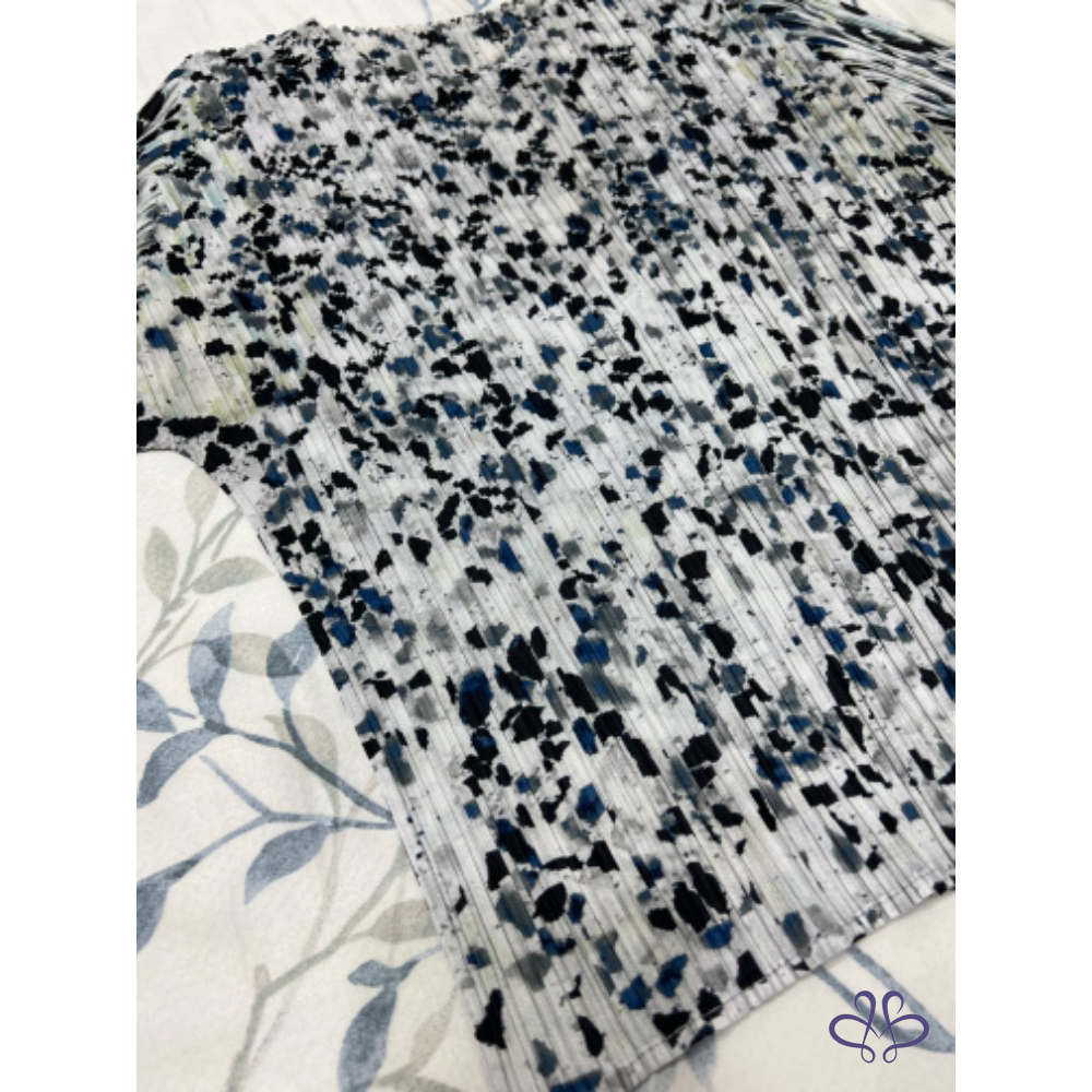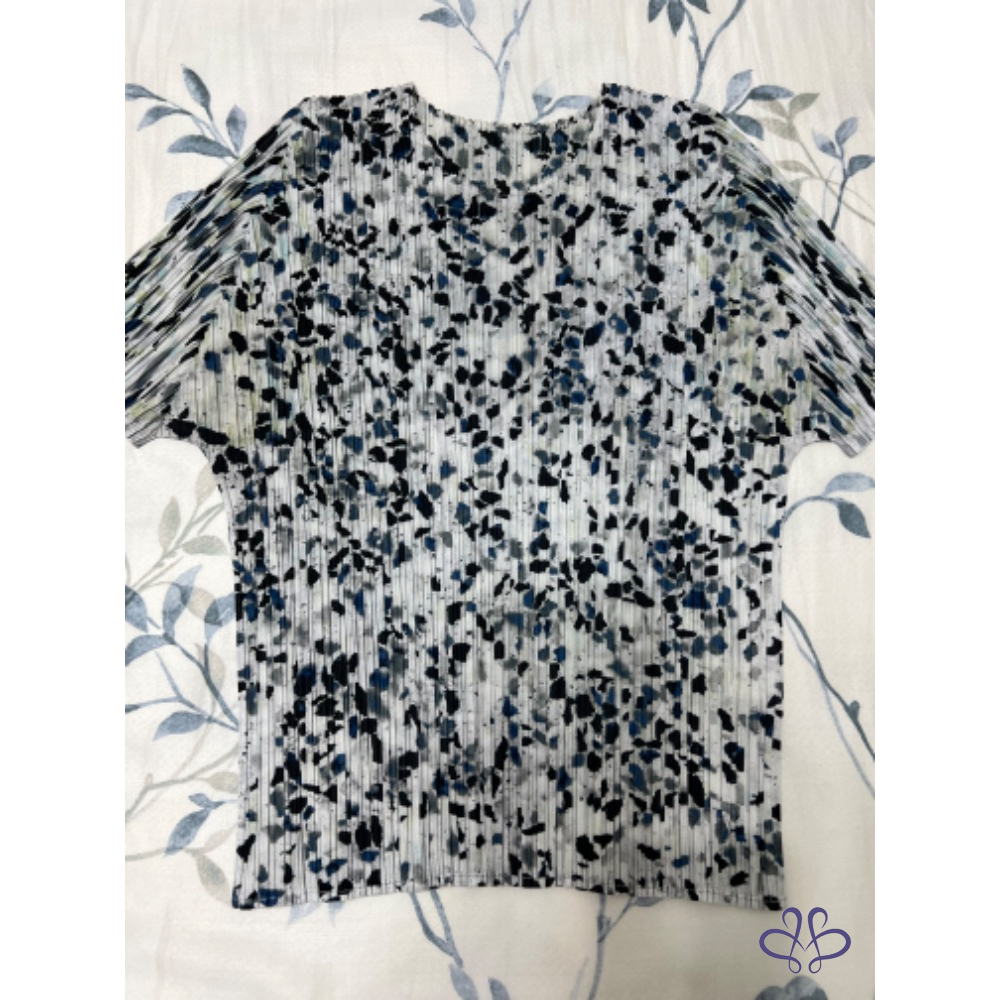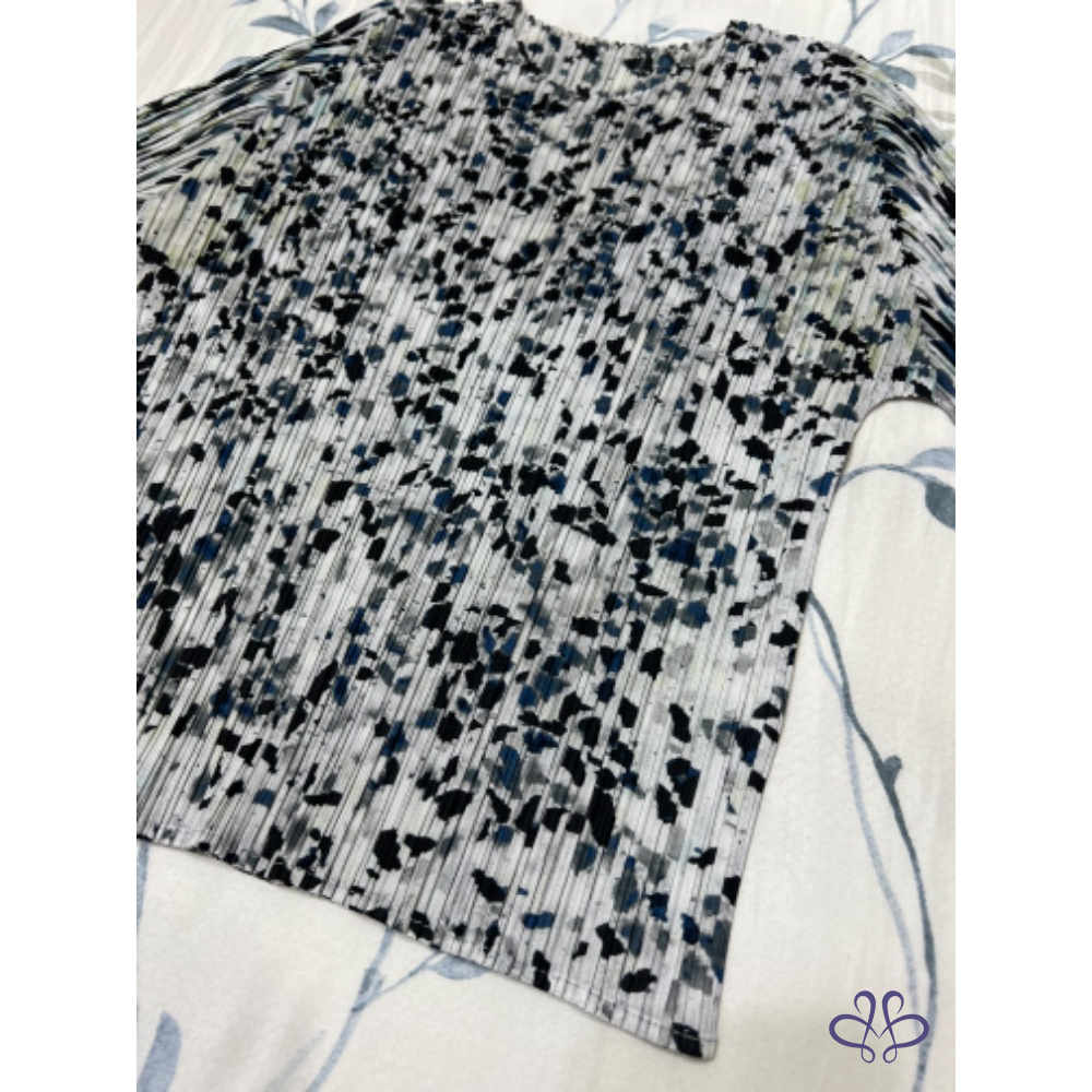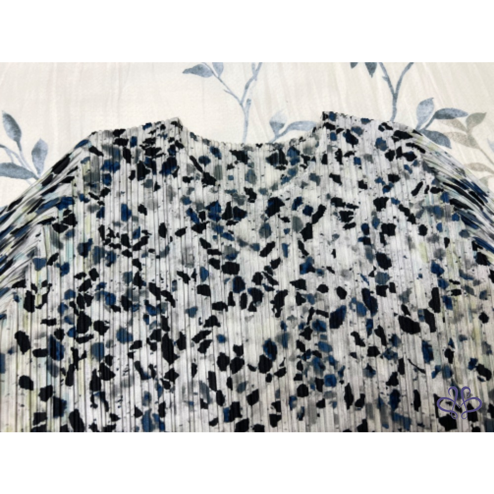 售三宅一生Pleats Please大理石花紋藍色褶皺五分袖上衣,