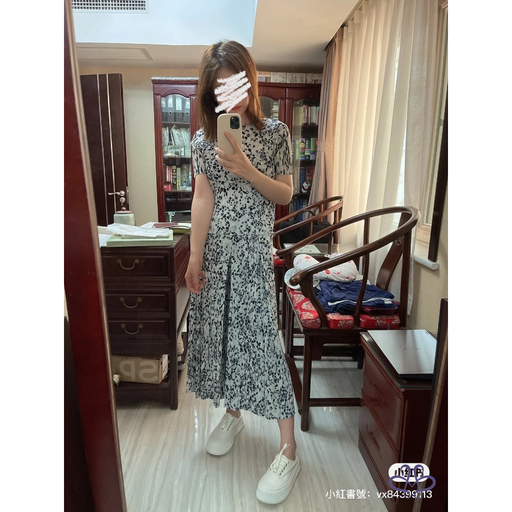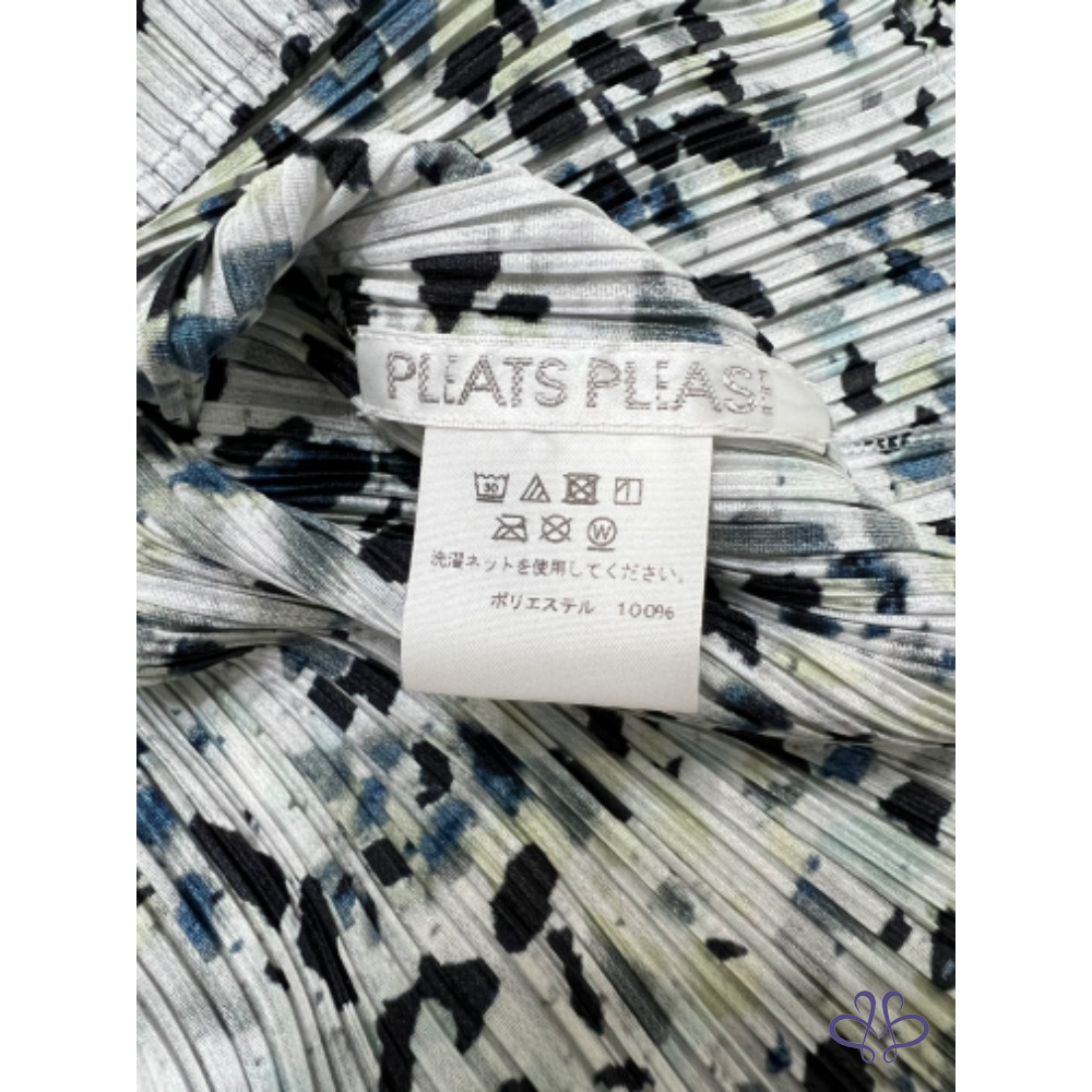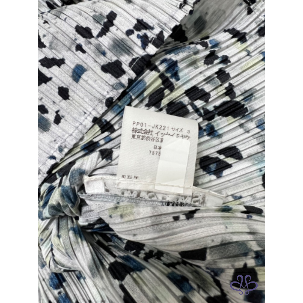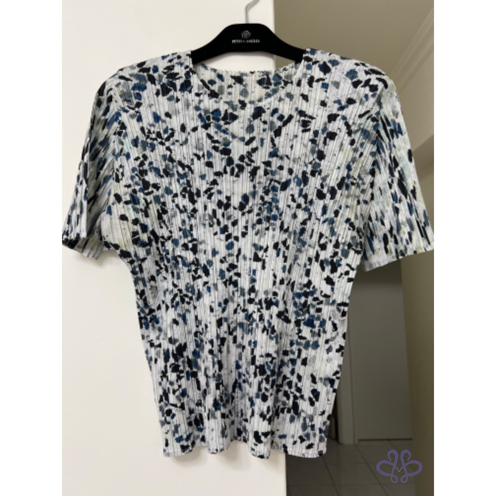 售三宅一生Pleats Please大理石花紋藍色褶皺五分袖上衣,