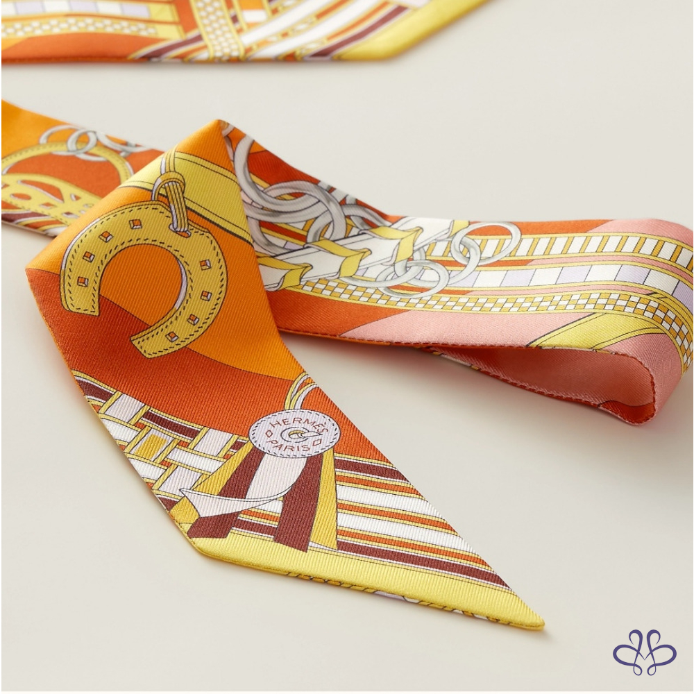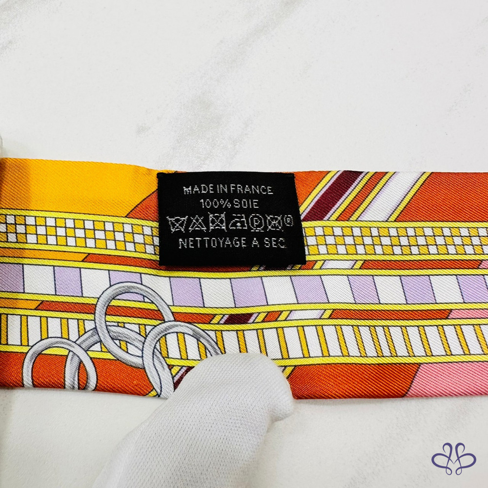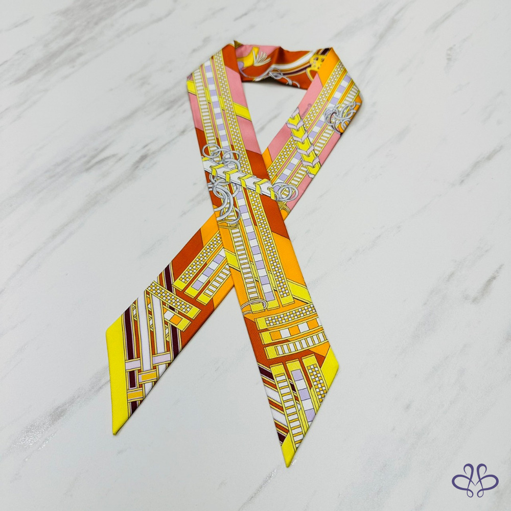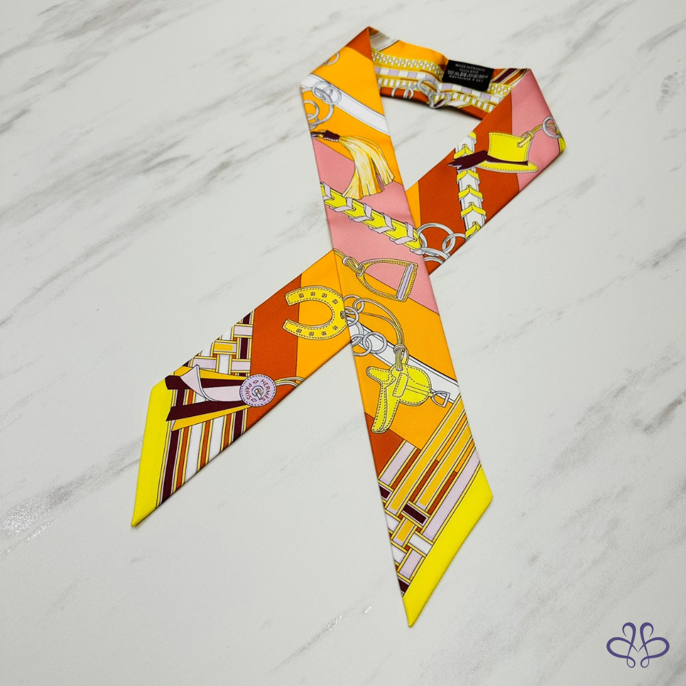 售 Hermes Brides et Gris-Gris Twilly x orange/jaune/rose poudré 愛馬仕韁轡與吉祥物 橘/黃/玫瑰粉 綁帶長絲巾