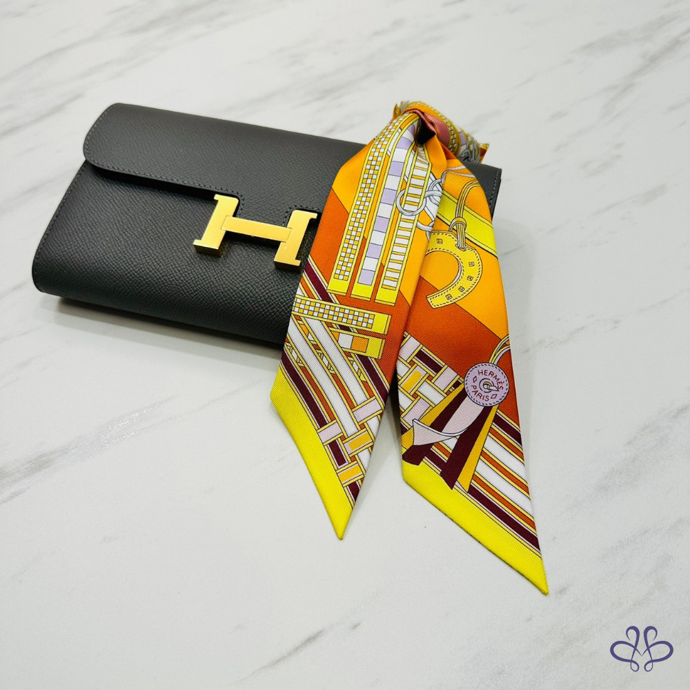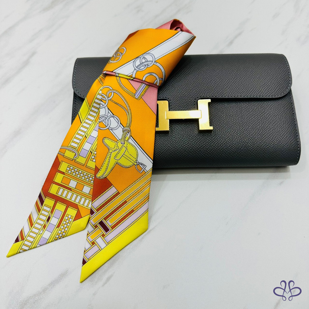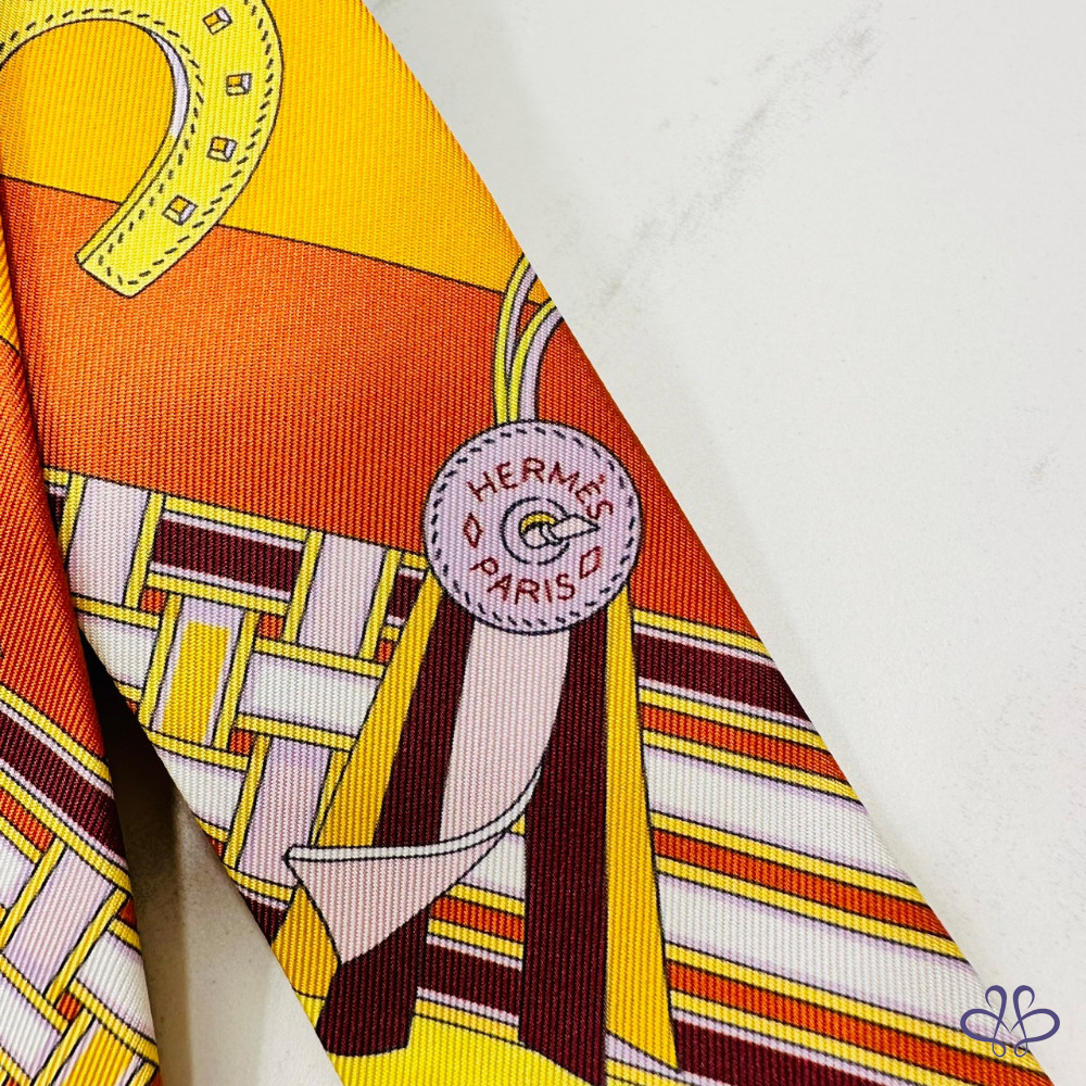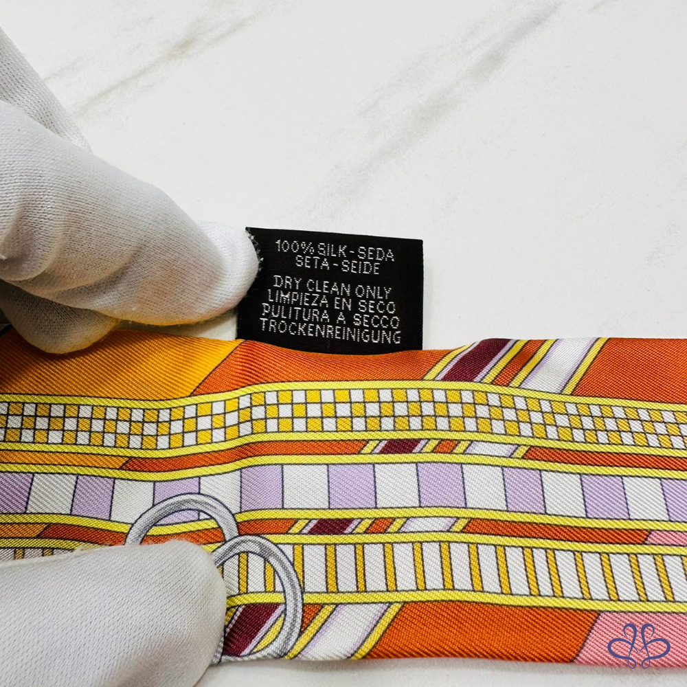 售 Hermes Brides et Gris-Gris Twilly x orange/jaune/rose poudré 愛馬仕韁轡與吉祥物 橘/黃/玫瑰粉 綁帶長絲巾