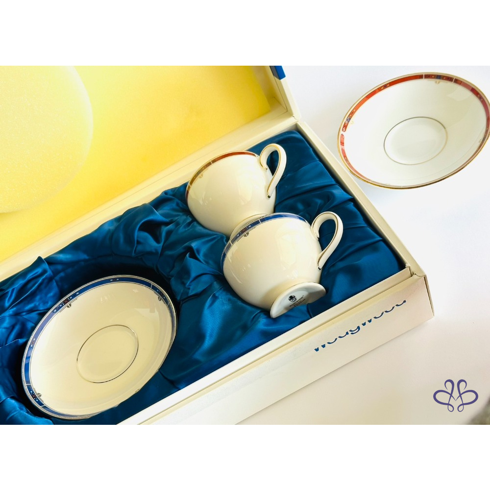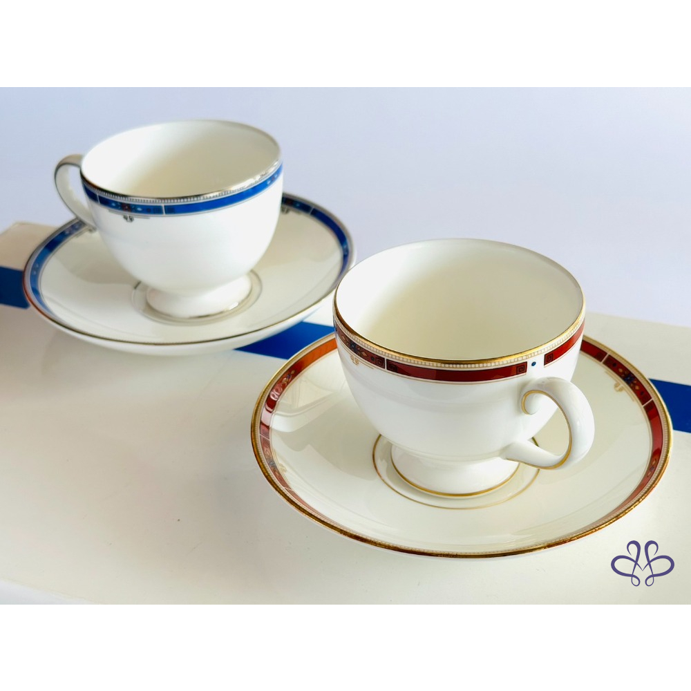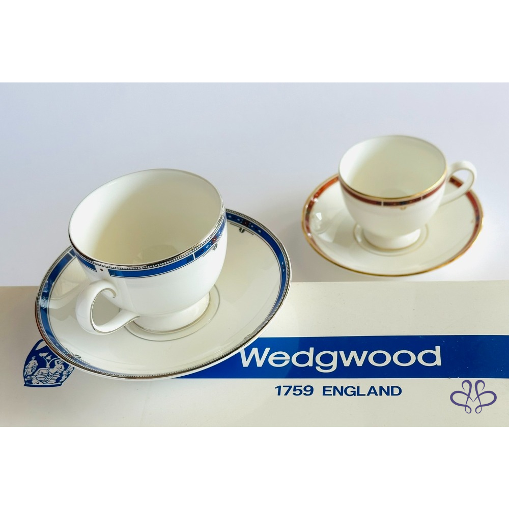 ~WEDGWOOD 紅藍雙色 咖啡/花茶二杯二盤