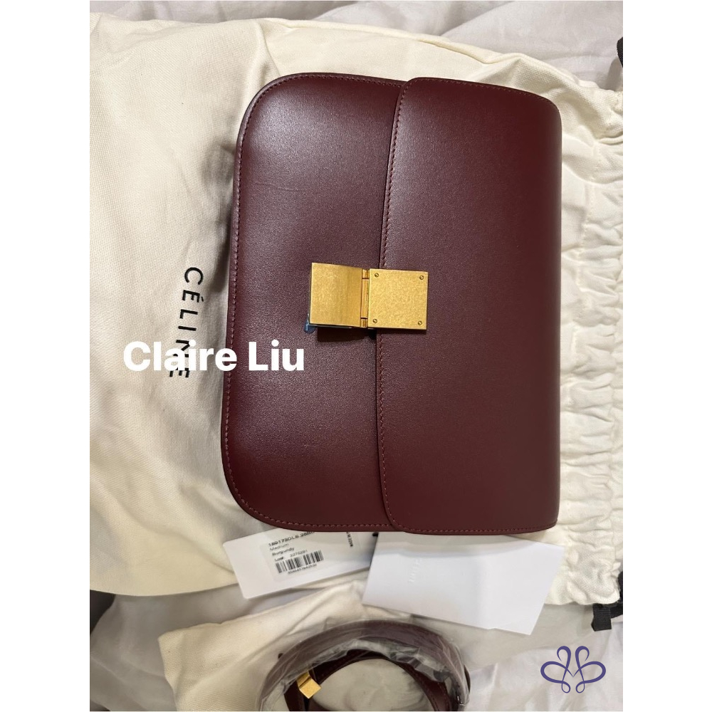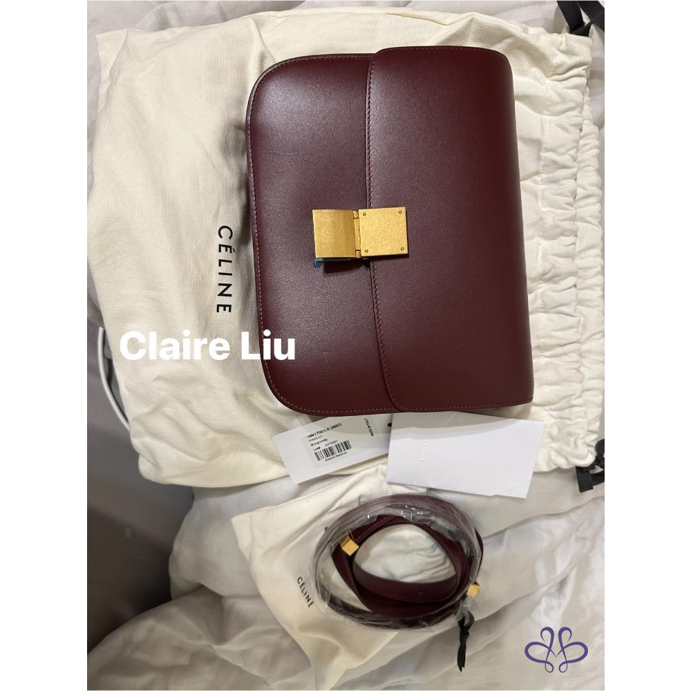 產品信息 A031301 他團同步 Celine Medium Classic Box 全新現貨 不是teen 甜售:65000 不議價 已比台灣專櫃便宜,今年櫃上售價應該是14000有錯的話請指正 顏色:酒紅色 美國購入,購證遺失,已反應在價格上,只有吊牌跟防塵袋 保證正品 支持驗貨 台北天母地區可面交 離櫃商品,高標勿入,售出不退 謝謝管理員