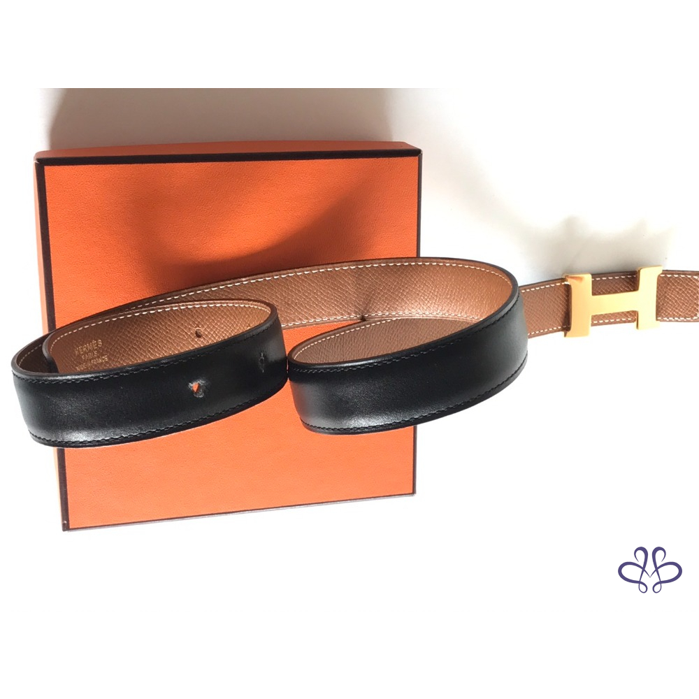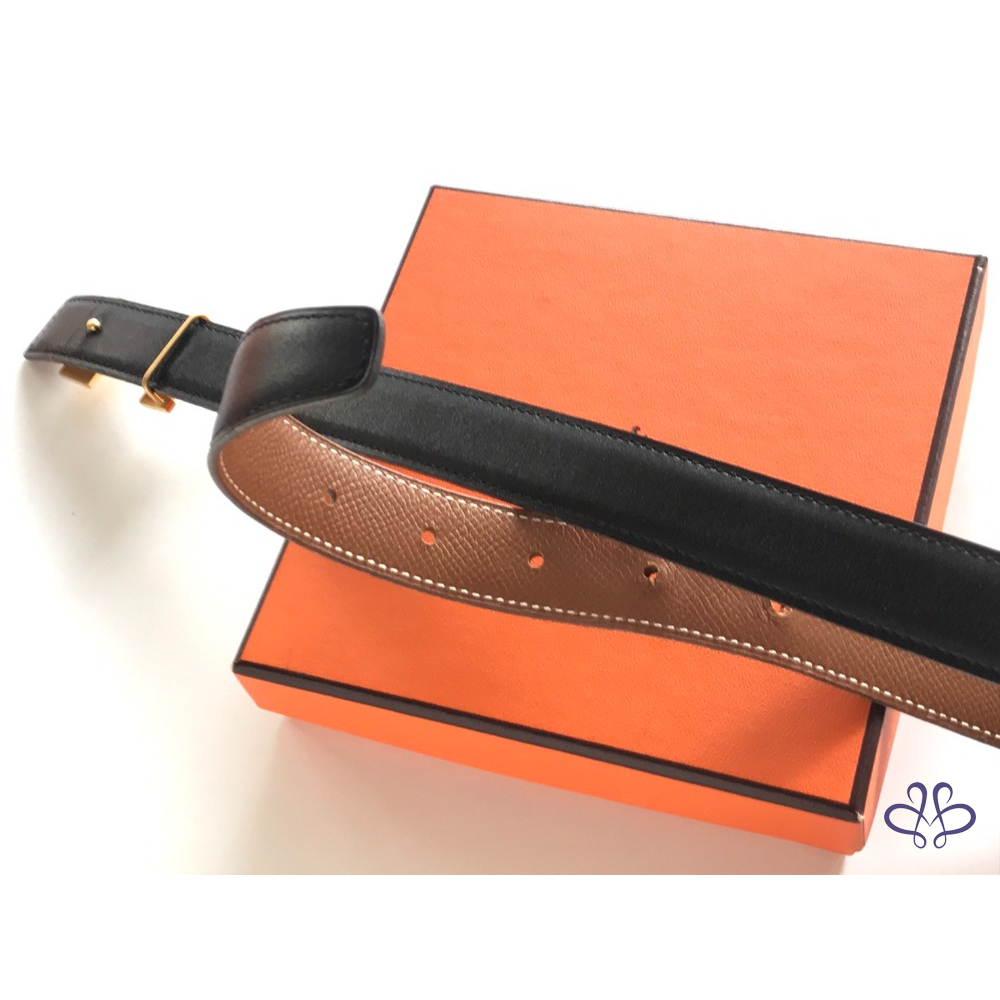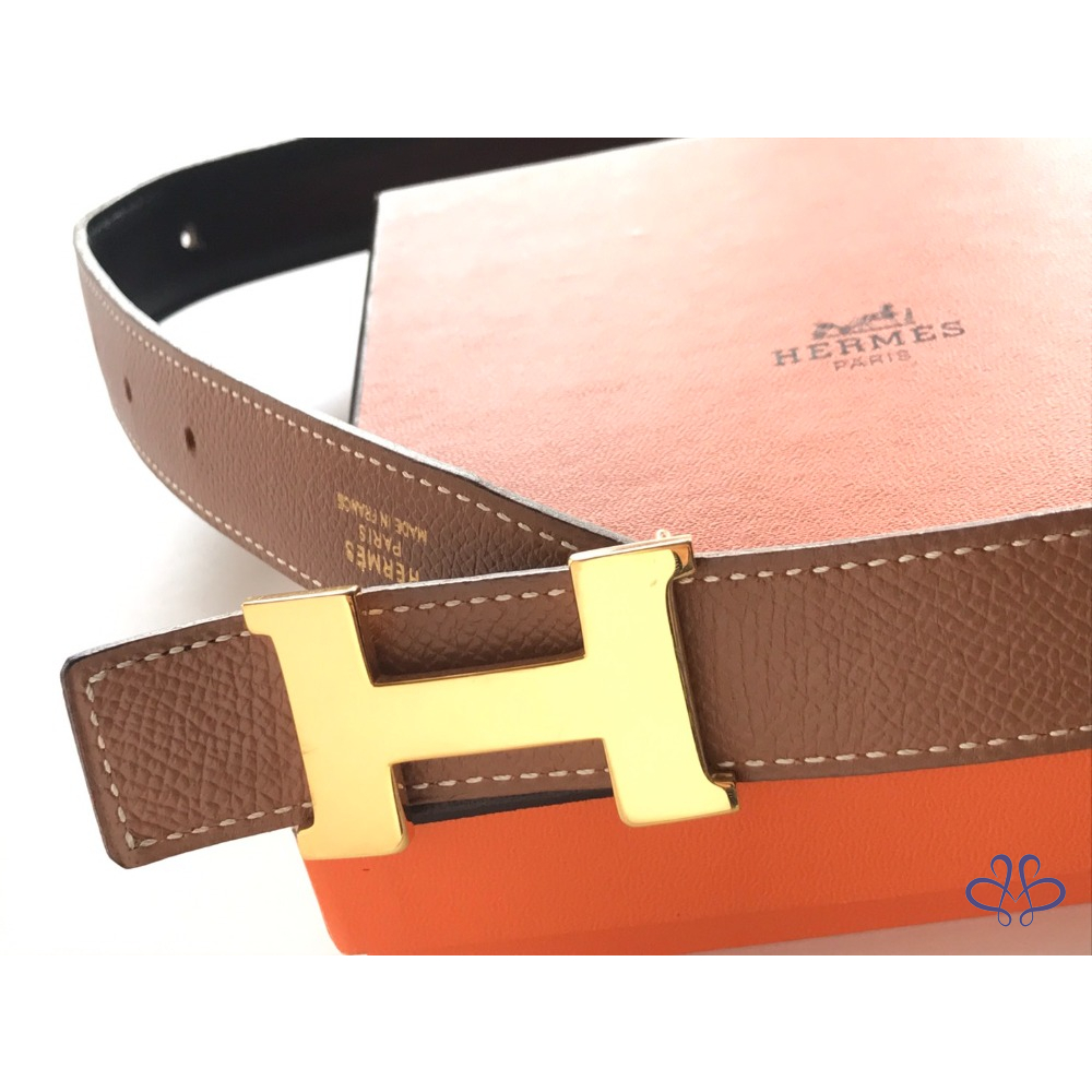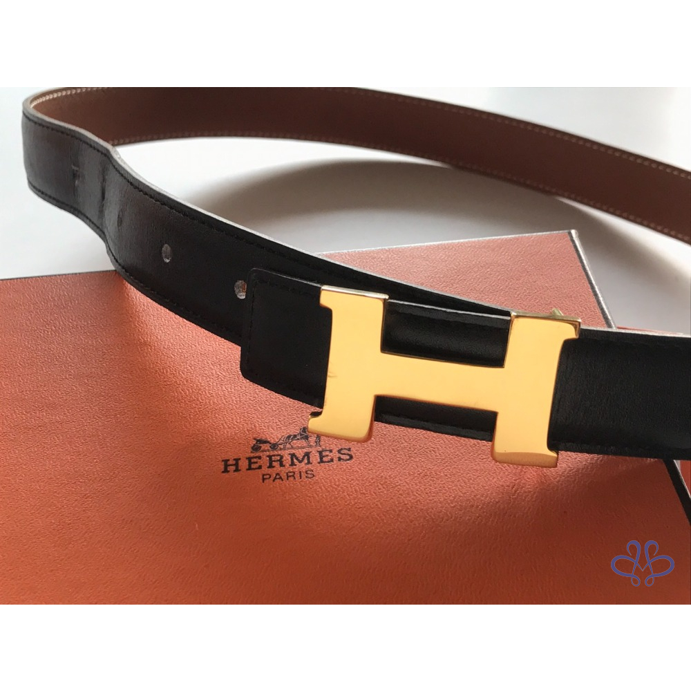 ~HERMES 附原廠盒 金色H頭+黑色/駝色雙色 腰帶75刻印