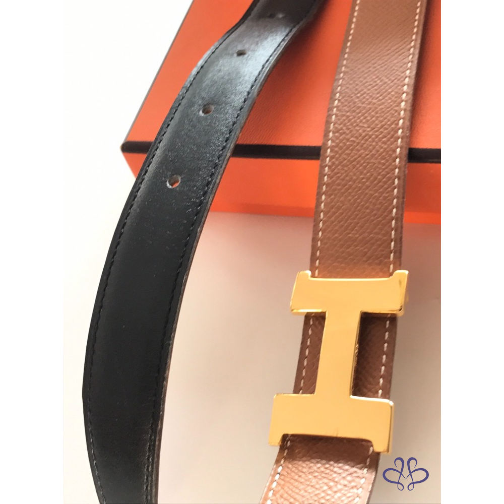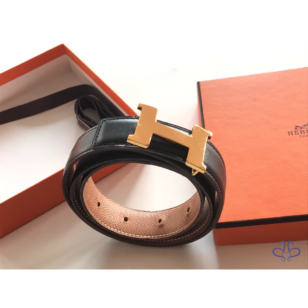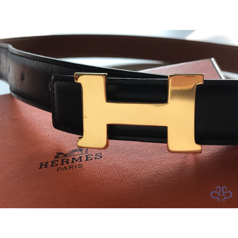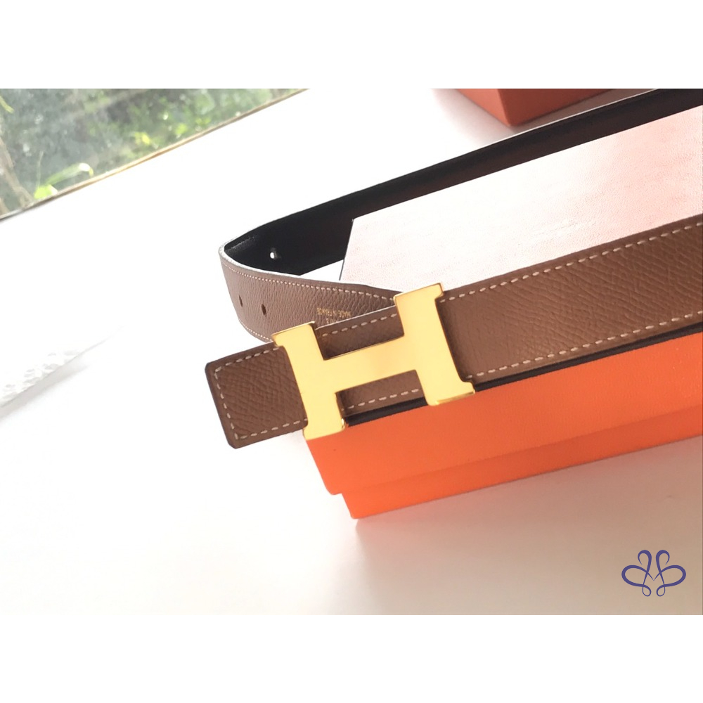 ~HERMES 附原廠盒 金色H頭+黑色/駝色雙色 腰帶75刻印