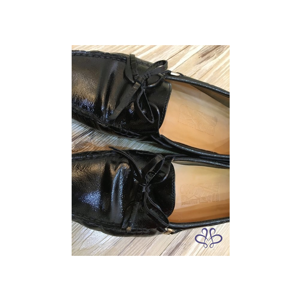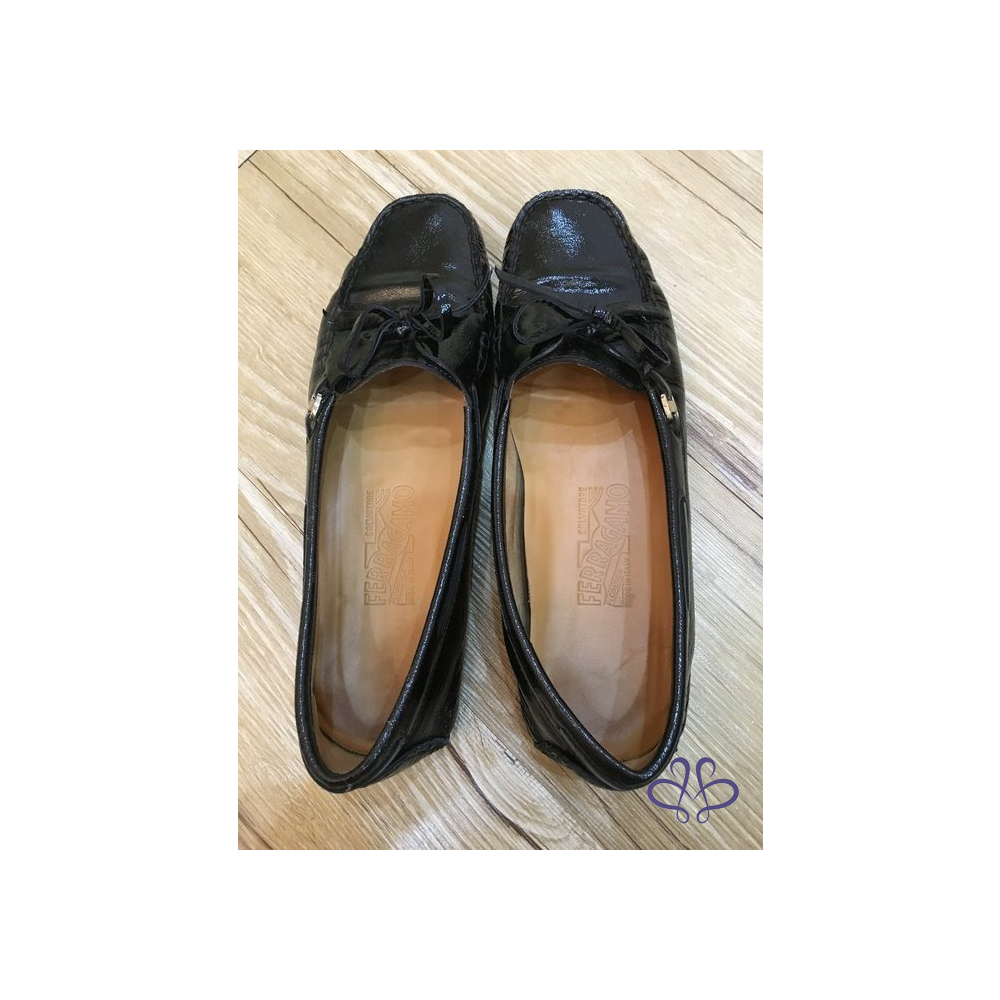 Salvatore Ferragamo黑色亮皮平底鞋 size:7D