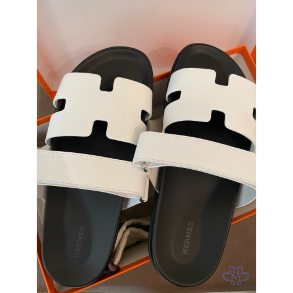 Hermes Chypre Sandal 男碼EU44 黑白配色 全新全配 台灣購證影本
