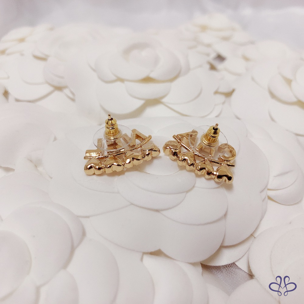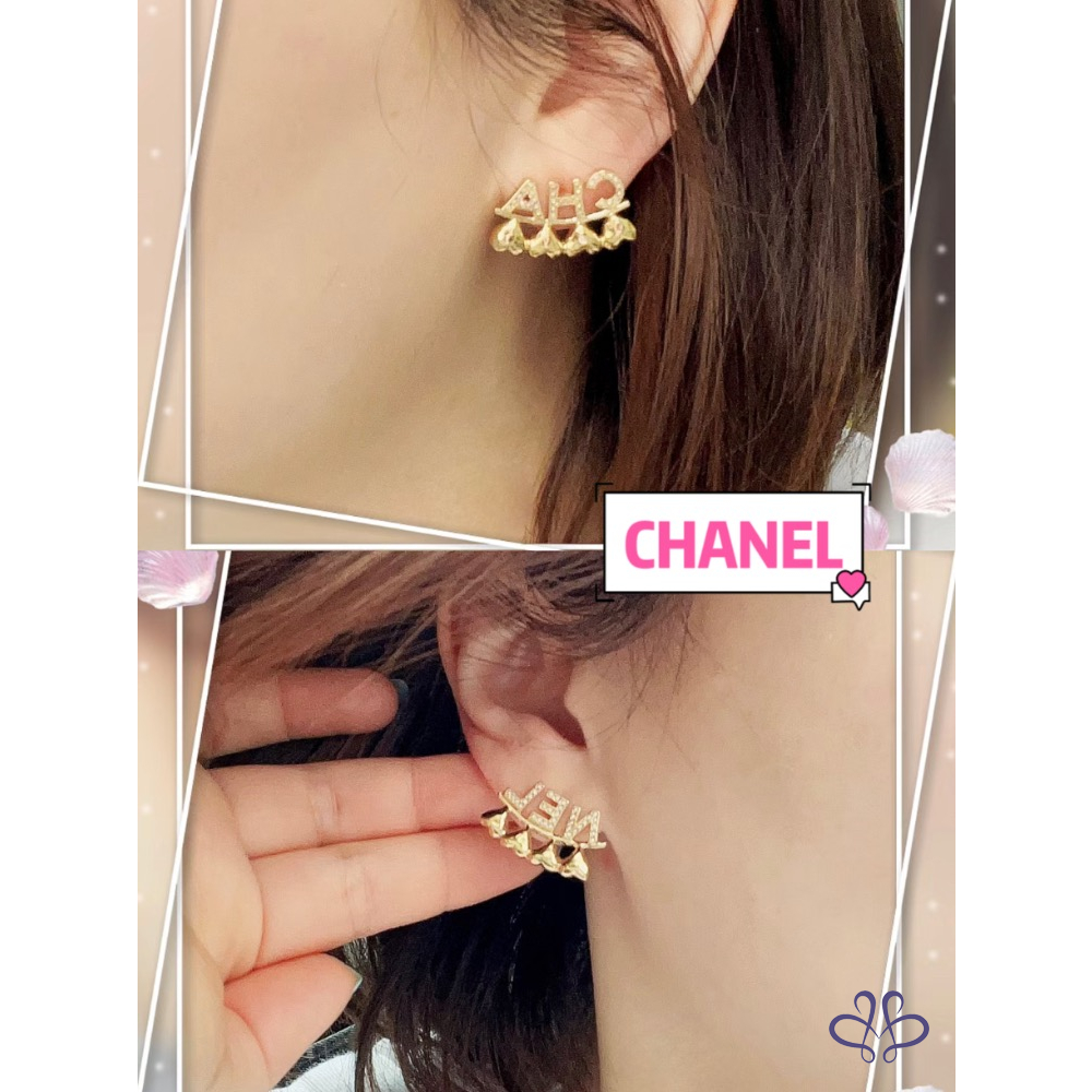 CHANEL 香奈兒 小香 水鑽 金色 字母 愛心 針式 穿式 耳環 全新✨