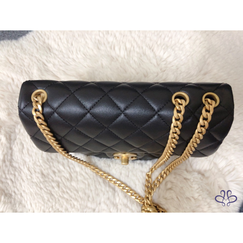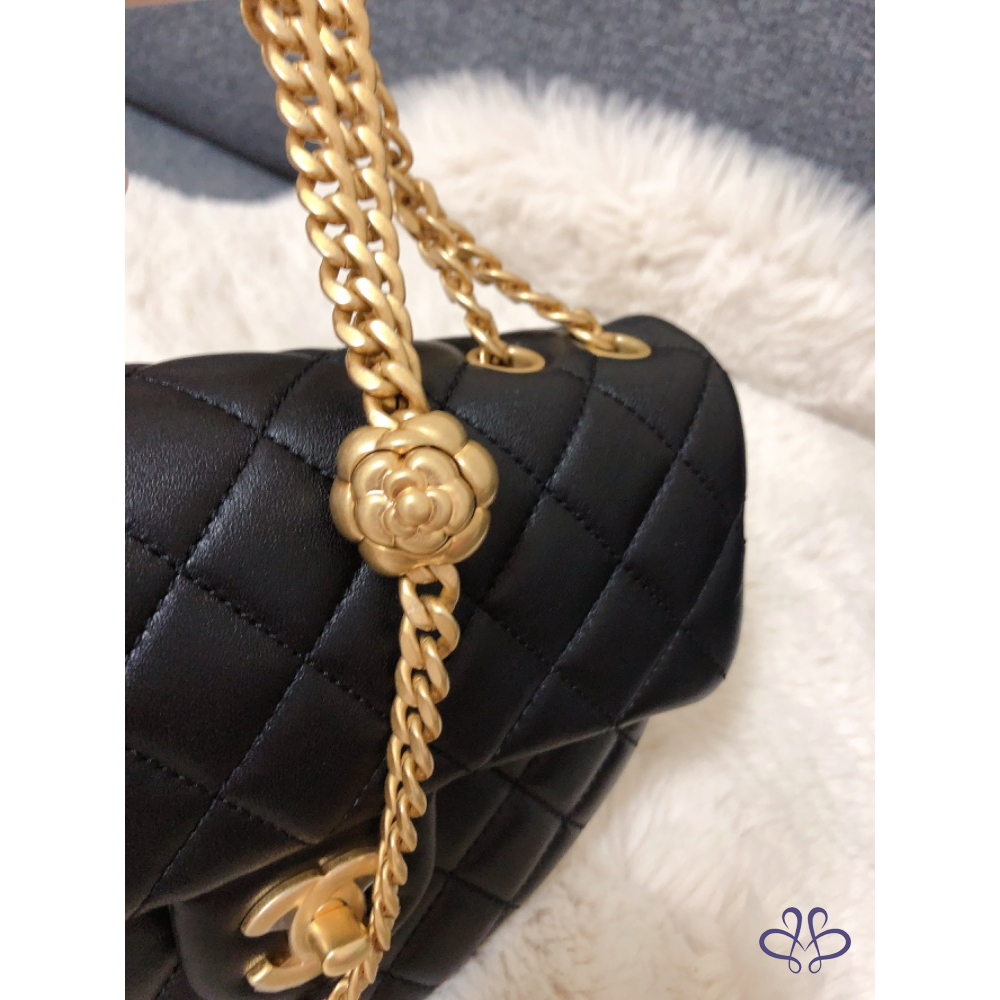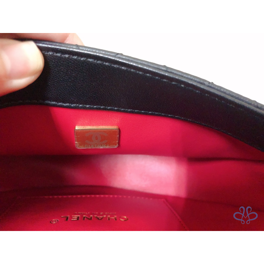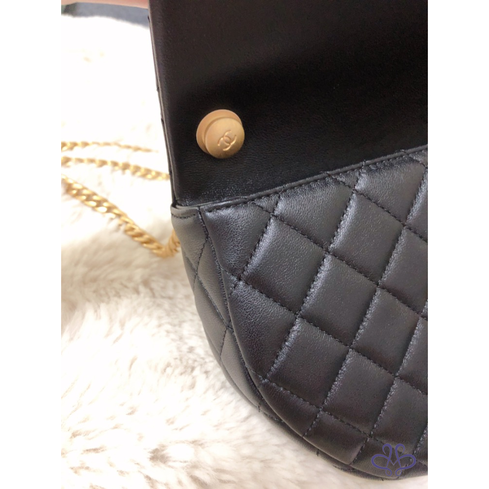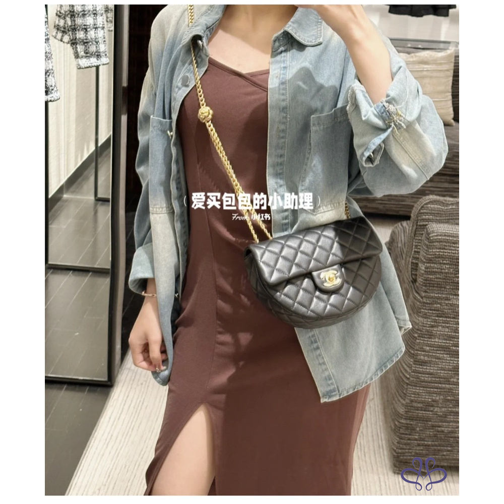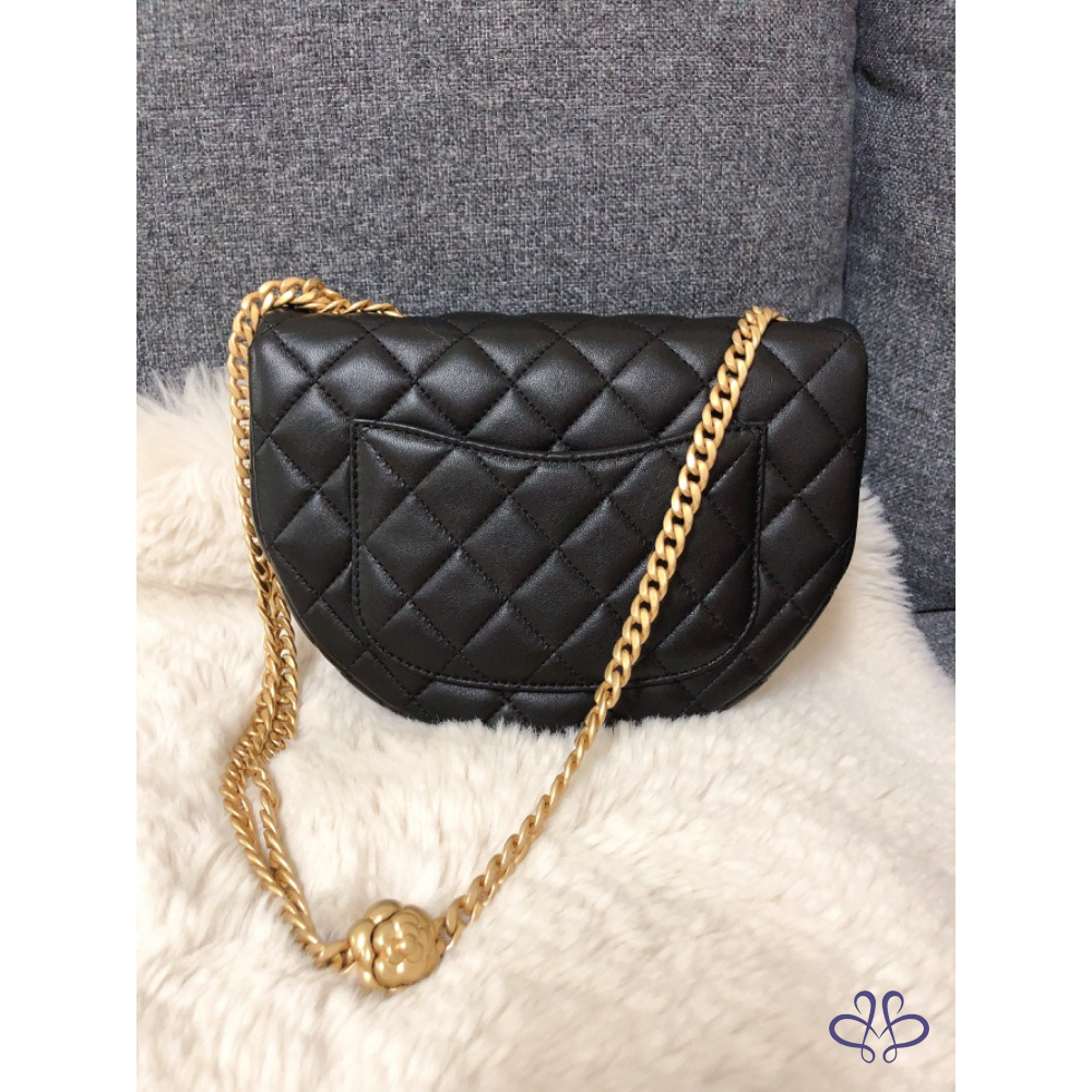 Chanel➰2023春夏最新款。山茶花調節釦黑色半圓馬鞍包