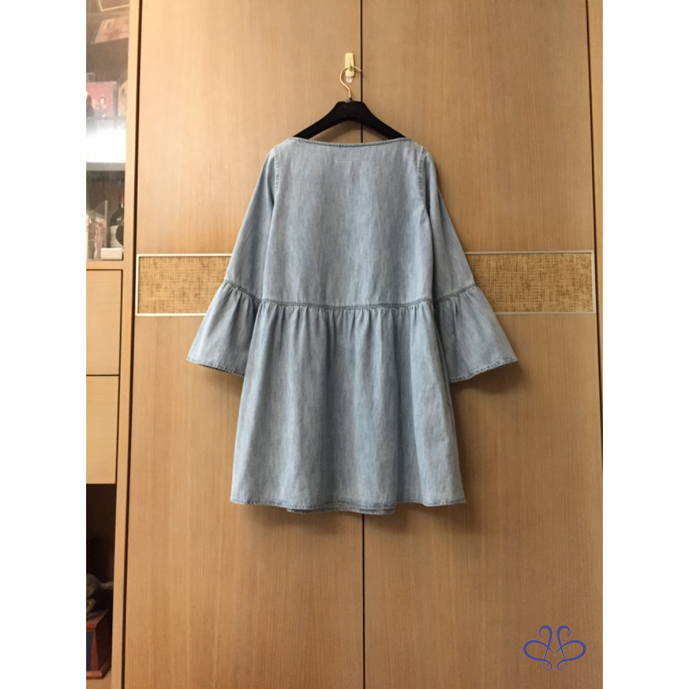 超美的牛仔洋裝淺藍色九分荷葉袖公主般年輕可愛兩側有口袋很重要長度也是很剛好在膝蓋之上搭配小白鞋涼拖鞋都很好看喔 她家的東西真的不同於一般韓貨剪裁設計都很完美雖然貴鬆鬆的但很值得 就便宜出清了 出清價$13800含運售出不退感謝辛苦管理員謝謝美女們推喔她團