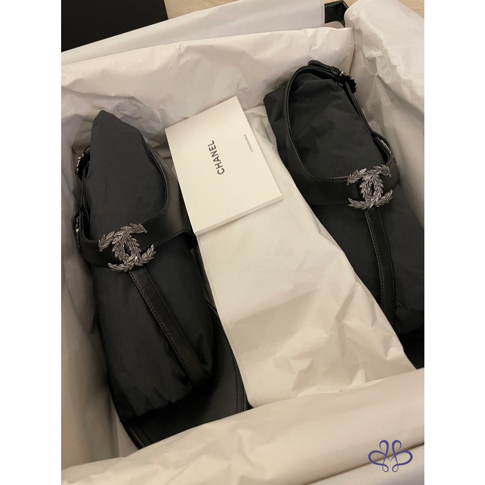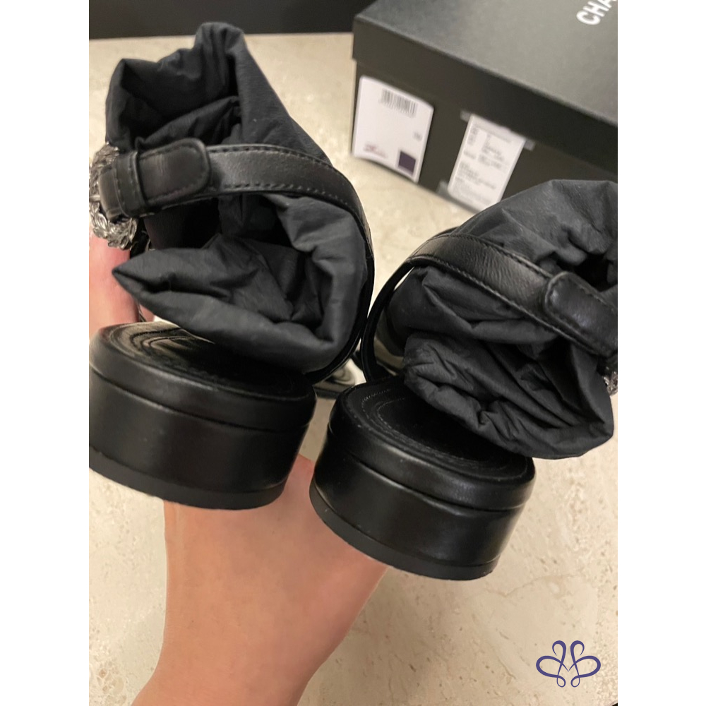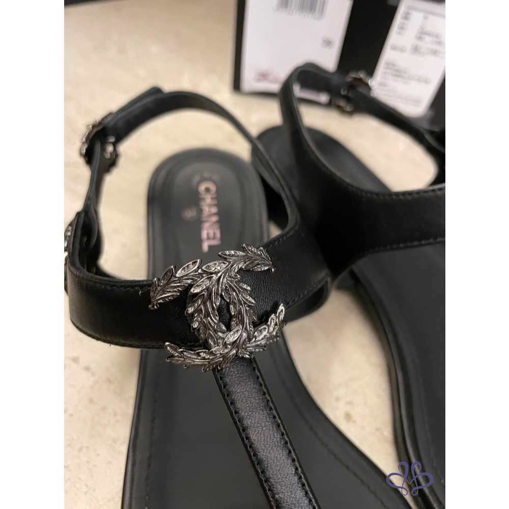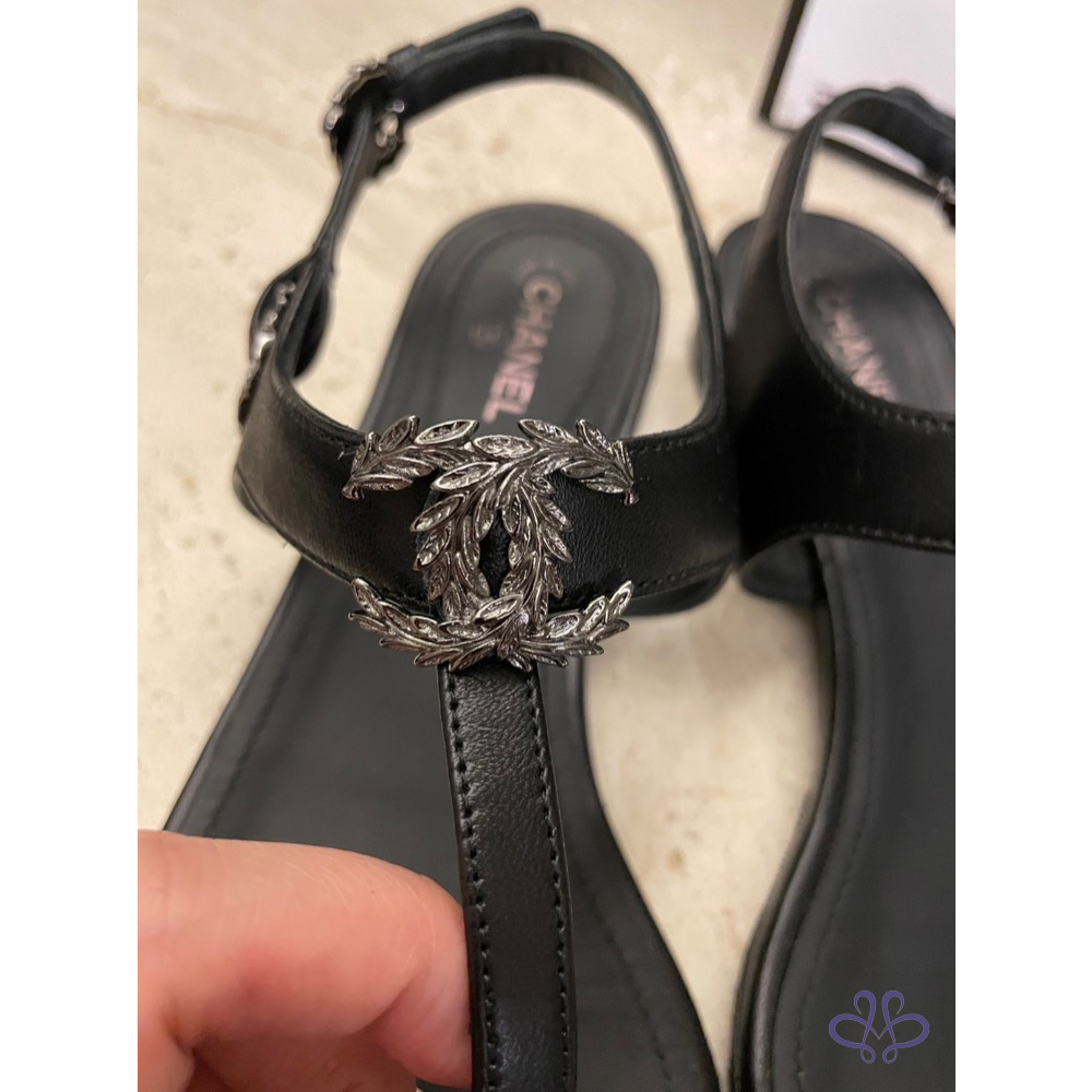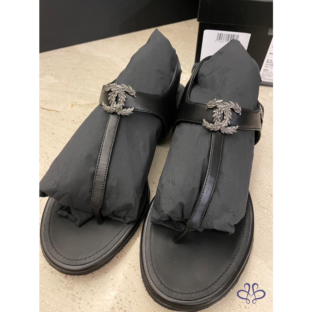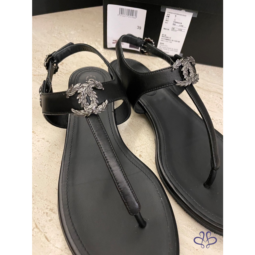 CHANEL ~22A黑色月桂葉雙C涼鞋