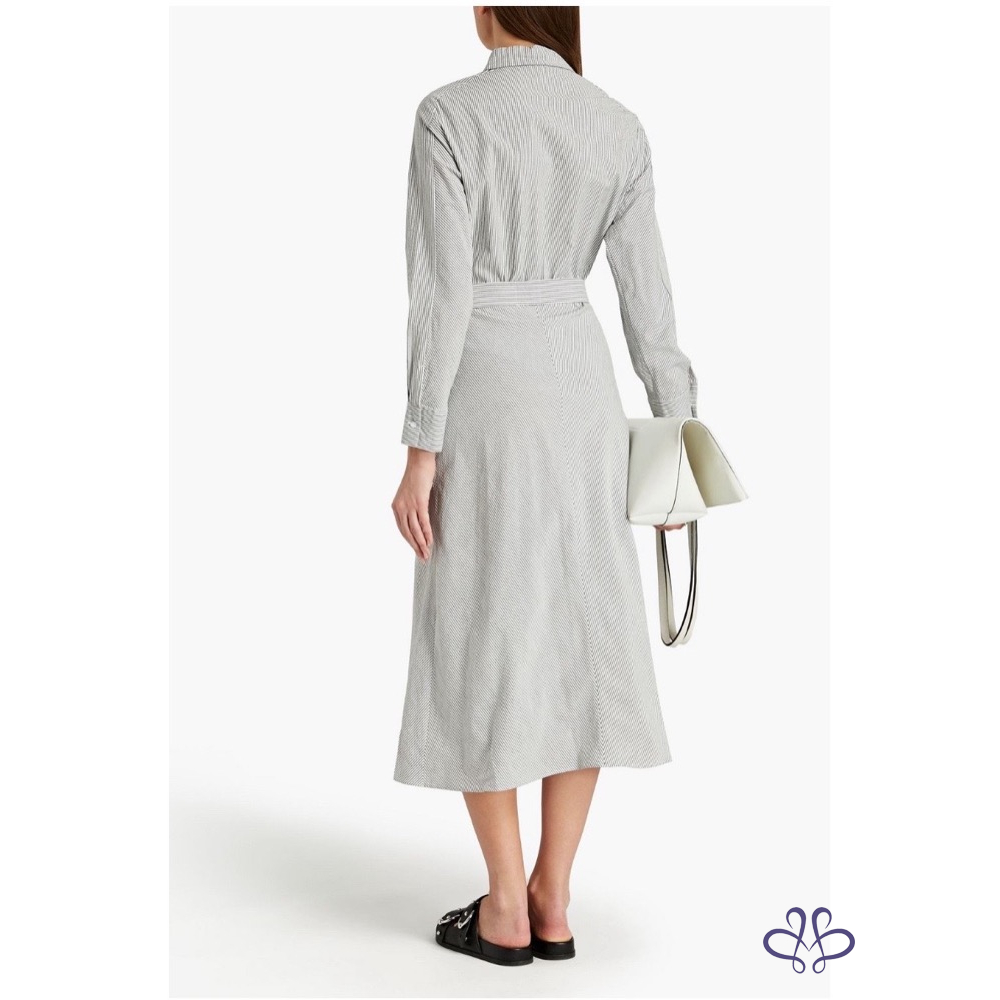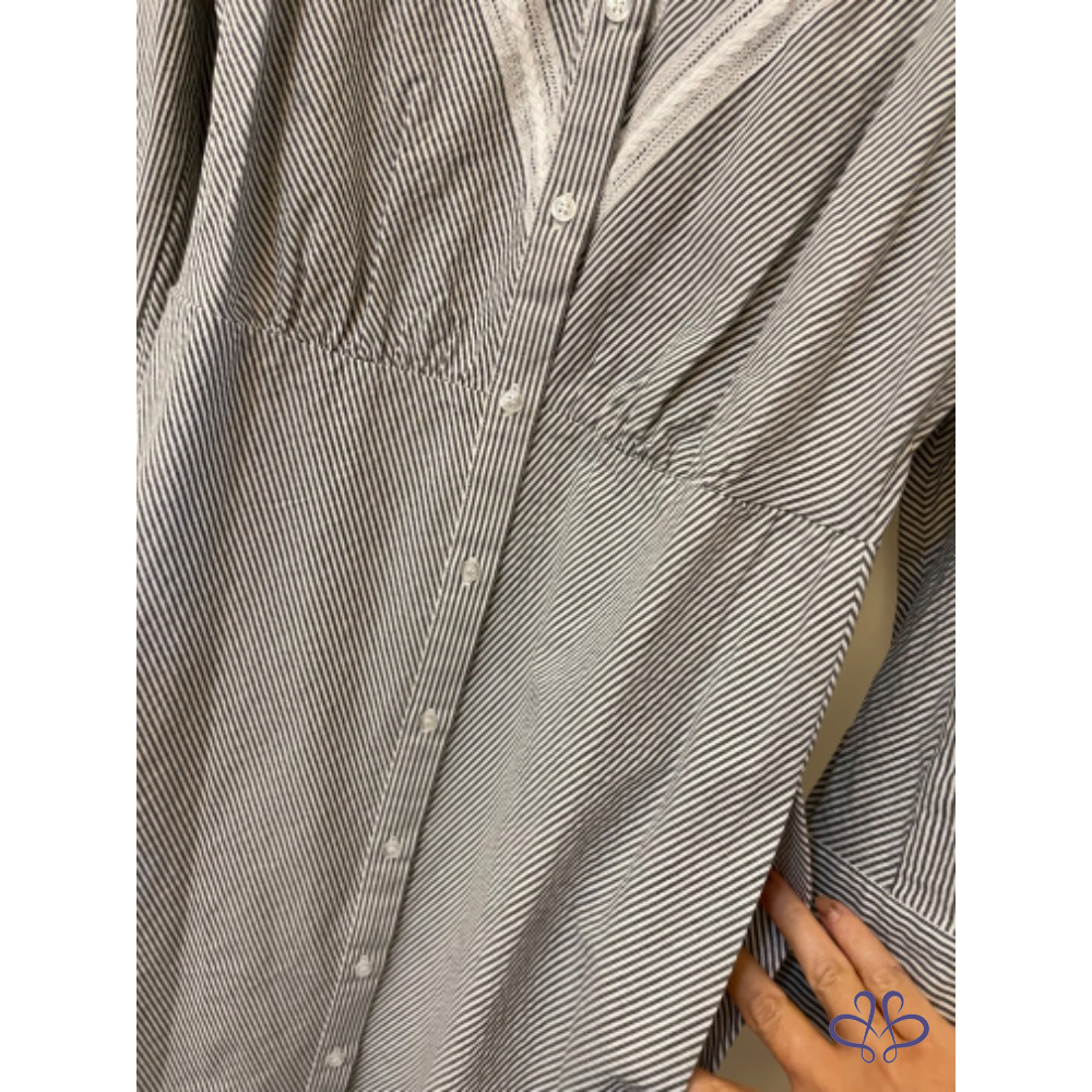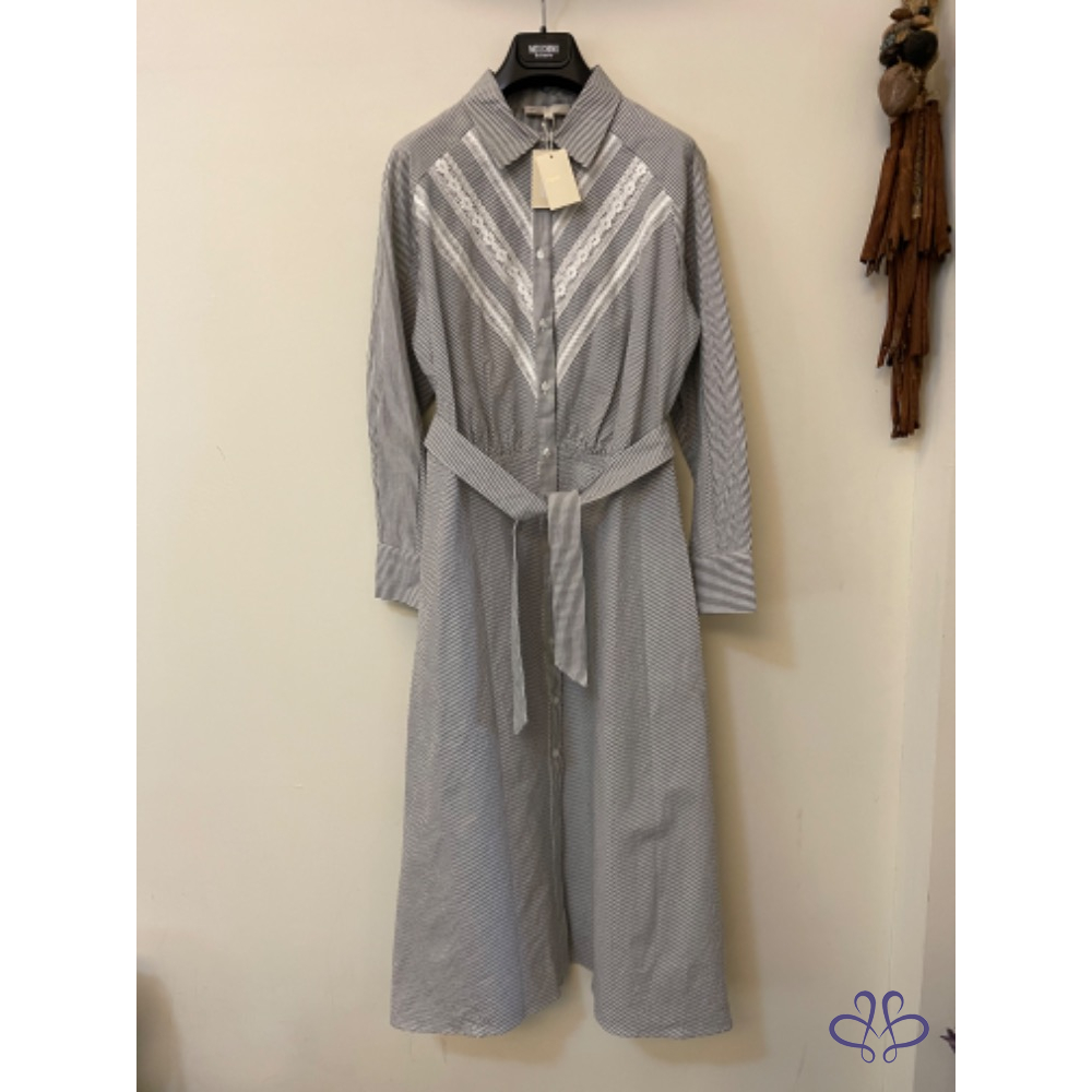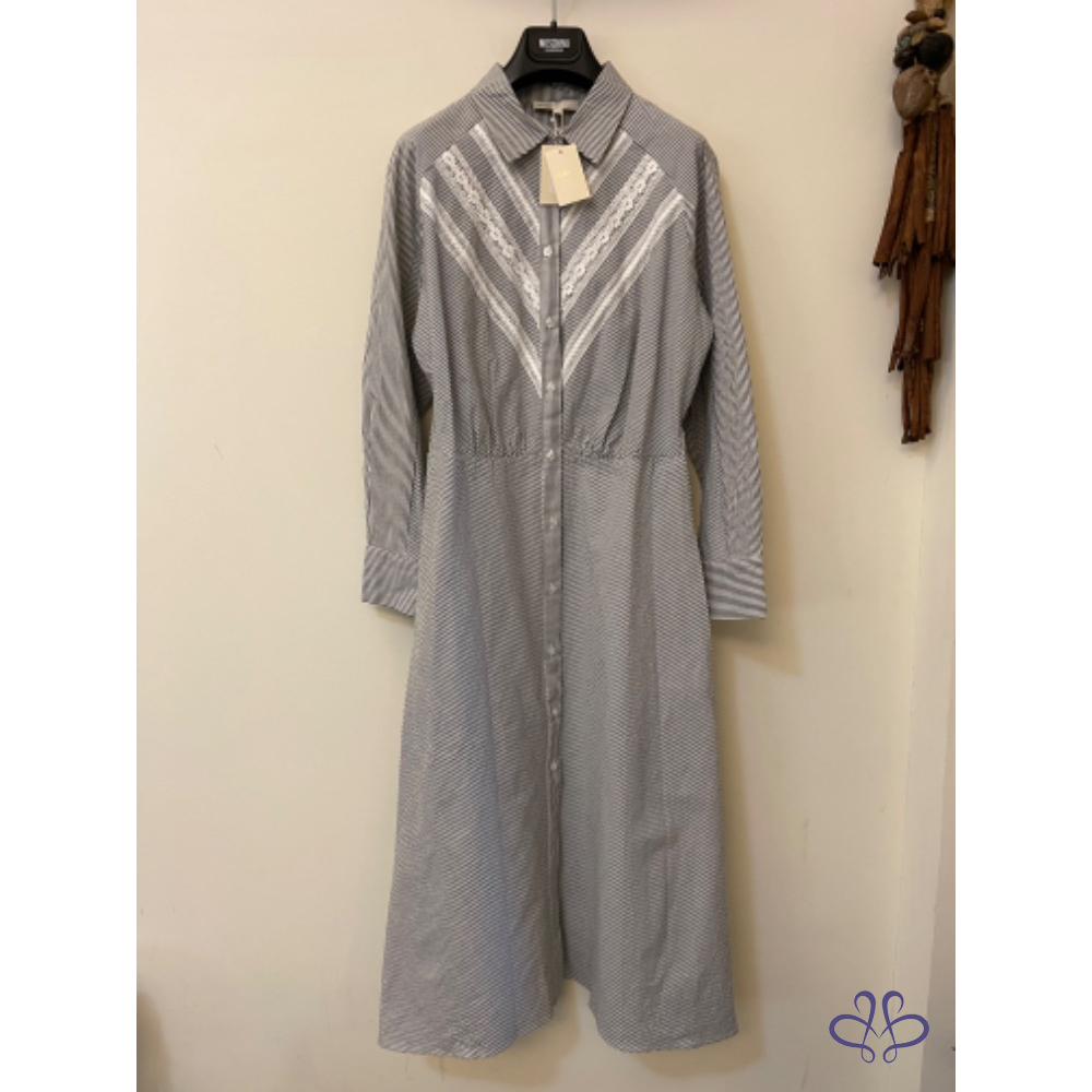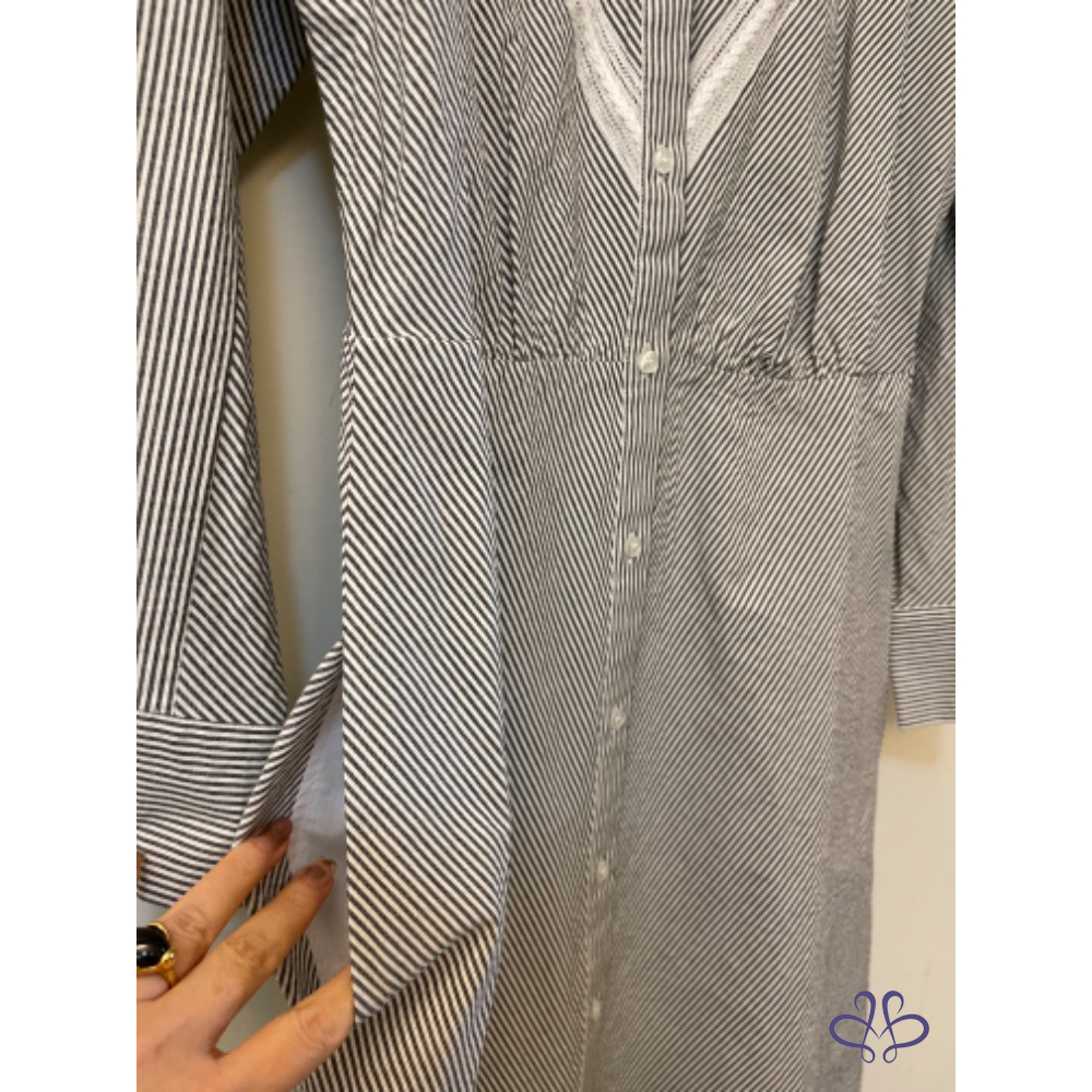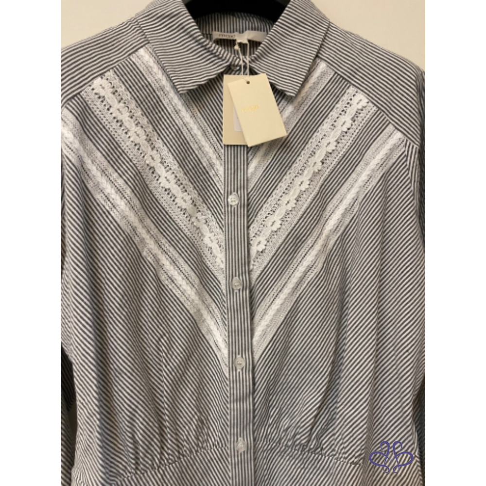 全新MAJE PARIS條紋蕾絲鉤花襯衫式連身裙