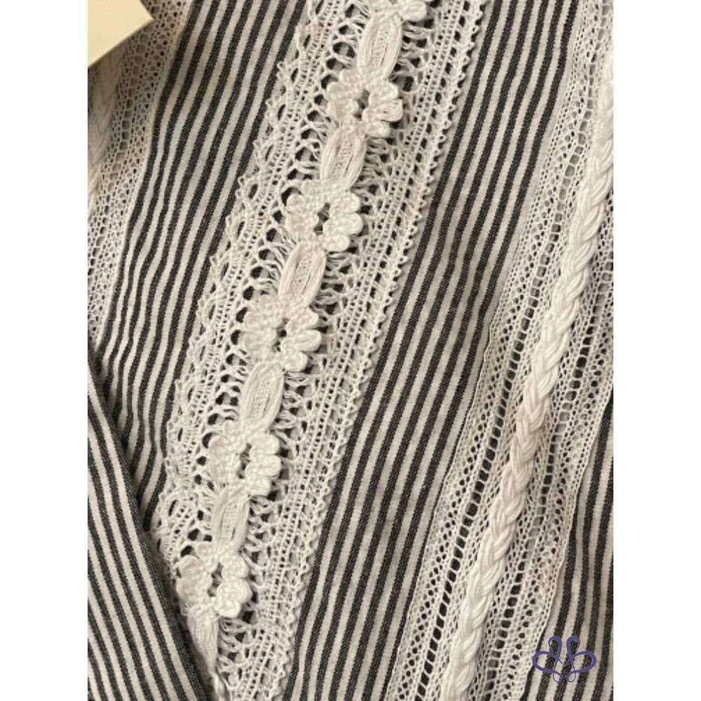 首頁 精品服飾 全新MAJE PARIS條紋蕾絲鉤花襯衫式連身裙