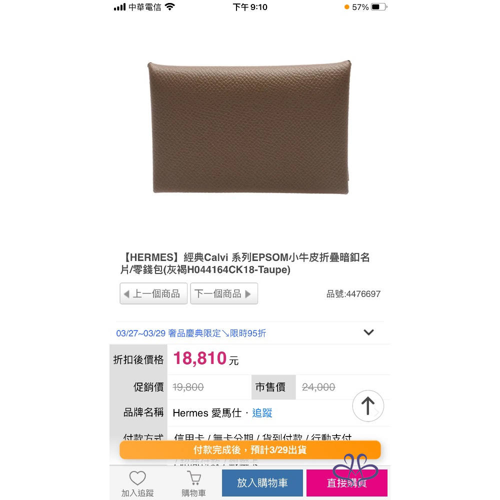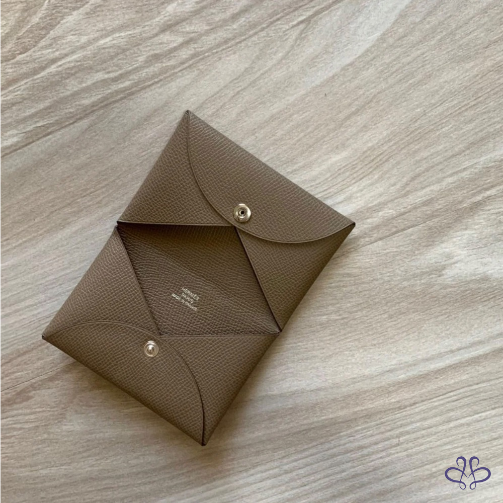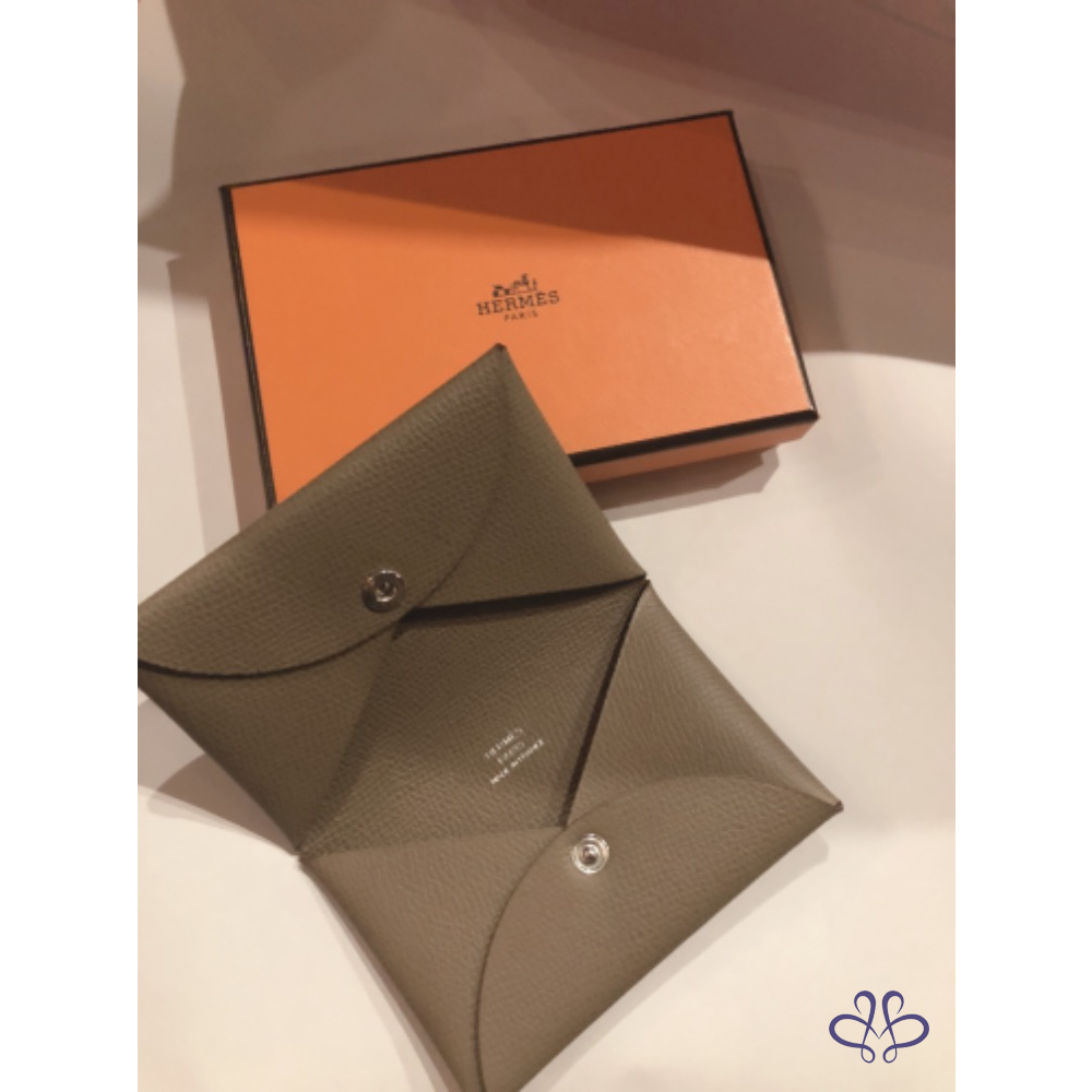 全新/全新/愛馬仕Calvi大象灰卡夾