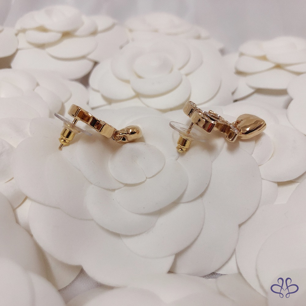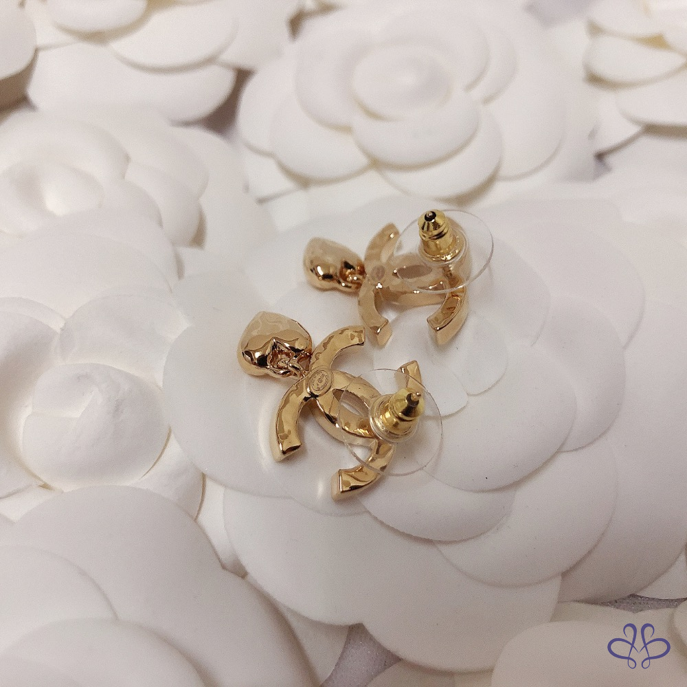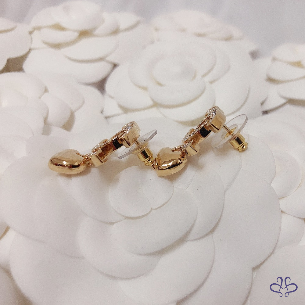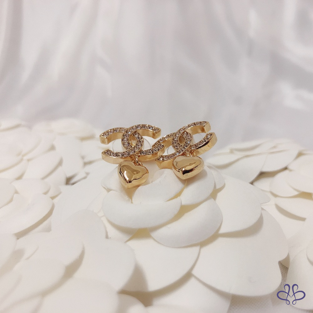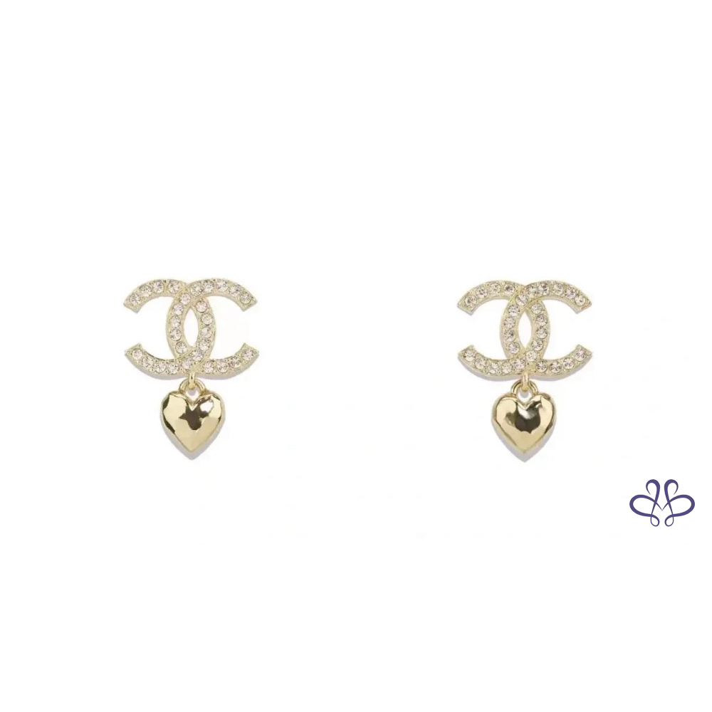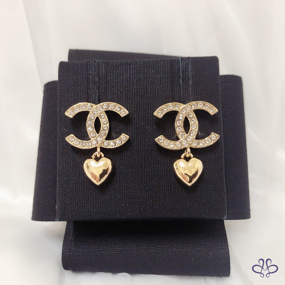 CHANEL 香奈兒 小香 新款 金色 水鑽 雙C logo 愛心 針式 耳環 全新✨