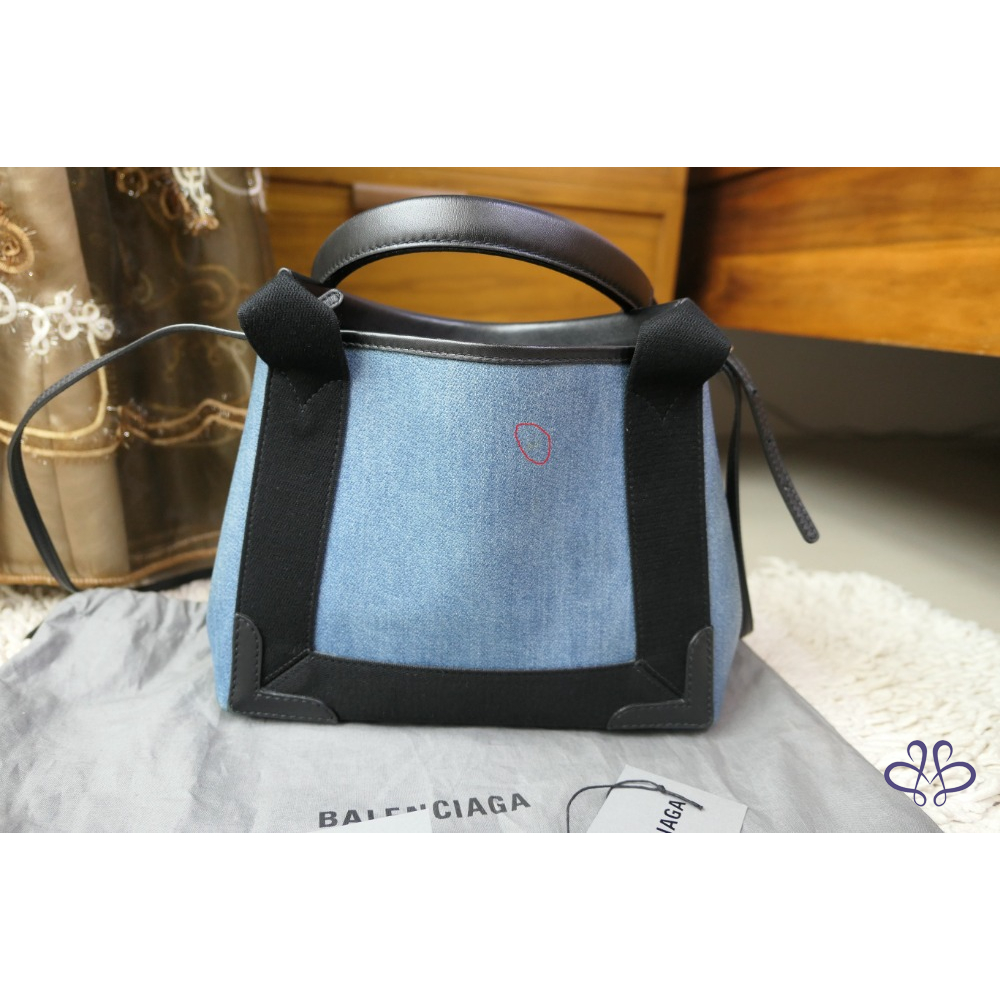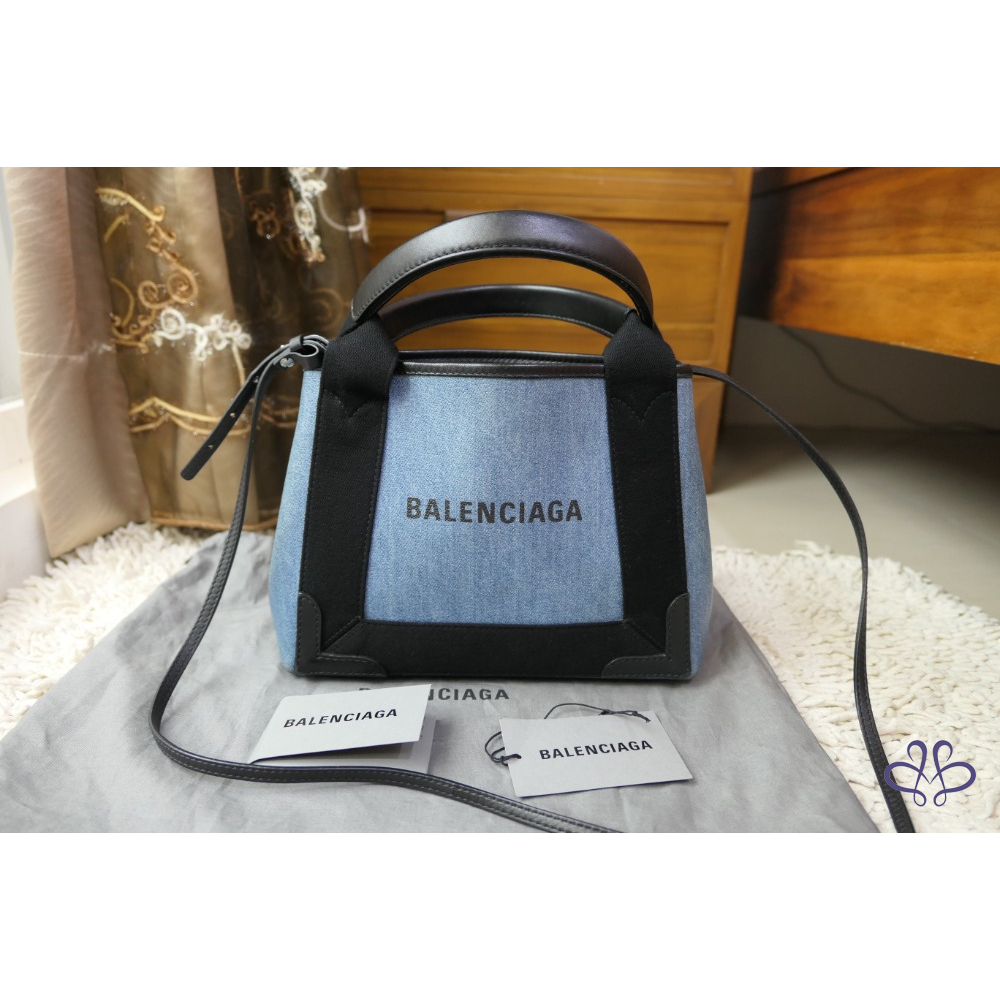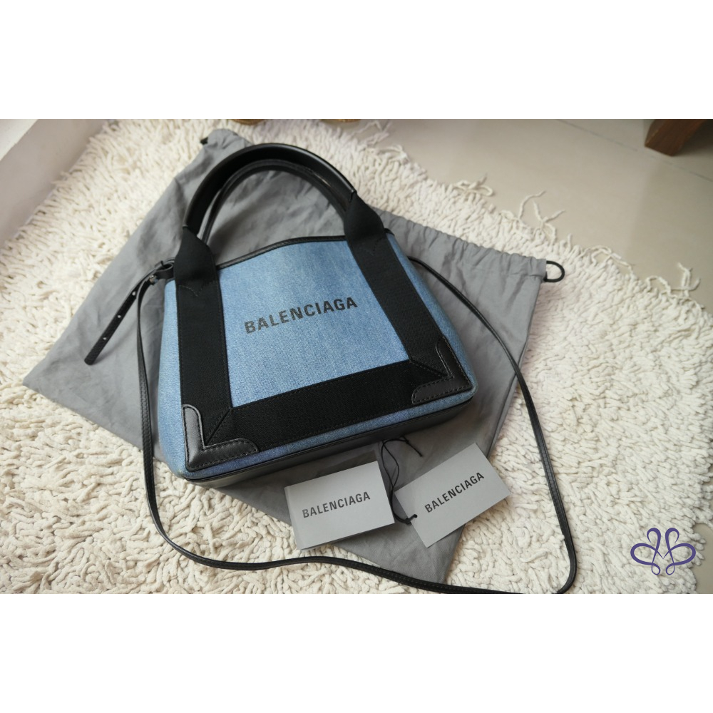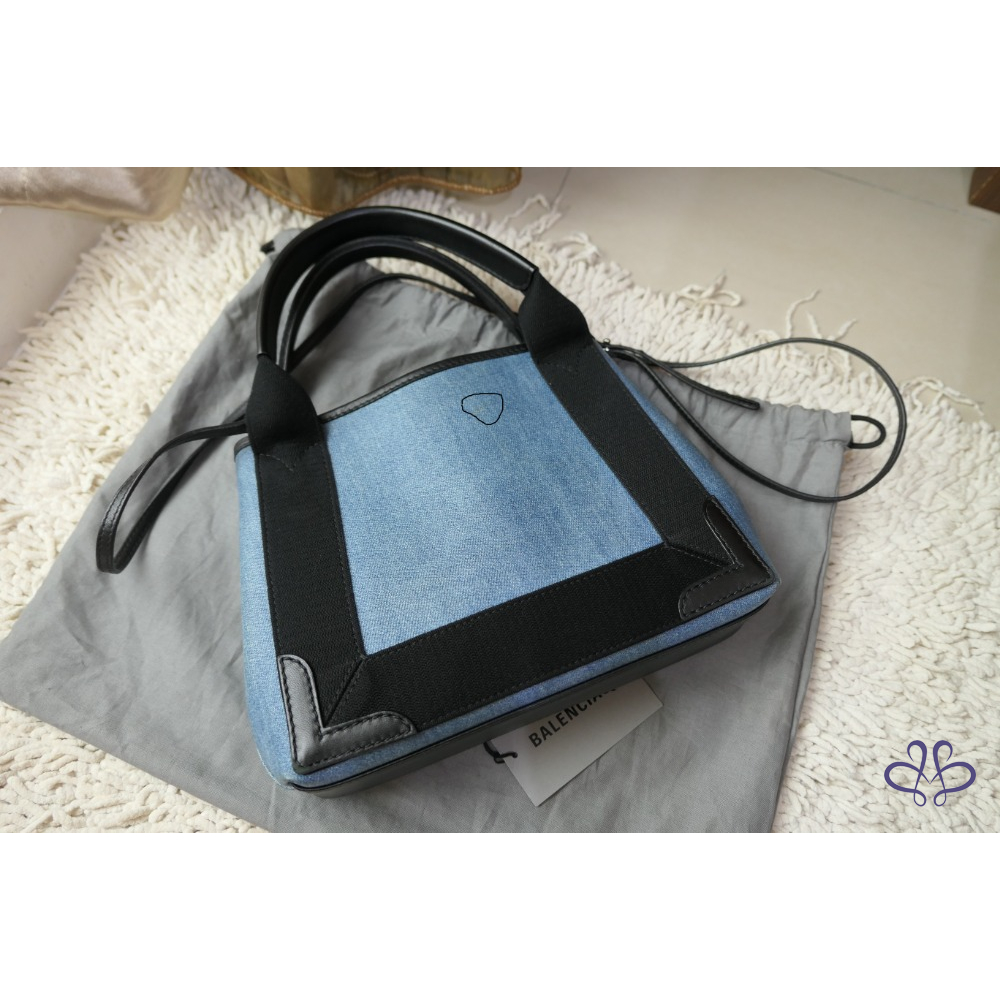巴黎世家BALENCIAGA NAVY CABAS XS牛仔布斜背/手提帆布袋