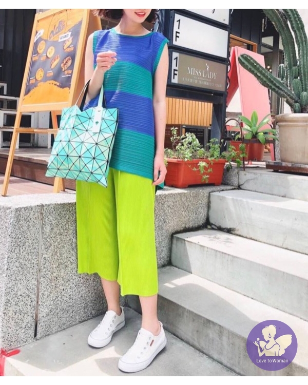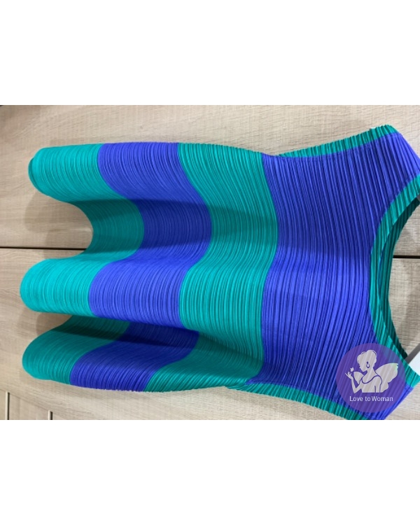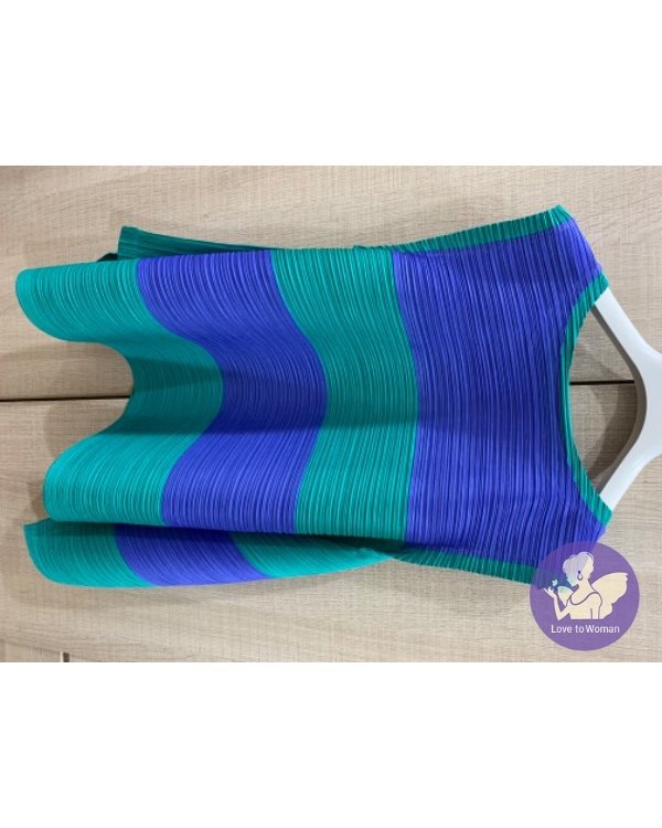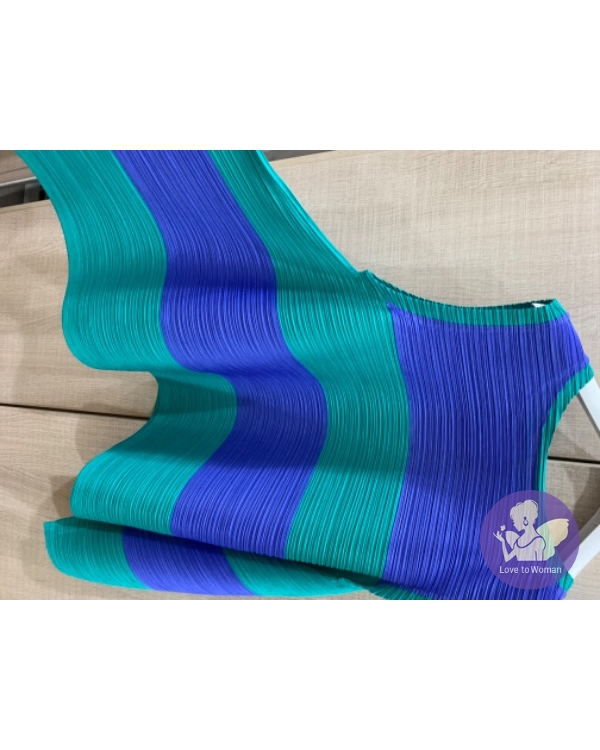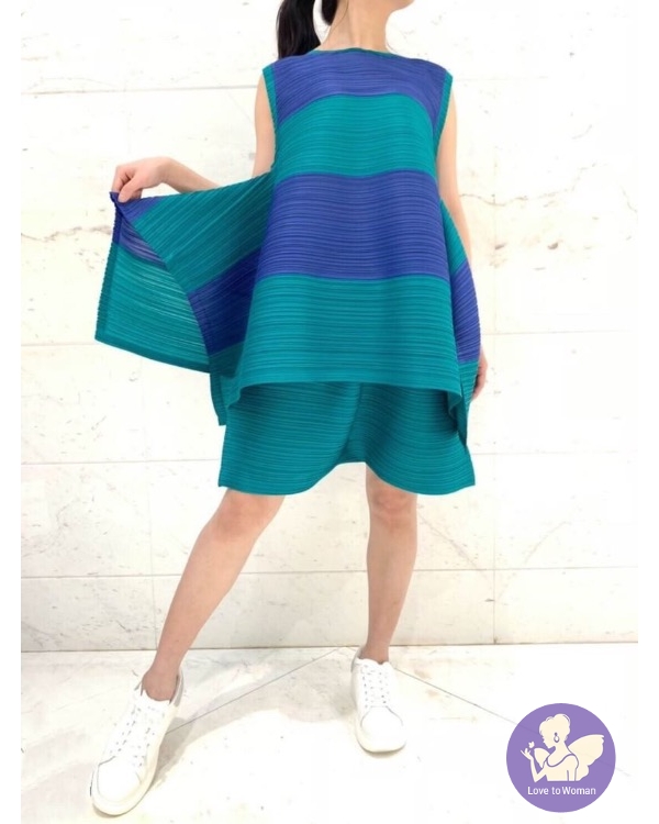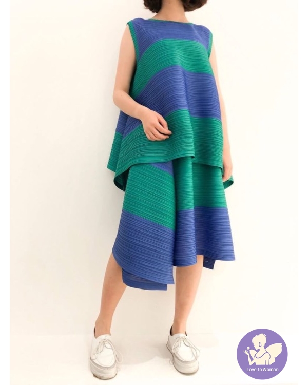 首頁 精品服飾 三宅一生Pleats please藍綠橫紋造型上衣