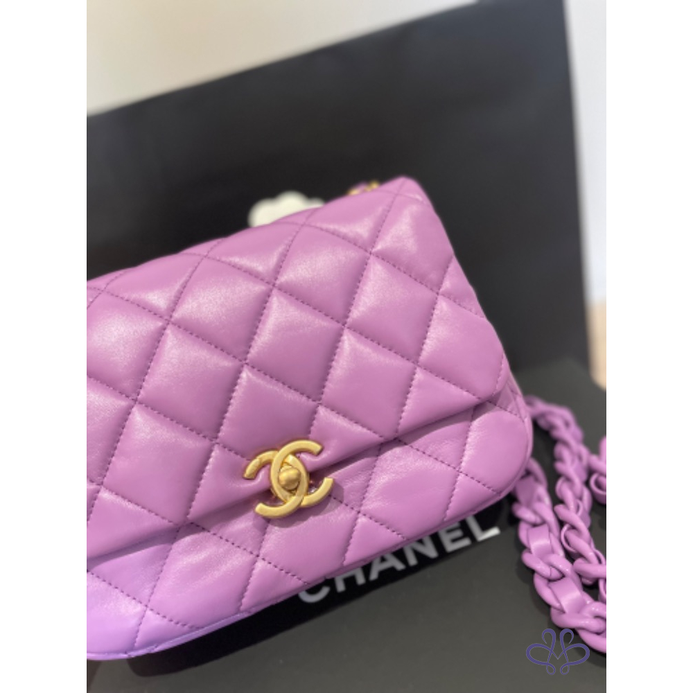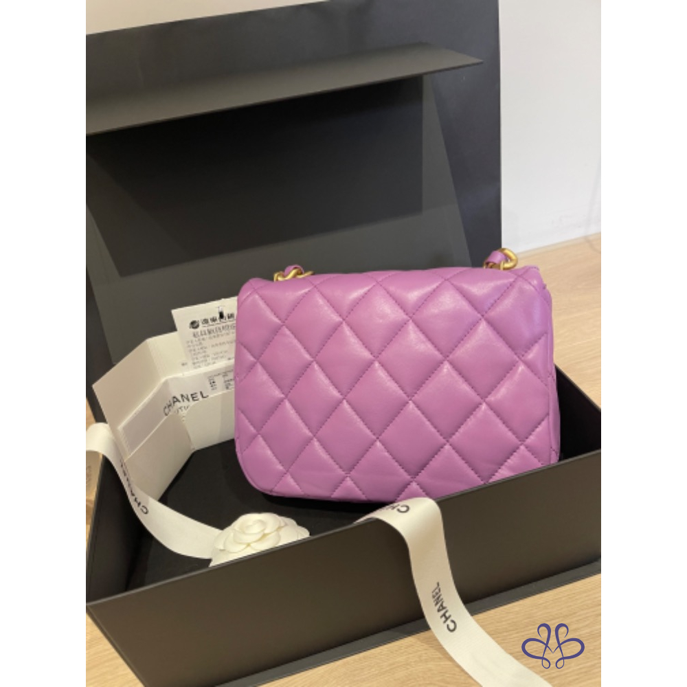產品信息 ????全新全配/盒子/紙袋 /台灣正本購證去個資/發票收據單 ????羊毛氈 膠膜內裡均完整 春夏就要背亮色包 香芋紫配上復古金鏈真的很美 顏色很百搭 22公分容量又很棒 ⚠️穿搭照截至小紅書不妥刪ㄔㄨ ⚠️確定購買請於24小時內匯款 ⚠️保證真品 離櫃商品高標請繞道