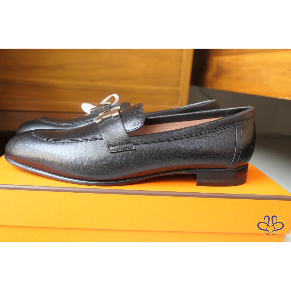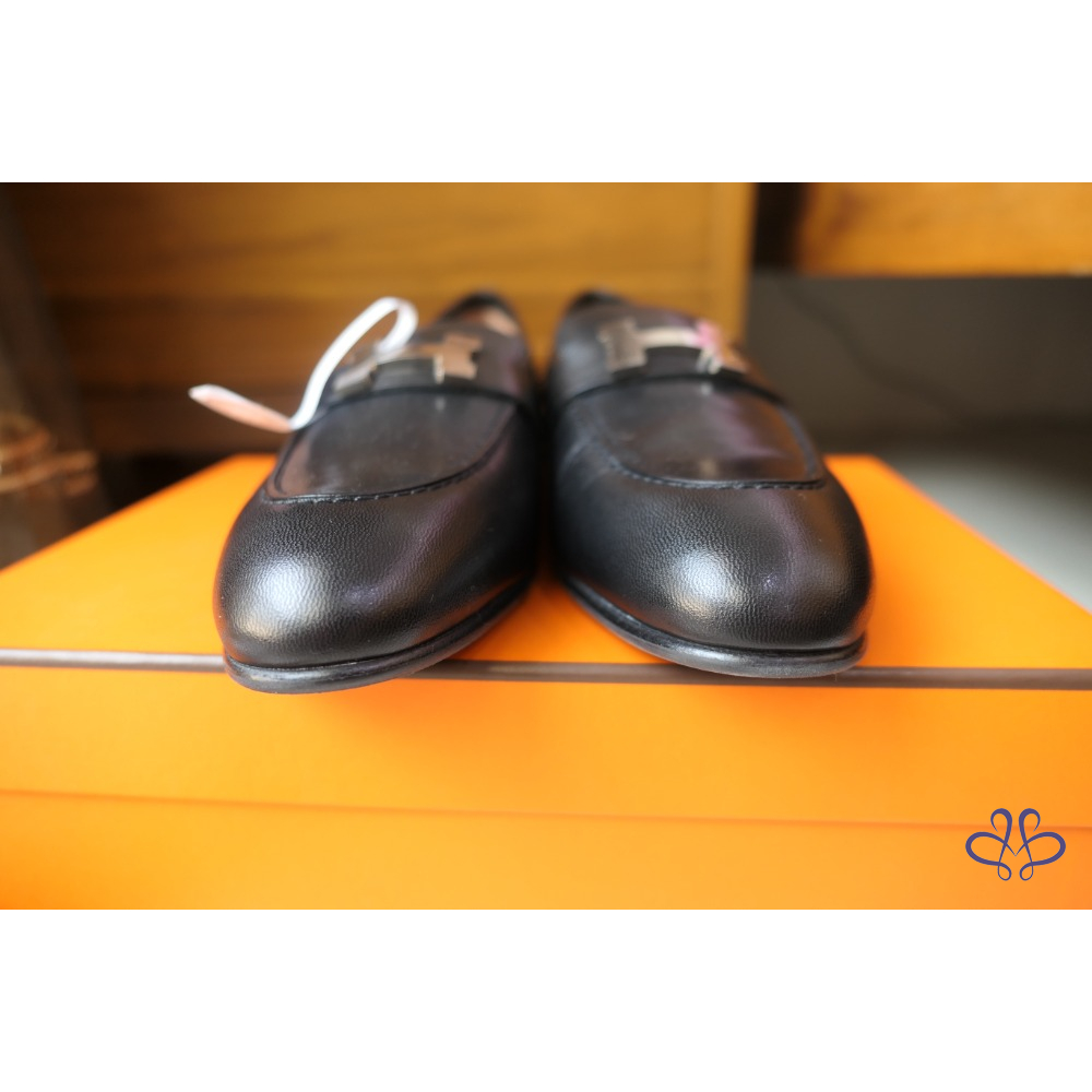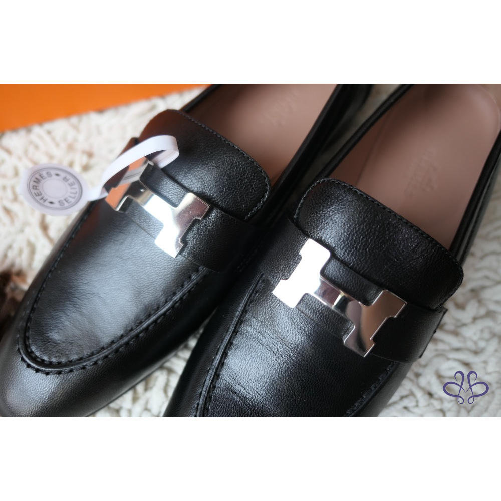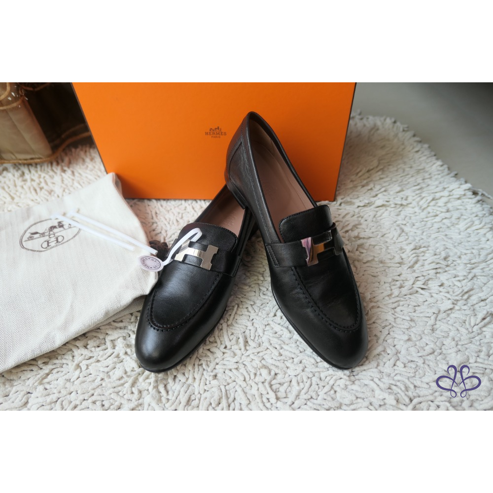 全新Hermès Paris Loafer 黑X銀扣 樂福鞋 尺寸:37.5