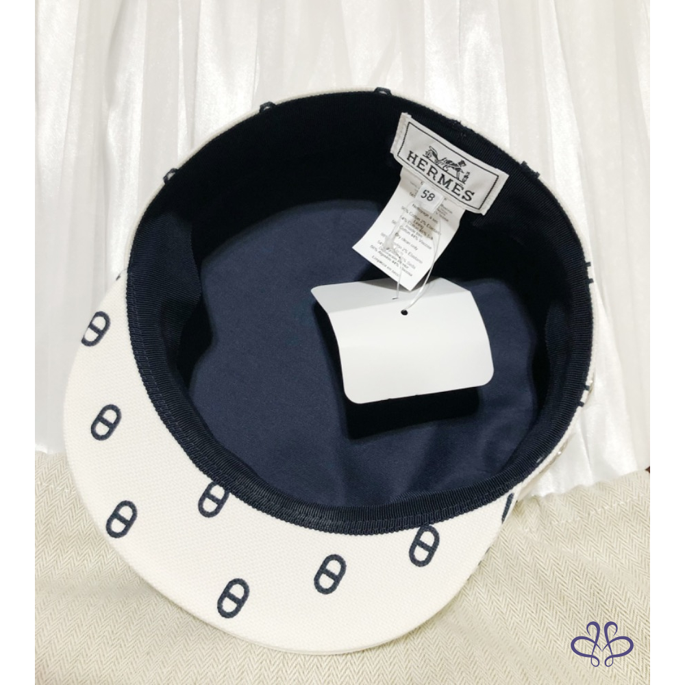 首頁 精品手錶 Hermès 愛馬仕 新款 爆款 缺貨款 黑白 豬鼻帆布 報童帽 58號 全新✨