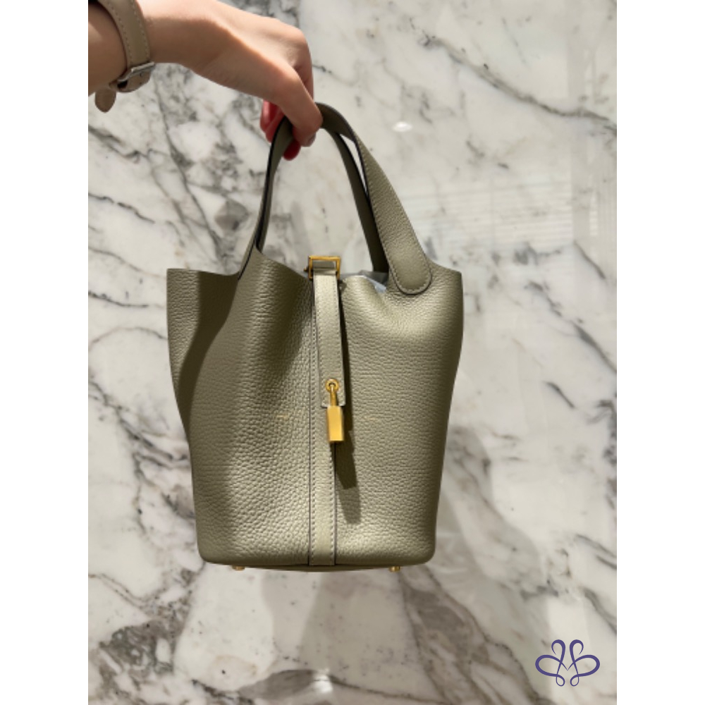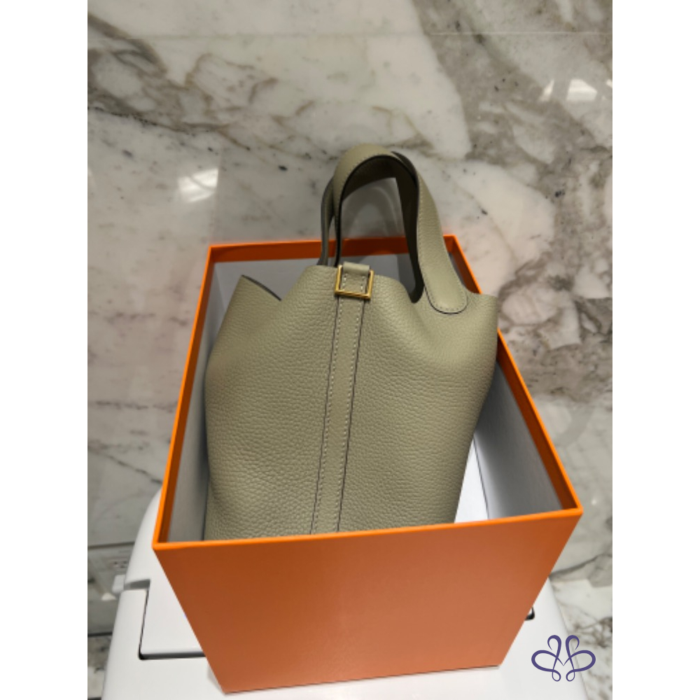 產品信息 A006077 全新????????Hermès Picotin 18 鼠尾綠金扣 最近水漲船高的顏色,有夠夯的 直逼金剛色 售148800含運 台中以北送到府 附件:購證正本、橘盒、緞帶、紙袋 2023/5購證 亂議價大刀不會回、已讀不回者勿來。 高標勿入 售出不退。 使用官網交易安全又便利