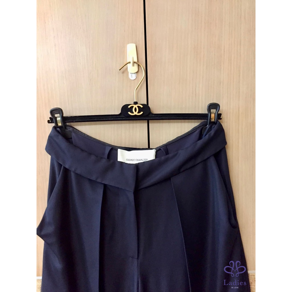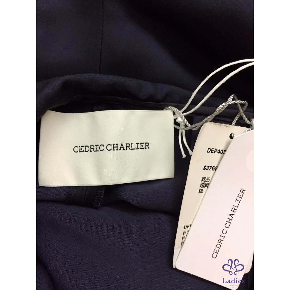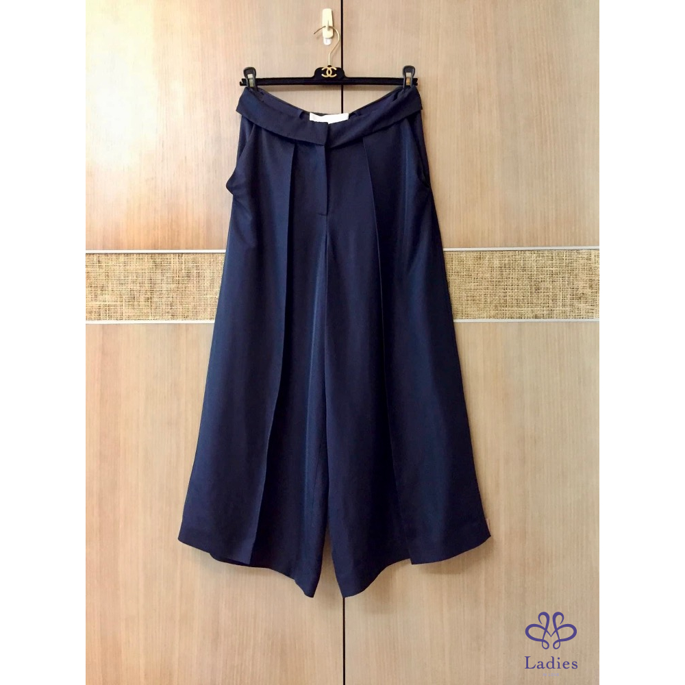 法國設計師品牌CEDRIC CHARLIER深藍色絲緞面高腰反折長褲 購於專櫃購價$37680全新未穿吊牌在 尺寸42長92腰37