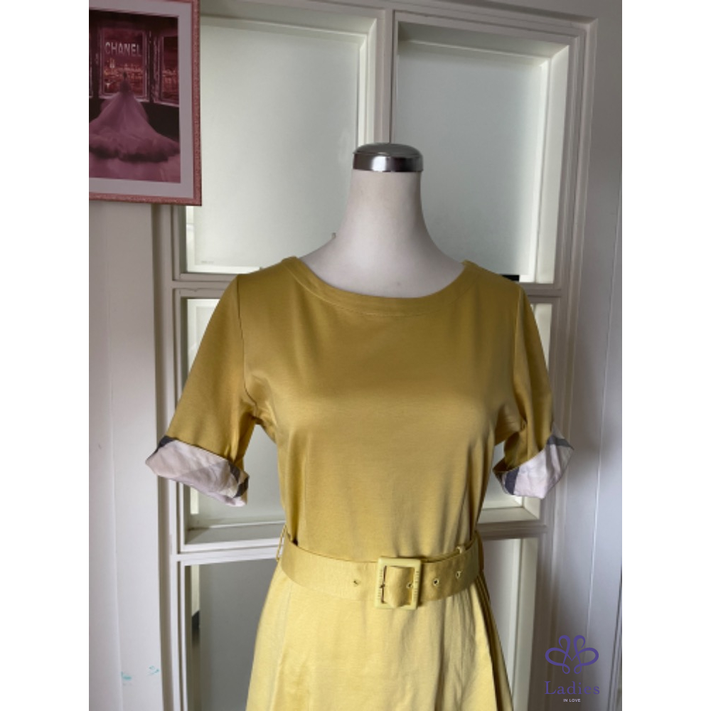 超美????藍標新品牌BURBERRY 鵝黃色 格紋袖洋裝