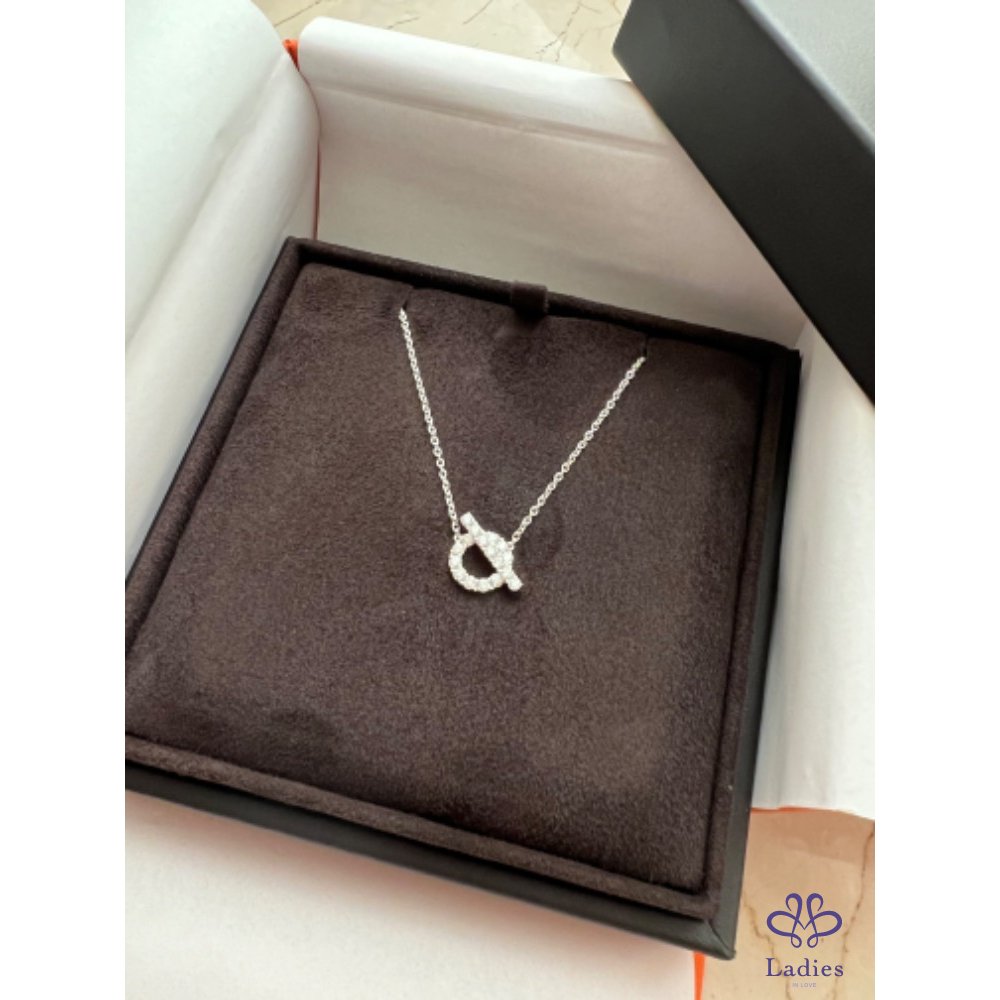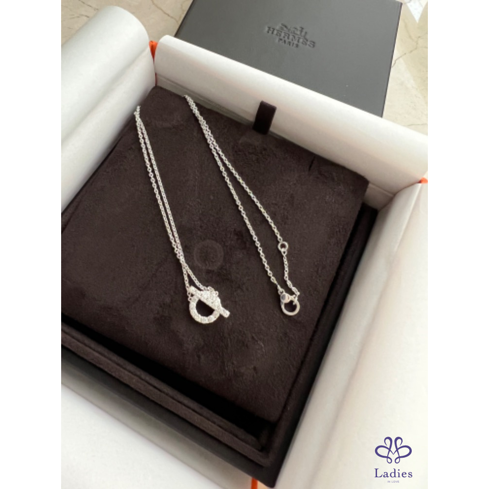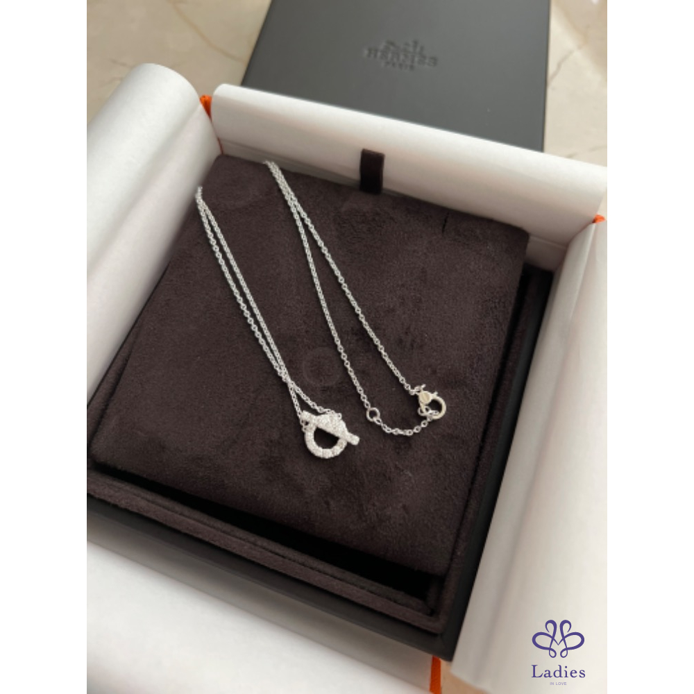 全新Hermès Finesse 白k金鑽石馬蹄項鍊