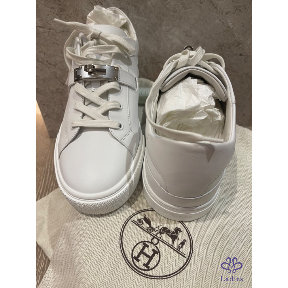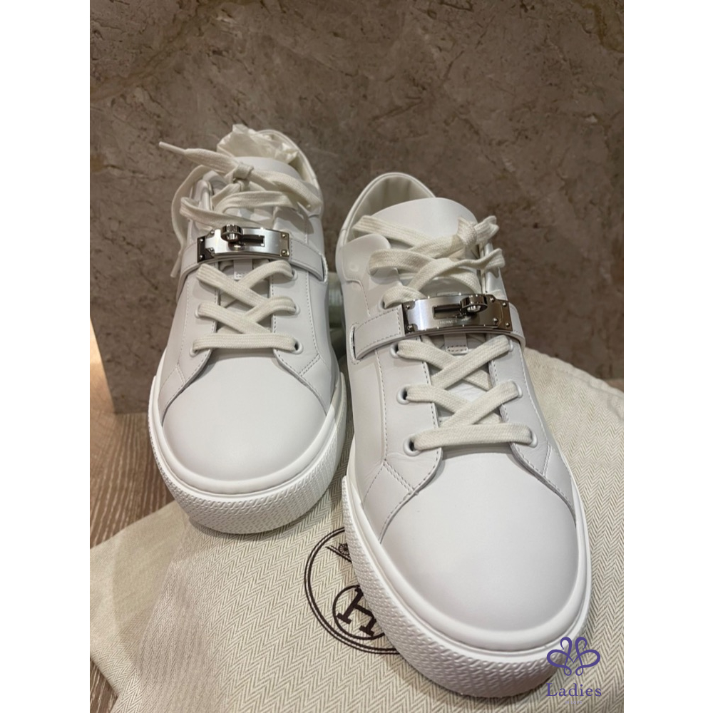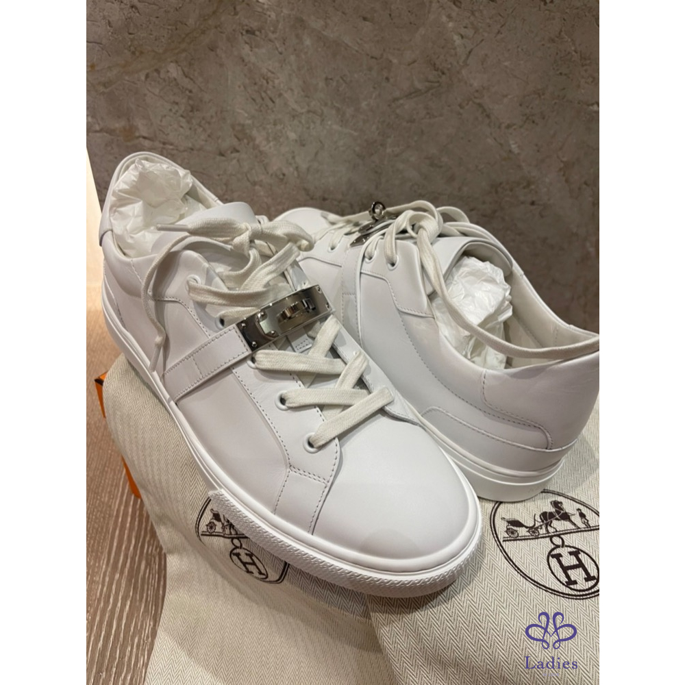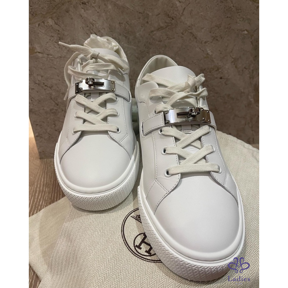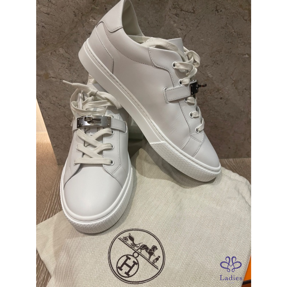 【商品名稱】愛馬仕Kelly 銀扣白鞋