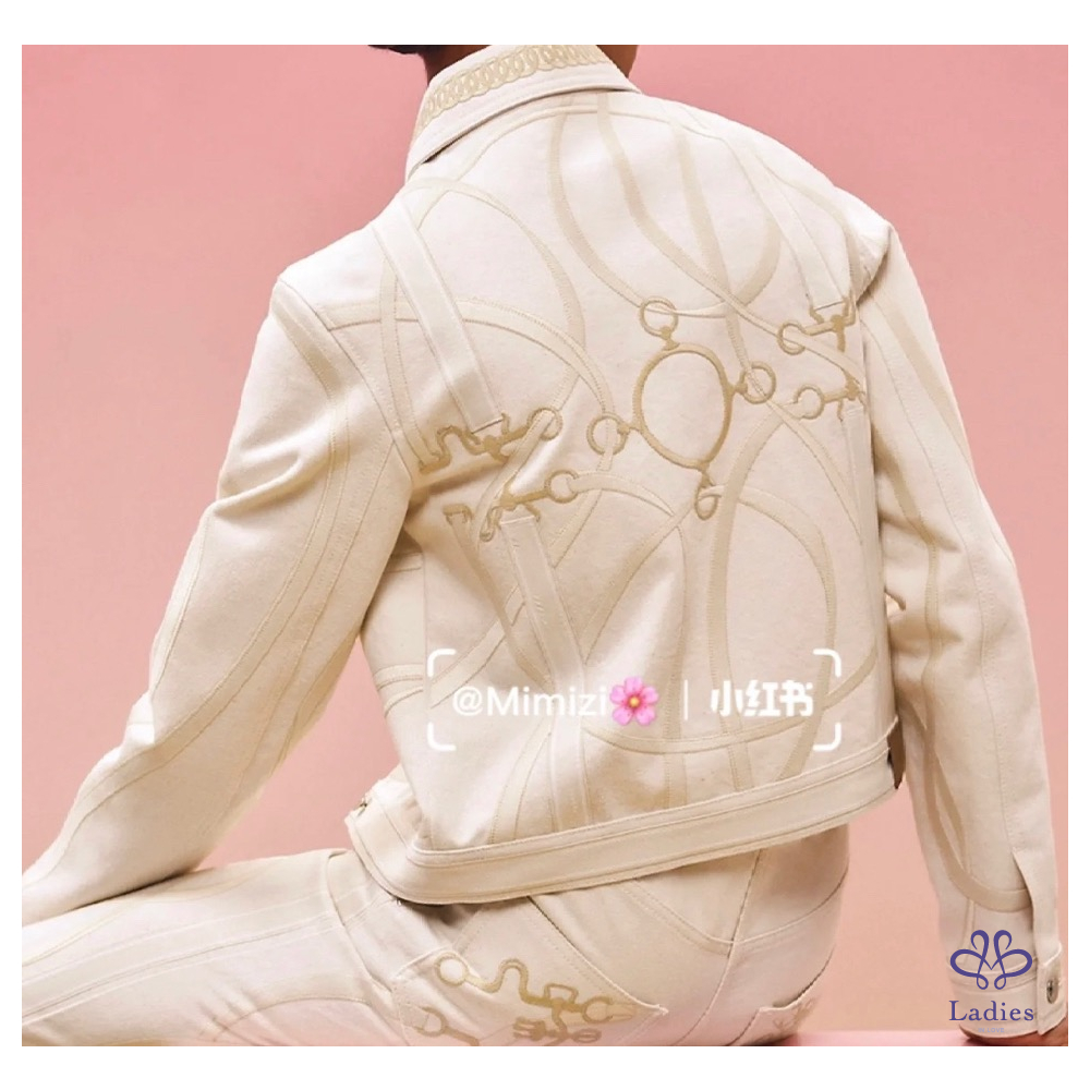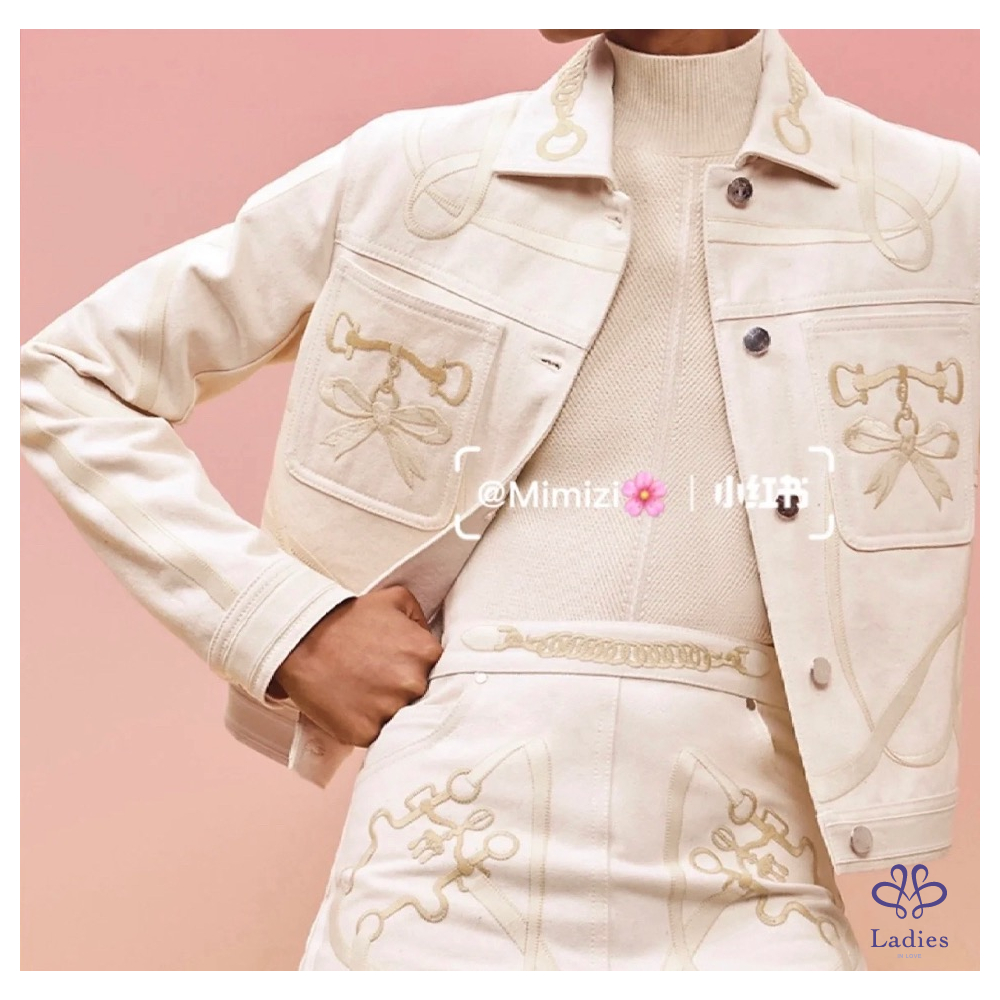 香草奶油色蝴蝶結????超重工刺繡牛仔外套(他團同步)
