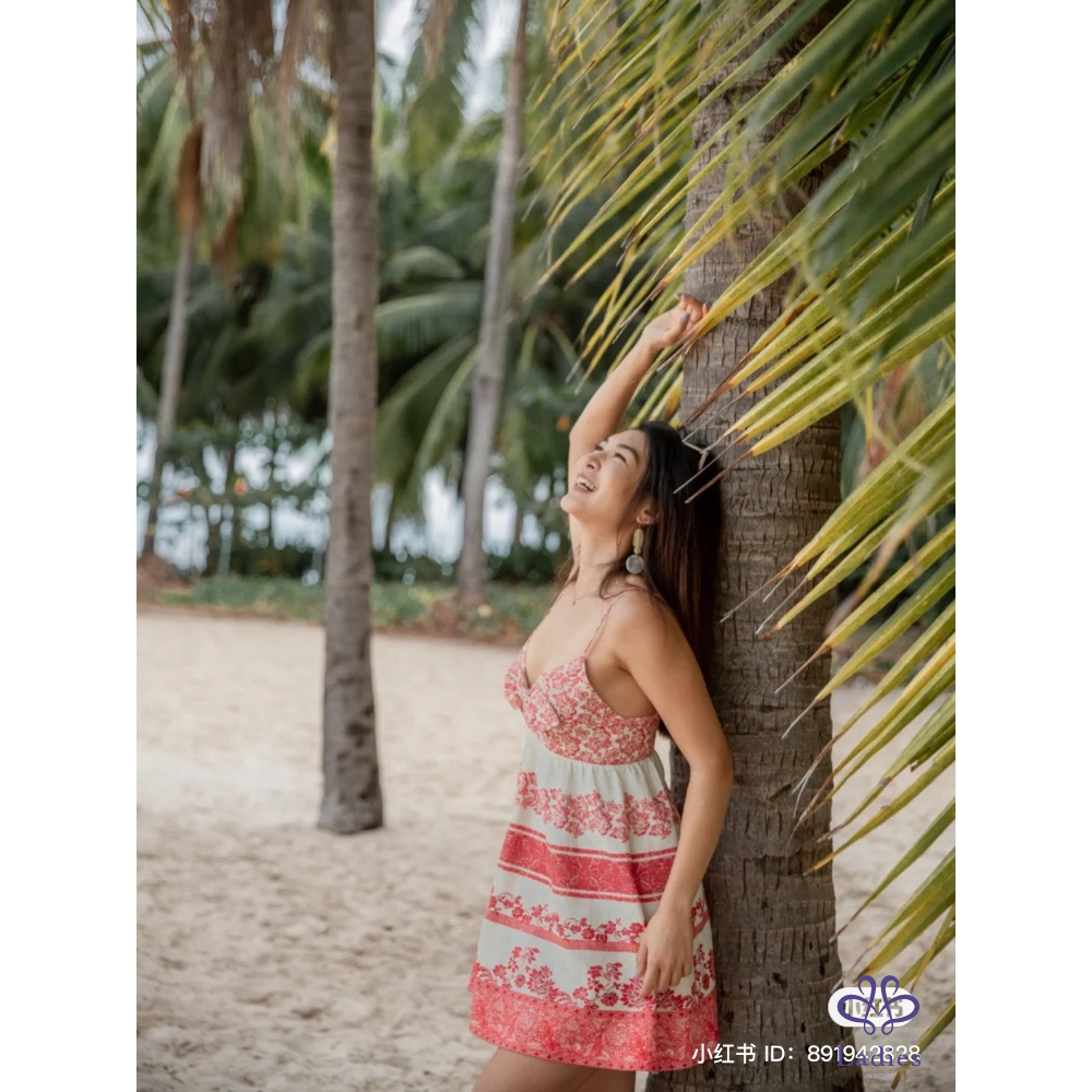是Alice+Olivia babydoll系列洋裝配色很優雅圖騰最精緻的一款~很適合夏天park picnic或casual lunch date ???? ???? 細肩帶也印有圖騰,材質有些許厚度很有質感,V領搭上蝴蝶結 ???????? 尺寸是品牌M號穿起來意外不挑身材,個人覺得XS - M甚至小L都可以穿