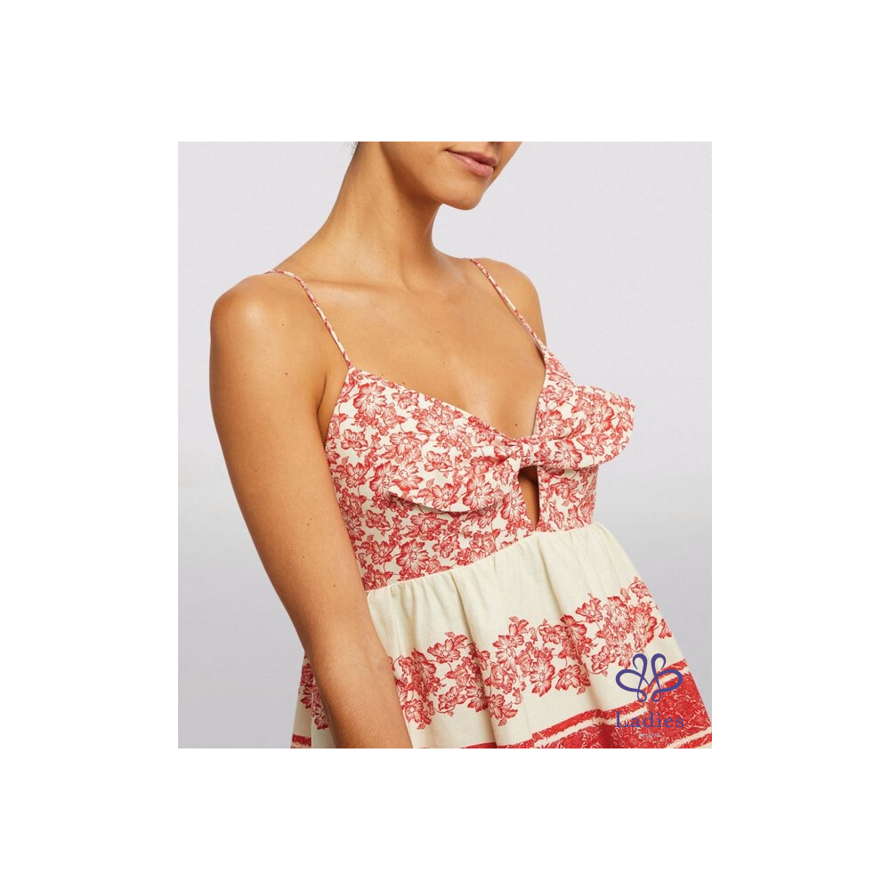 紐約設計師品牌 Alice+Olivia 棉麻花朵圖騰babydoll細肩帶洋裝