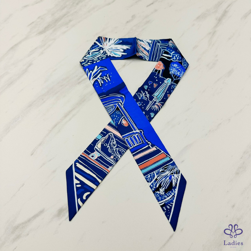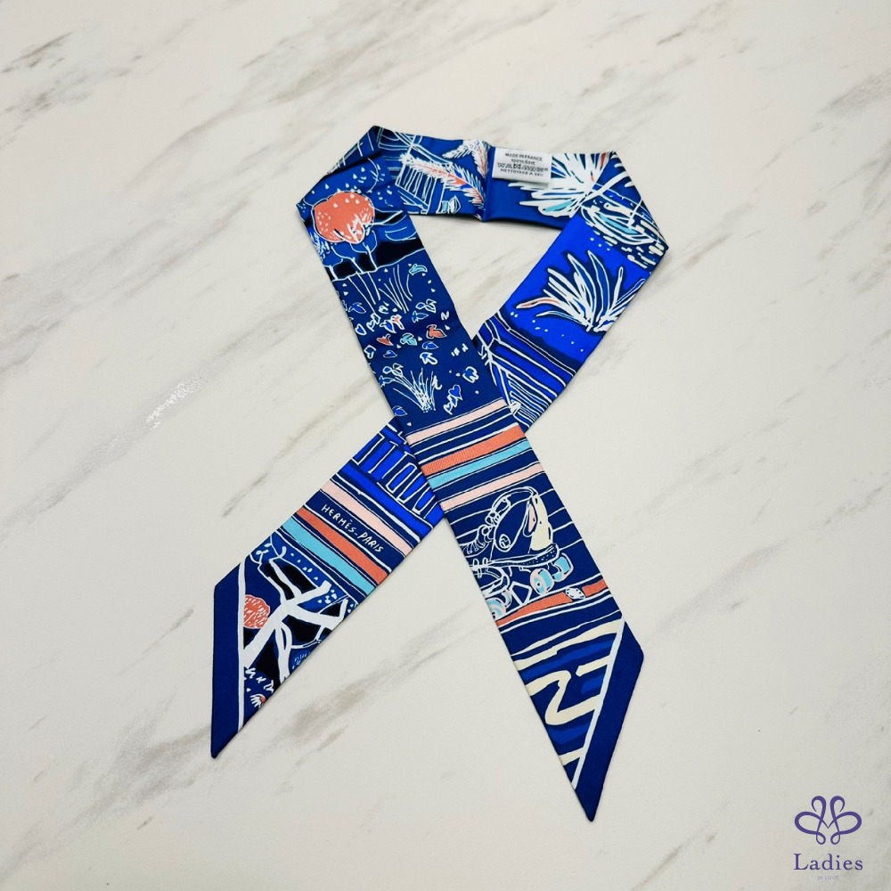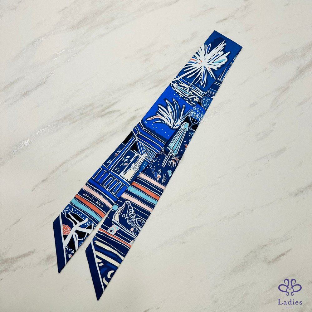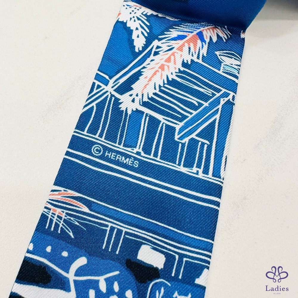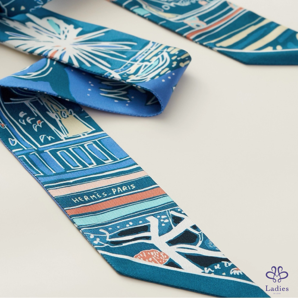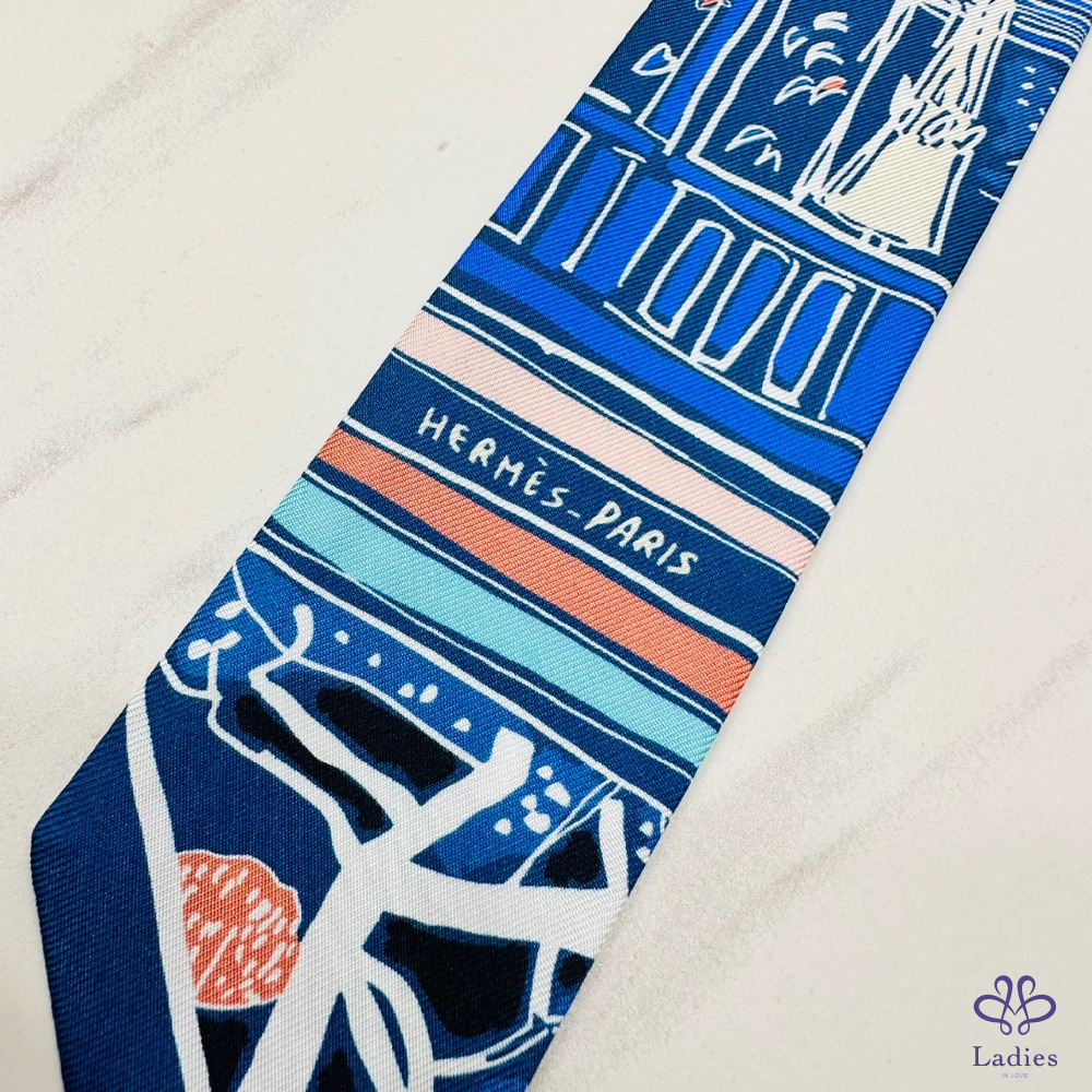 售 Hermes Rayures d'Ete Twilly x blue/rose/blanc 愛馬仕夏季條紋 藍/玫瑰/白 綁帶長絲巾