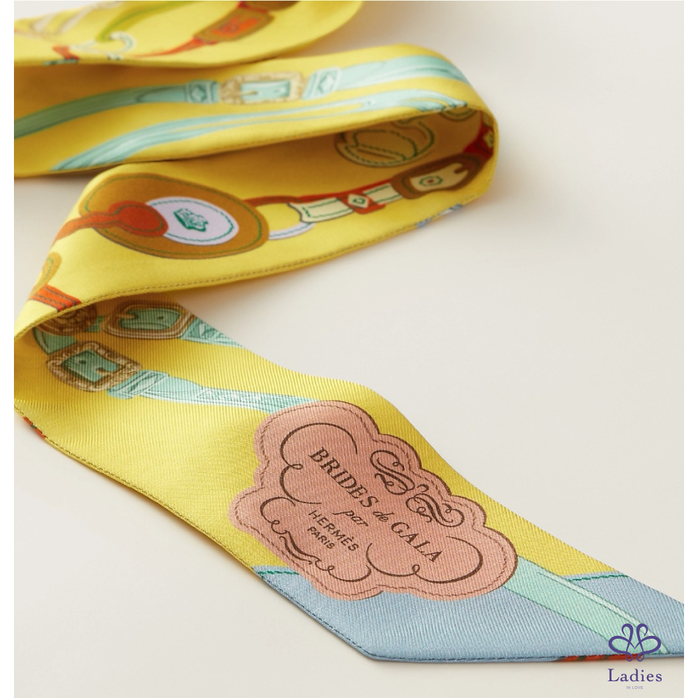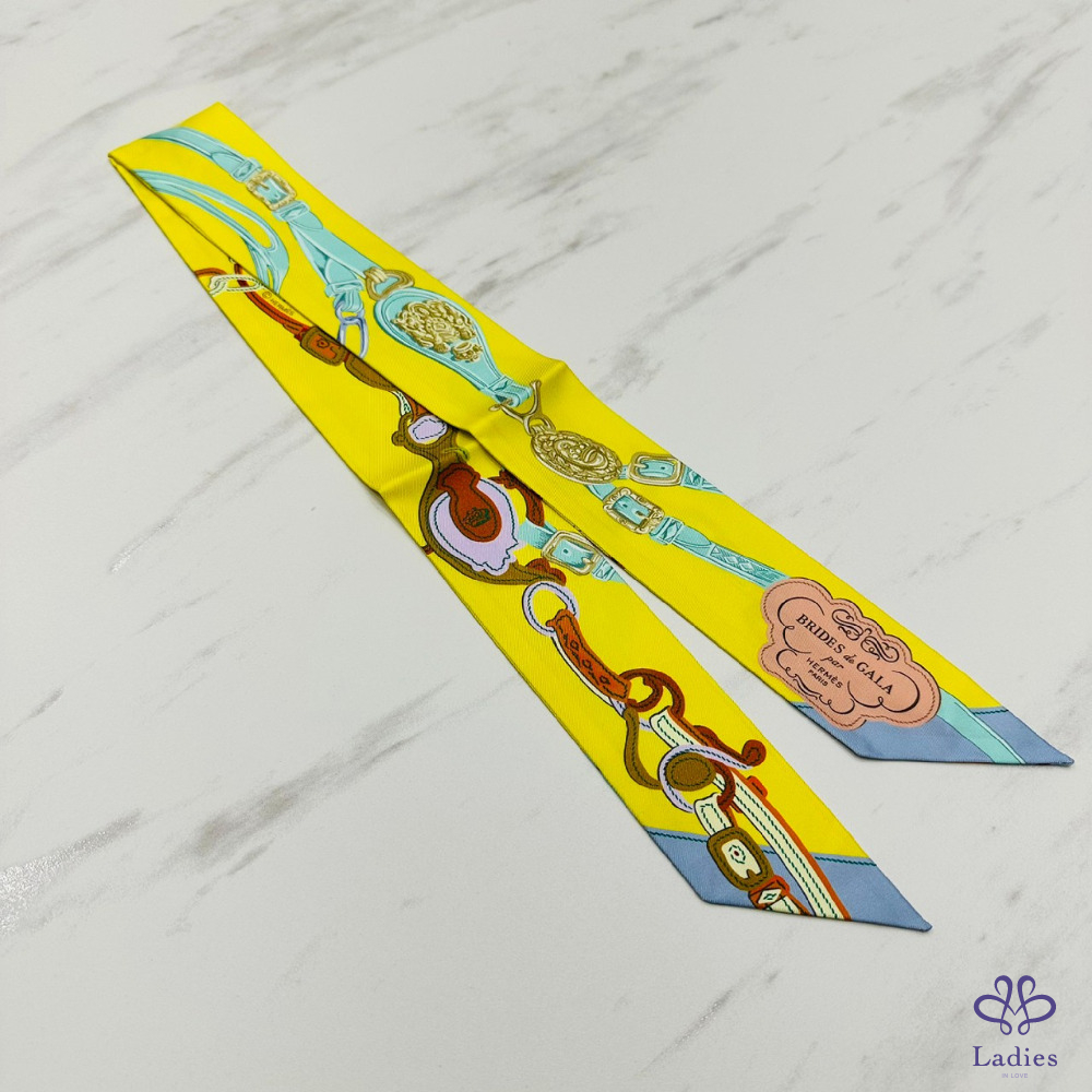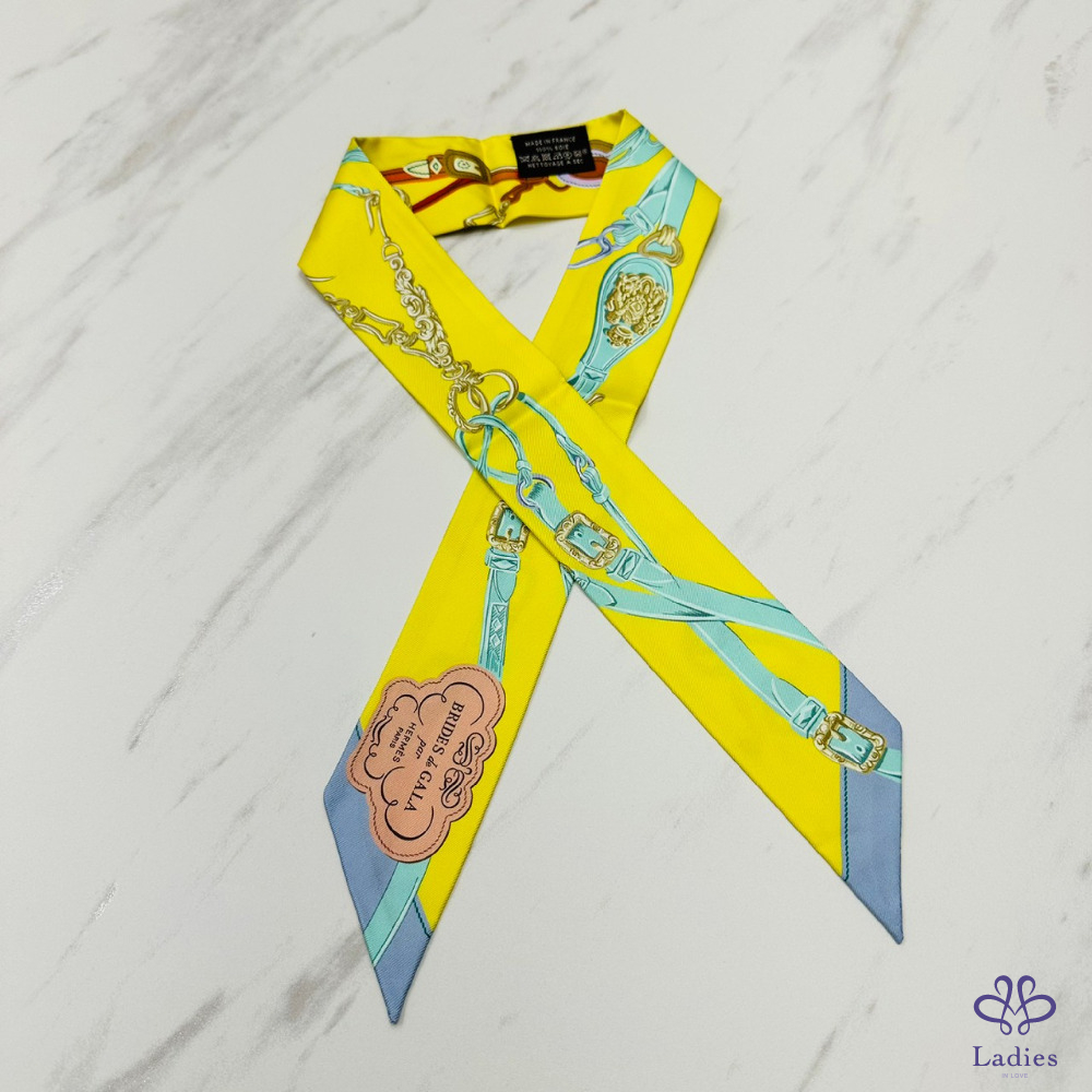 售 Hermes Brides de Gala Applique Pique Twilly x jaune vif/vert d'eau/bronze 愛馬仕華麗的韁轡 鮮黃/水綠/青銅 綁帶長絲巾 *複數