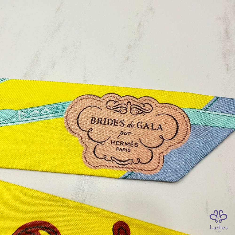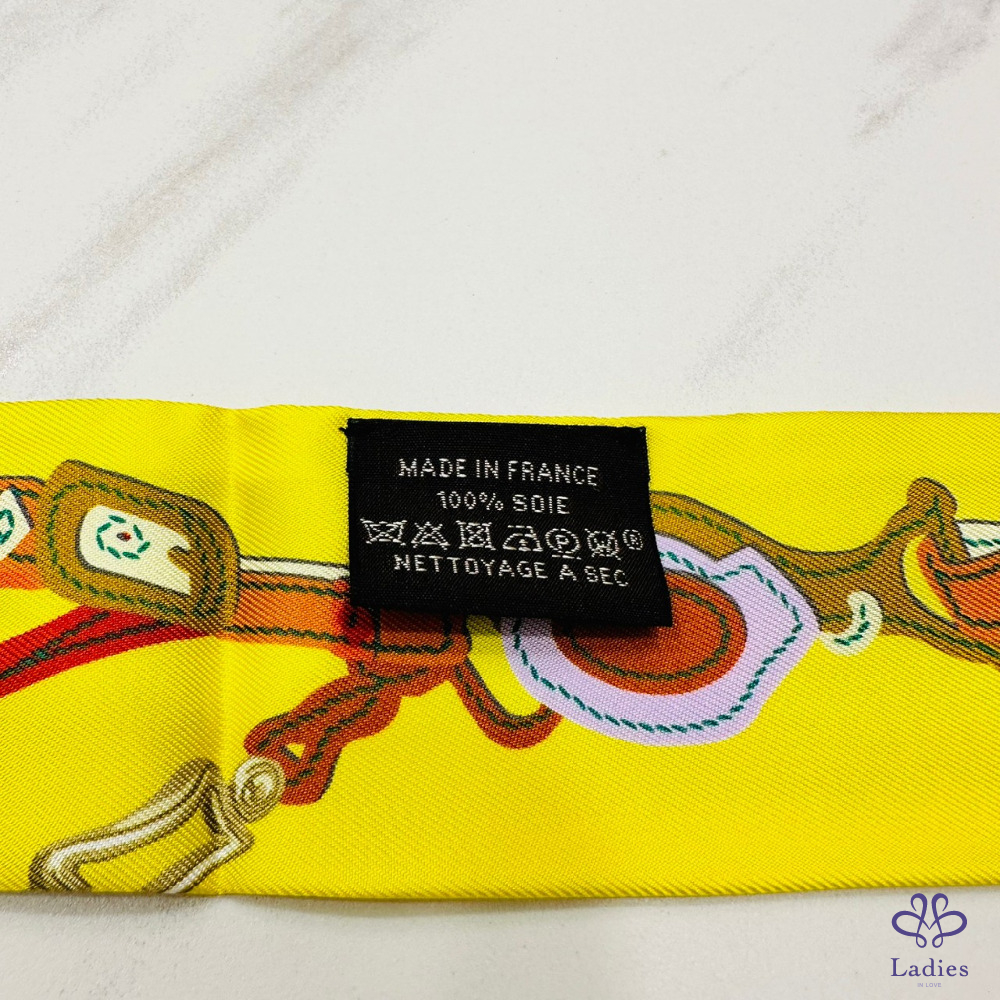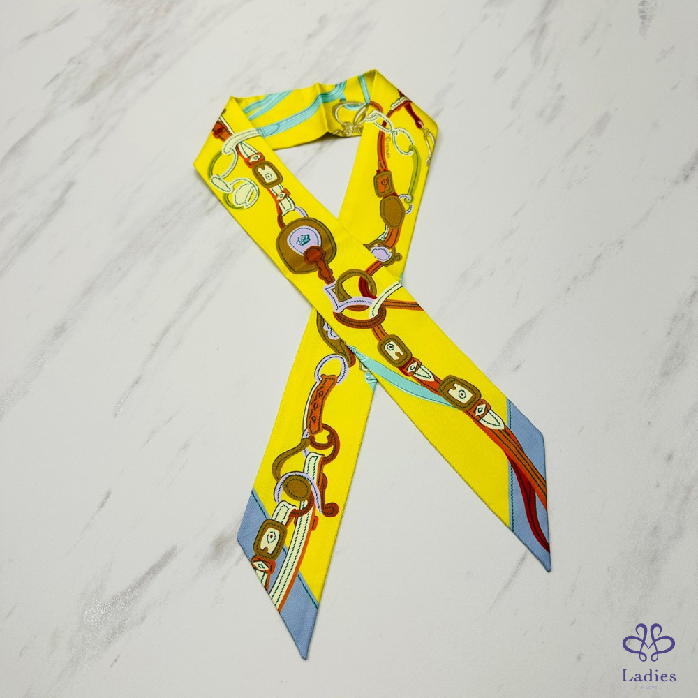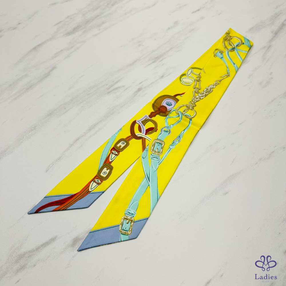 售 Hermes Brides de Gala Applique Pique Twilly x jaune vif/vert d'eau/bronze 愛馬仕華麗的韁轡 鮮黃/水綠/青銅 綁帶長絲巾 *複數