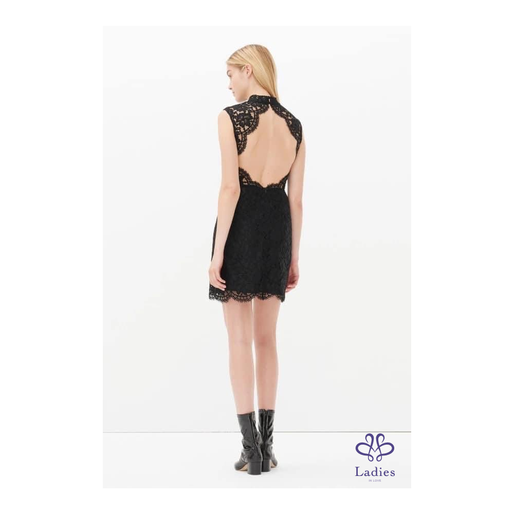 法國輕奢品牌 Sandro 睫毛蕾絲露背立領洋裝(黑/深藍各一)