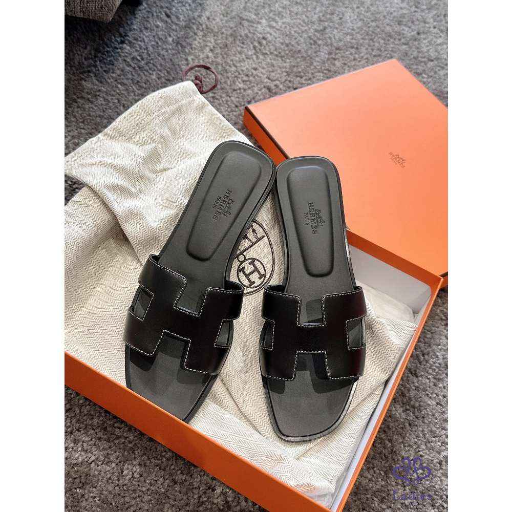 全新限量版Hermes Oasis 黑色低跟涼鞋
